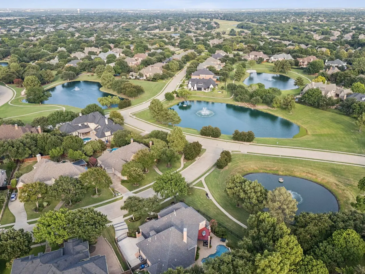 Rare East-Facing Gem in McKinney, TX - voted Best Place to Live in the U.S! Experience refined living in this custom masterpiece, gracefully situated on a large corner lot embraced by sweeping greenbelt views & tranquil ponds. Walls of windows frame a picture of serenity, while the setting offers both privacy & the vibrant active lifestyle of Stonebridge Ranch - with a highly rated Bennett Elementary just a short walk away. From the moment you arrive, stunning iron doors welcome you into a grand entryway where soaring ceilings & an open-concept design create the perfect stage for effortless entertaining. The chef’s kitchen is a showpiece, blending rich honey maple cabinetry with sleek granite countertops & premium appliances that will inspire culinary creations. The main level is a sanctuary of comfort & elegance. Retreat to the expansive primary suite, host guests in their own private suite, or work in style from the distinguished office with coffered ceilings. A versatile flex room with breathtaking pond views invites possibilities - from a game room to an intimate lounge. Gleaming hardwoods flow seamlessly throughout, adding warmth and timeless sophistication. Upstairs, the luxury continues with a spacious game or play area & three oversized bedrooms - each with hardwood floors, walk-in closets & bath access, ensuring comfort for all. Step outside to your own resort-style paradise. Multiple patios frame the sparkling pool & spa, where majestic trees & shimmering water create a backdrop of pure tranquility. Its the perfect setting to savor Texas sunsets & make lasting memories with family & friends. A rare combination of elegance & function, this residence also offers generous storage, expansive pantries & a side facing, three-car gated garage courtyard. With a subzero fridge, washer, dryer, TVs, state-of-the-art audio system & pool table included it's ready to move right in!