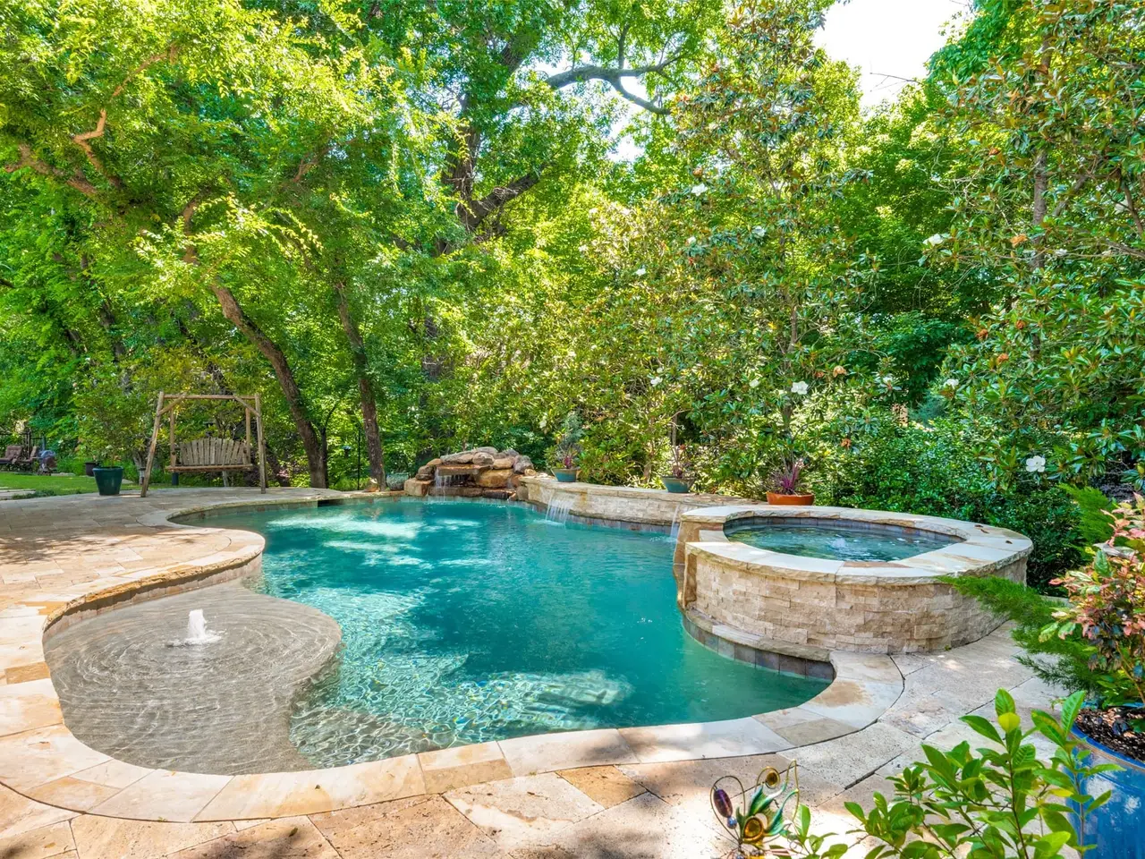 Stunning CUSTOM built home on an enchanting .43 acre CREEK lot is nestled in the tall TREES of the prestigious Village Creek neighborhood. This impressive home features an exquisite finish out of superior detailing, craftmanship, and construction throughout! Tall ceilings and windows, art niches, solid core doors, crown molding, 7.5 inch baseboards, wired for sound, storage galore, Juliet balconies, radiant barrier, 3 CAR GARAGE, and so much more! The open and flexible FLOORPLAN design is perfect for family and entertainment flow, both inside and out! The private and serene BACKYARD RETREAT enjoys an extensive covered patio area with travertine flooring, a sparkling POOL and SPA with remotes, waterfall, tanning ledge, and amazing VIEWS of the wooded creek setting! A perfect blend of sun and shade makes it ideal for relaxing or entertaining year round. The gourmet KITCHEN features a central island, Viking dbl ovens, 5 burner gas cooktop, SS appliances, 15 foot breakfast bar, walkin pantry and a large eating nook and views! The kitchen is open to the welcoming FAMILYROOM with lovely hardwood flooring, an elevated Austin stone hearth fireplace, builtins, and walls of windows offering more views of the backyard oasis. The DININGROOM with polished travertine flooring and accent chandelier is just off the beautiful and grand two story FOYER with exquisite architectural details and winding staircase. The EXECUTIVE STUDY with pocket door entry, coffered ceiling, and closet, also enjoys front and backyard views, and a FLEX LIVINGROOM area across hall. Down the hall is the PRIMARY SUITE with sitting area, trey ceiling, views, and a spa like bath with jetted tub! Private GUEST SUITE is downstairs with ensuite bath and walkin closet. Upstairs features 3 spacious additional BEDROOMS, one ensuite bath, one large Jack N Jill. There is also a 17x14 FAMILYROOM, and down the hall is fabulous GAMEROOM with wet bar, and a MEDIA ROOM with tiered seating, sconces, and floor lighting!