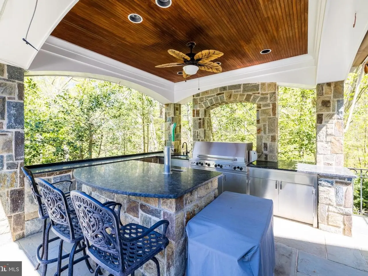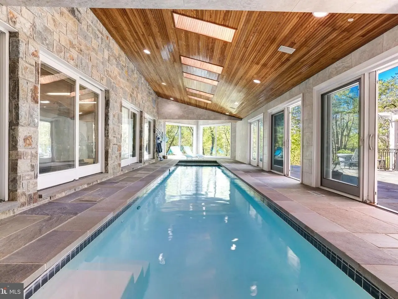 Commanding an incomparable vantage point above the Potomac River, this extraordinary stone estate by BOWA defines timeless sophistication and total privacy on more than three gated acres in McLean's most coveted enclave, moments from Washington, D.C. Beyond its stately approach and manicured grounds, the residence reveals over 16,000 square feet of refined interiors designed for both grand entertaining and serene daily living. A two-story great room with floor-to-ceiling windows frames sweeping river views, while French doors open to an expansive terrace that captures the tranquil beauty of the surroundings. The gourmet kitchen is a showpiece with professional-grade appliances, granite surfaces, a walk-in pantry with Sub-Zero refrigerator, and a hidden bar. The main level also offers dual offices, two powder rooms, elevator access, and a full laundry with pet bath-all under soaring ceilings that enhance light and volume. The main-level owner's suite is a private sanctuary with windows on three sides, dual dressing rooms, and a marble spa bath with jetted tub, steam shower, and private balcony overlooking the river. Upstairs, three guest suites each feature walk-in closets and elegant baths, two with French doors to balconies. The lower level is a destination in itself-featuring a lounge with stone fireplace, billiards area, wet bar, wine cellar, fitness room, and a stunning indoor pool with skylights and glass doors opening to extensive stone patios. Additional amenities include a private in-law or staff suite with full kitchen, a salon, guest suite, and generous storage. Outside, terraced gardens, pergolas, water features, and a gazebo with full outdoor kitchen create a breathtaking resort-style setting. With five-car garage parking, geothermal systems, and whole-house generator, this distinguished estate offers rare scale, craftsmanship, and uninterrupted Potomac River views.