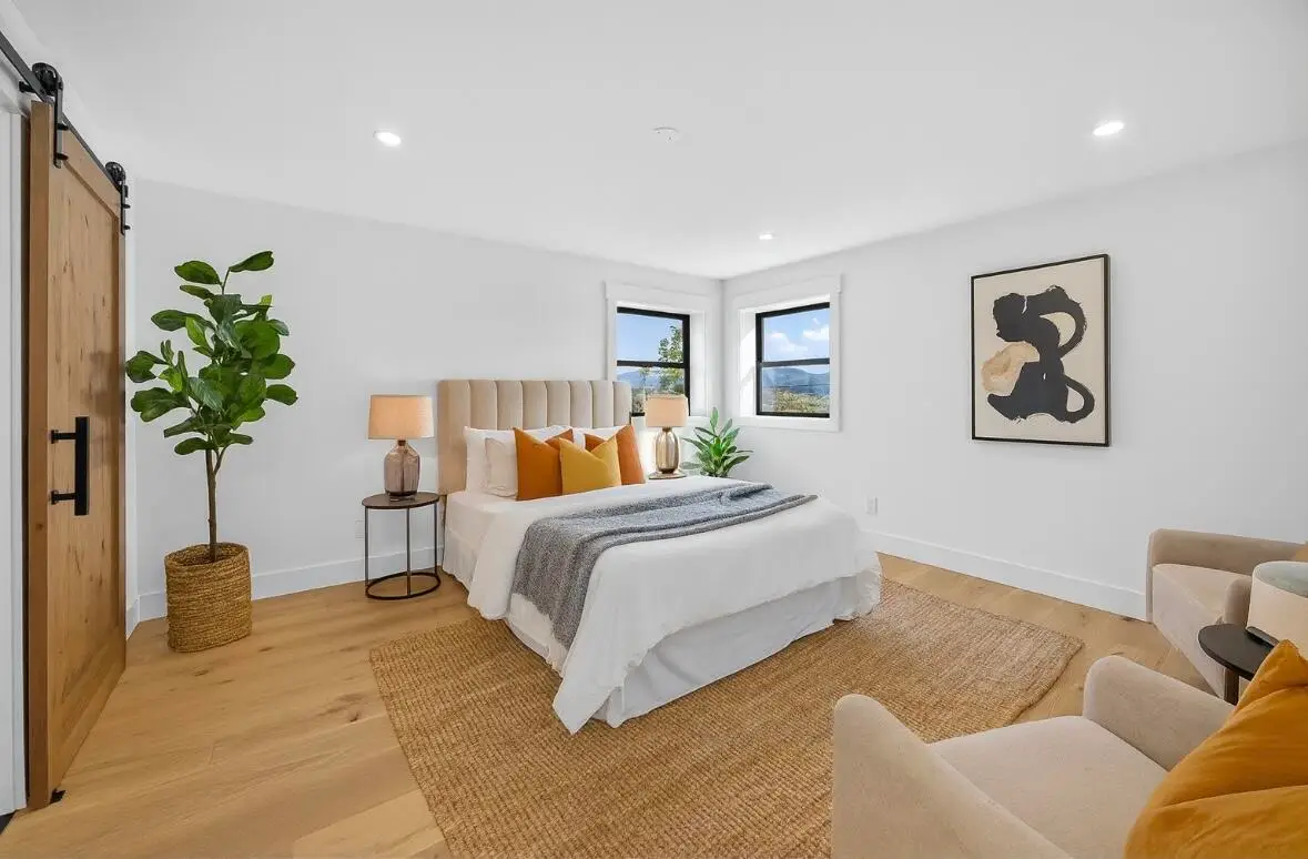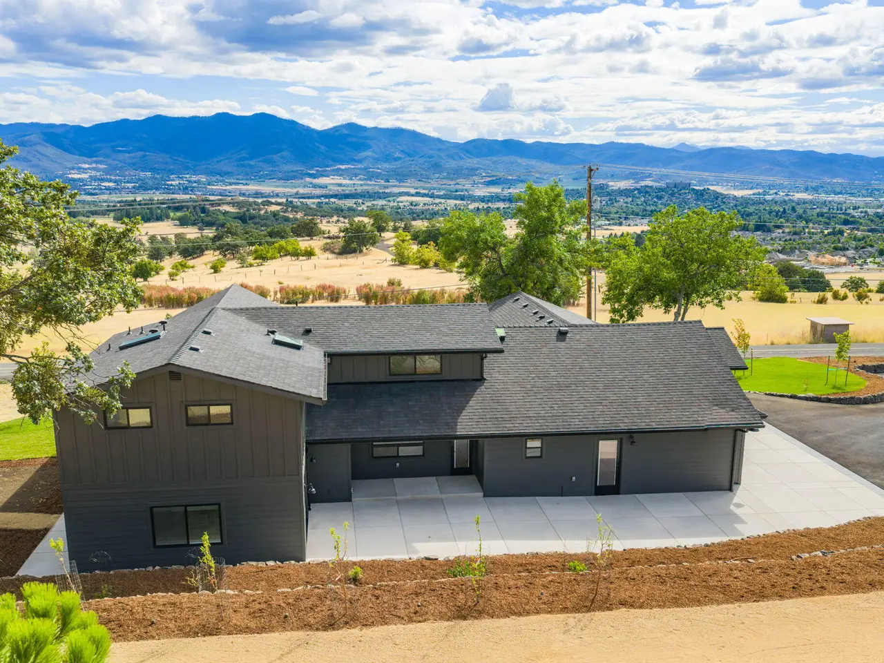 Incredible one-of-a-kind East Medford hillside home showcasing breathtaking panoramic views and a complete remodel from the ground up. No expense spared while staying true to its farmhouse roots. Main floor primary suite, huge .62 acre lot, and endless upgrades throughout. Spacious living room with walls of windows and European hardwood floors. Gourmet kitchen boasts upgraded stainless appliances including a 48'' range, custom knotty alder cabinets, quartz counters, island, and butler's pantry. A true four bed four and a half bath with every bedroom having its own bathroom. Excellent layout with two expansive living areas, dual laundry rooms, and a bonus room not included in square footage. Major updates include new electrical, plumbing, insulation, HVAC with three new A/C units, windows, doors, gutters, cement board siding, paved drive, and gorgeous stained concrete. The exterior has lush landscaping with sod, fruit trees, bushes, & Wifi irrigation. Nothing left untouched. This home is a must-tour home