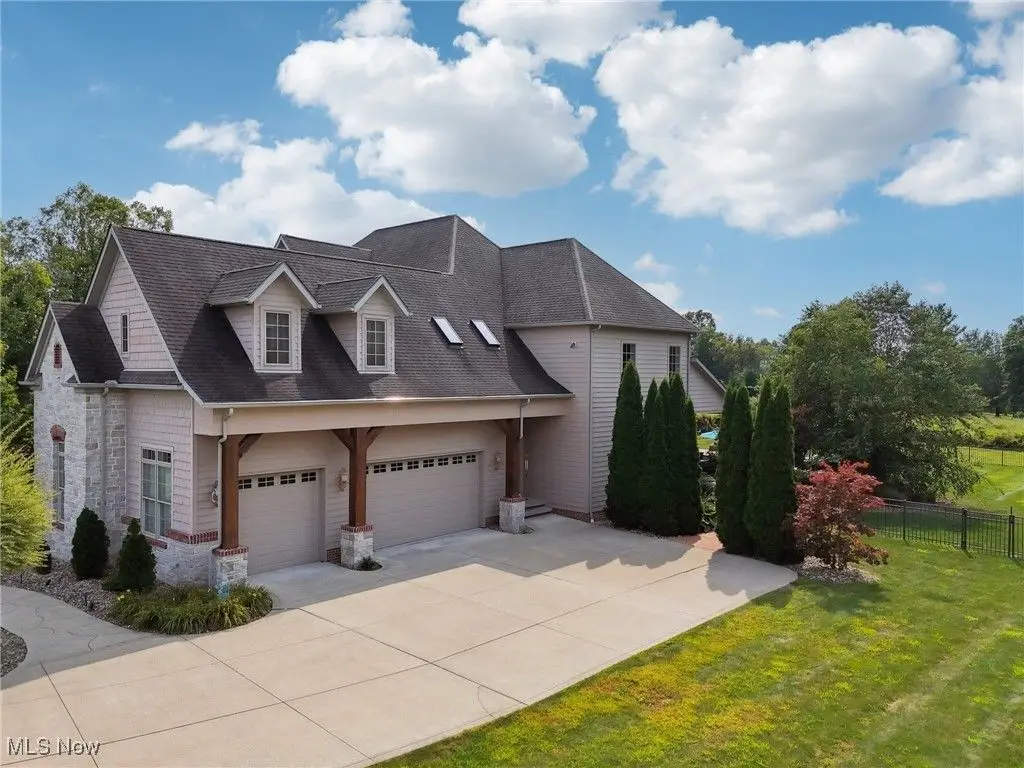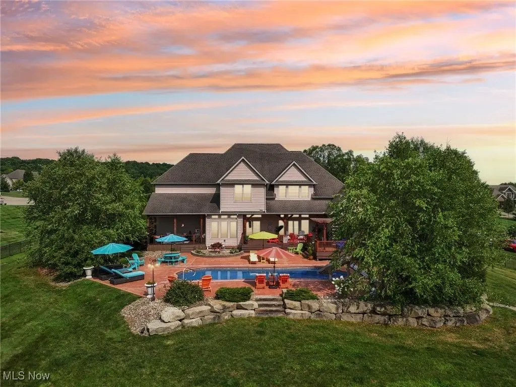 Amazing French Colonial Estate with Resort-Style Amenities built by Legacy Homes nestled on over 2.2 private, manicured acres. Timeless Elegance and Superior Craftsmanship are evident throughout. The main level features a luxurious First Floor master suite complete with vaulted ceilings, a cozy fireplace, glamour bath with dual vanities, tiled shower, jetted tub, 2 spacious walk-in closets, and spa like finishes, along with deck access. The heart of the home is the custom designed chef's kitchen, boasting a center island, stainless steel appliances, eat-in area with access to covered deck that seamlessly flows into the 2-story family room, 2-story great room, and formal dining area. Dual staircases in the front and the back add architectural charm and convenience. First Floor private office with wood paneling, wet bar, and half bath is perfect for work from home or could be a flex room. Upstairs, you'll find three generously sized bedrooms with walk-in closets, one with ensuite full bath and the other 2 sharing a Jack and Jill with separate vanities. In addition to the bedrooms, the upper level has a reading loft that's bathed in natural light that adds warmth and character to the home. The lower level is an entertainer's dreamC/B?B=complete with a full bar, climate-controlled wine room, gym, home theater, and an additional full bath. Step outside to your personal oasis featuring 2 rear decks, an in-ground saltwater pool (2016) with multiple fountain spouts and slide. This outdoor paradise also boasts a fire pit lounge, and playground with protective mulch-ideal for hosting or relaxing in total privacy. Spacious 3-car side-load garage adds to the home's functionality. Every detail has been thoughtfully designed for luxurious living and effortless entertaining. This rare offering blends sophistication, comfort, fun, and privacy in one of the area's most desirable settings. No HOA!