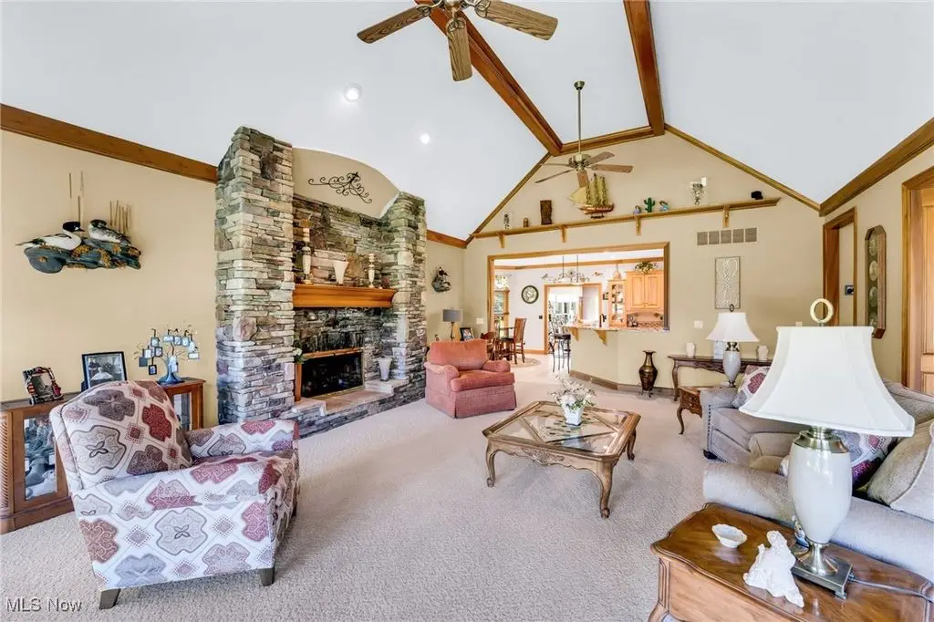Welcome to this beautifully maintained 3 bedroom, 2.5 bath ranch offering over 4,000 sqft of total living space, nestled on a picturesque property complete with a private pond and lush tree-lined backdrop sitting 1,000 feet off the road. This home combines timeless charm with modern amenities, providing the perfect retreat for everyday living and entertaining. Step inside to find an inviting open floor plan with soaring ceilings, a gorgeous stone wood burning fireplace, and large windows that frame serene views of the outdoors. The spacious kitchen features custom hickory cabinetry, granite countertops, and a seamless flow into the dining and living areas. The sunroom with vaulted wood ceilings creates a warm, natural ambiance, while the finished basement offers an additional living area complete with a bar, recreation space, and a cozy home theater setup. The primary suite provides a private sanctuary with a spa-like bath, and two additional bedrooms are generously sized with ample closet space. The 3 car garage include a dog shower station and nature stone flooring. Outdoor living is a dream with a covered patio, fire pit, and sweeping views of the private 1/4 acre stocked pond with lighted waterfall, beach and gazebo; perfect for entertaining or simply relaxing. A 48'x30' pole barn with workshop space offers endless opportunities for hobbies, storage, or equipment. Also for sale is 5715 Vandermark, which is the front of this property, has a 2 Bedroom 884 sqft home that sits on 3.13 acres. Listed for $199,000.