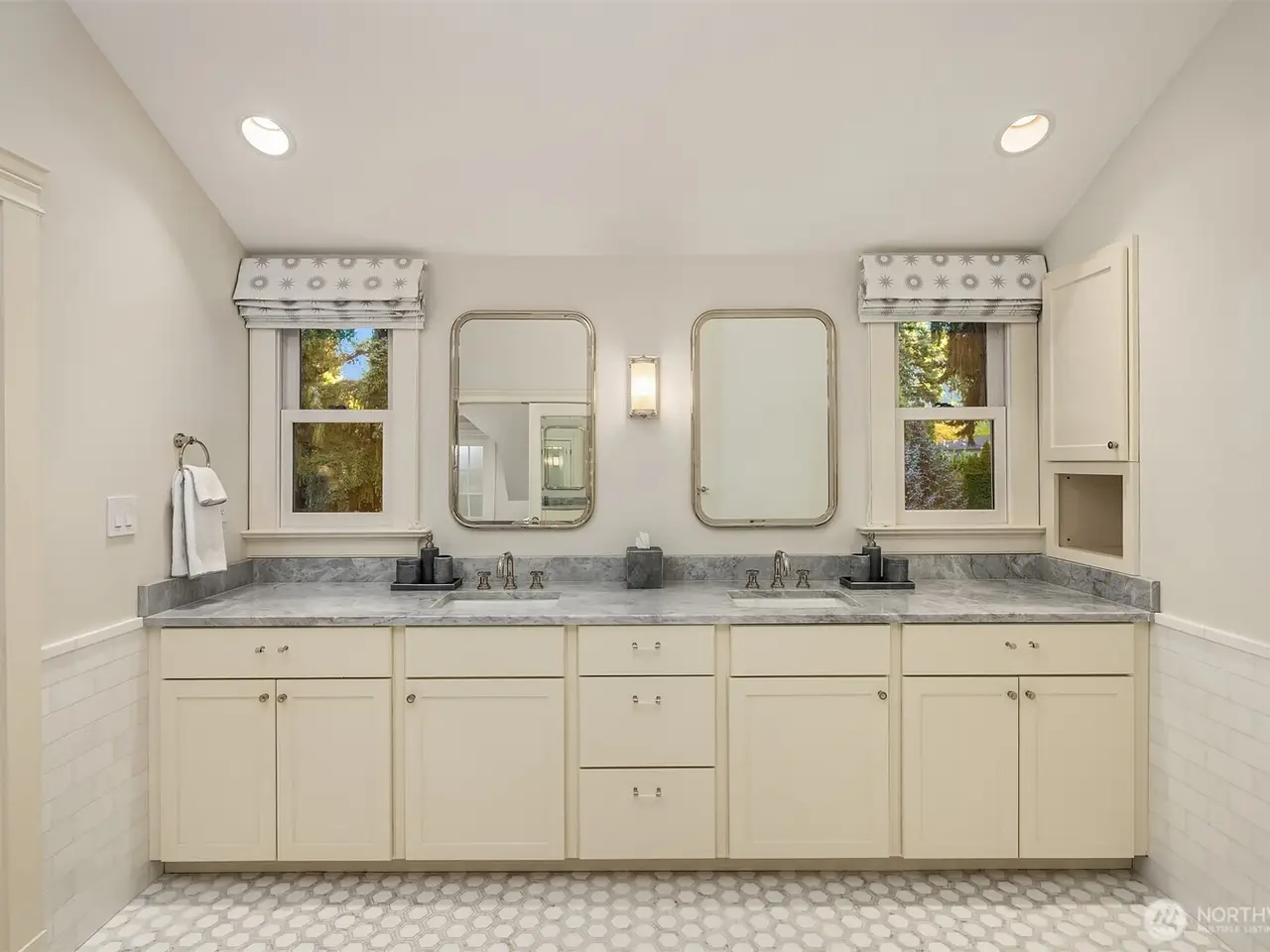 An impeccable, storybook home in Medina awaits you. This idyllic home is complete with the white picket fence, gardens, sport court, putting green & covered patio! A spacious entry welcomes you into a 2020 stylish refresh w interiors that honor the home's heritage while embracing modern luxury. The main level boasts formal living/dining rooms made for hosting, a chef's kitchen w/breakfast nook & a beamed great room leading to a huge covered patio. Upstairs, the primary suite offers 2 walk-in closets & a couture bath w/Ann Sacks tile & designer lighting. Highlights incl a media room, versatile backyard & thoughtful design throughout. Perfectly situated near Overlake Golf & Country Club & mins from top schools, beach park, DT Blvue & Seattle.
