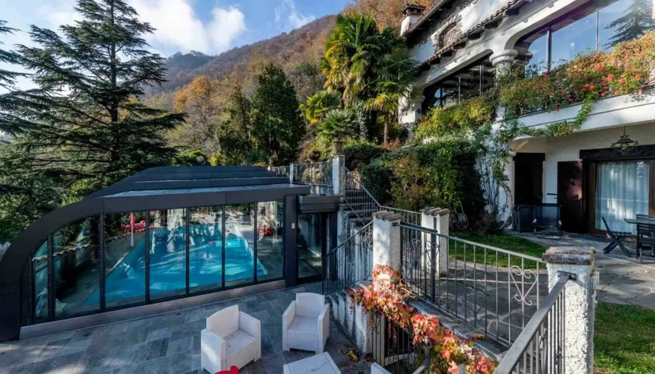 Striking property with spectacular 180-degree views of the lake and surrounding mountains. A true symbol of peace and natural beauty. Renovated between 2008 and 2013 with an investment of around CHF 3 million, this property harmoniously combines elegance and comfort. In early 2024, 38 photovoltaic panels were installed on the roof. The generous layout also allows for the creation of a separate home office area—ideal for privacy and relaxation in the midst of lush greenery. Recent renovations include a charming winter garden and a large heated indoor swimming pool with a retractable dome, allowing for year-round use. There is also potential for a spa and fitness area. The expansive garden offers plenty of space for hobbies such as gardening and growing fresh vegetables and fruit. The basement features a cozy tavern with a traditional grottino, a staff apartment, laundry room, and wine cellar. The ground floor includes a modern, fully equipped kitchen, an inviting dining room, a panoramic living room, a spacious study, a bright sitting room, a large garden, and a panoramic terrace. Upstairs are two bedrooms with walk-in wardrobes, a double garage, a dividable multipurpose room, and two bathrooms. The 2-room apartment has its own private entrance, an open kitchen, a bathroom, and a bedroom with direct access to the garden and lake view. Contact us for more information or to schedule a viewing!