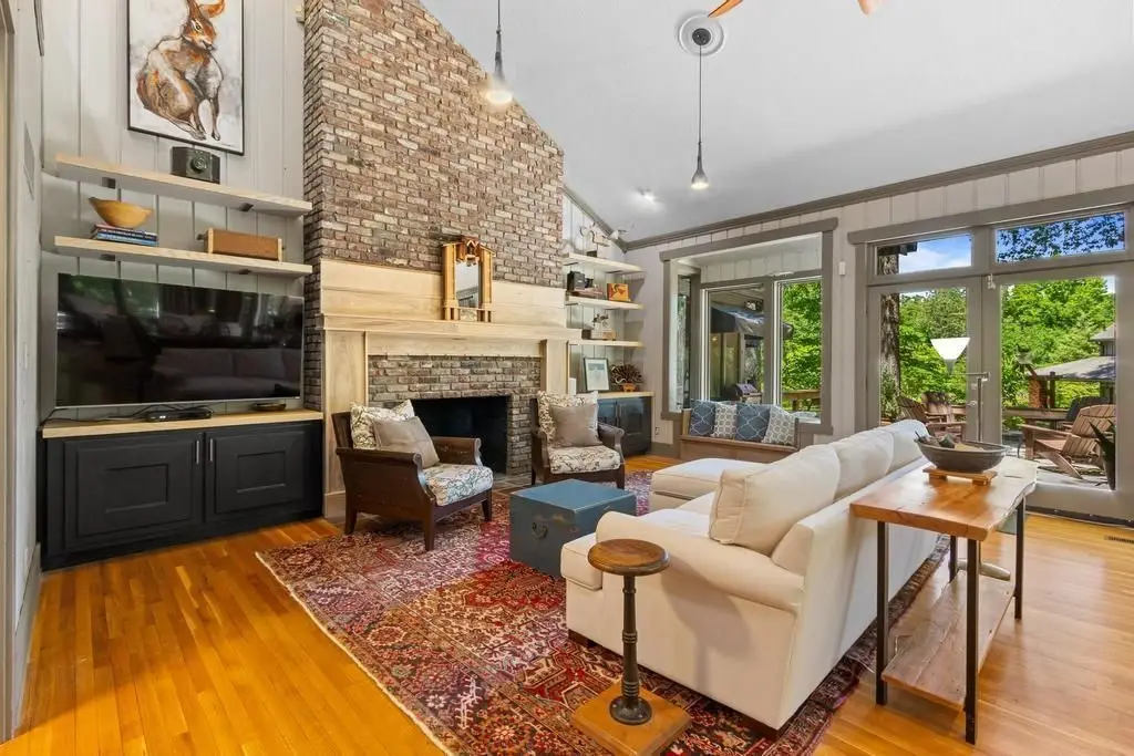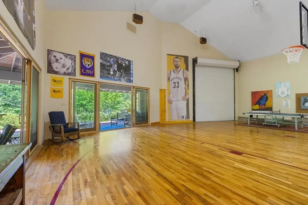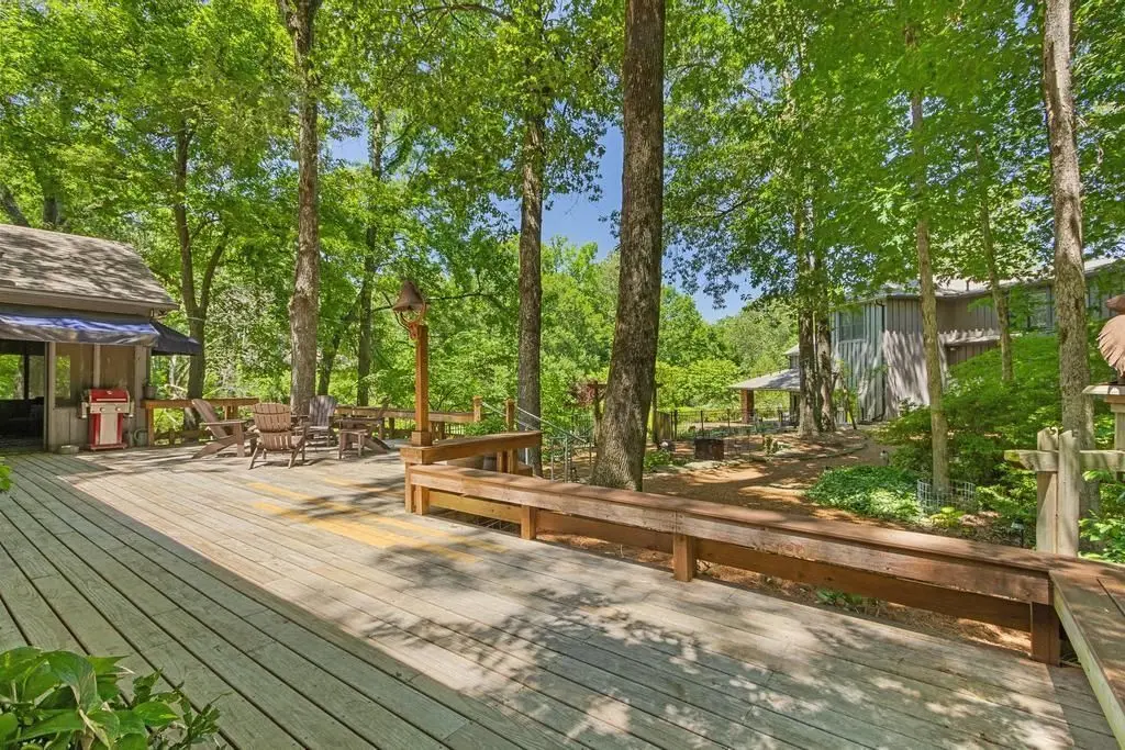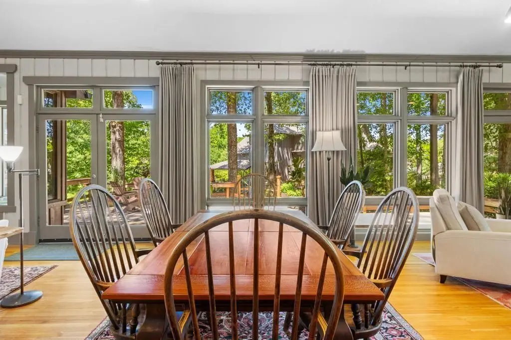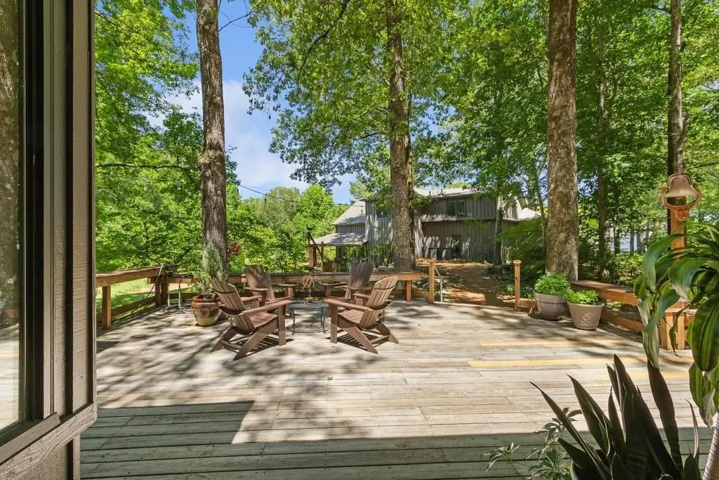 Outdoor living, Indoor Basketball and room for large gatherings. This beautifully updated home plus guest house is located on 2+ ac. Soaring ceilings and large windows overlook this natural beauty. Recent updates inc. new kitchen and baths in main house . Primary suite opens to screen porch. Plus 2 BR/3.5 BA, office & bonus in main house. Guest House w/half court basketball, Garages/workshop, room for RV that is all heated and cooled. Up living area inc. 2 BR, 34x23 bonus, a bath & laundry. Tranquil and convenient location w/large decks, firepits, and porches. New roof on both home and guest house in the last 4 years. County Only Taxes
