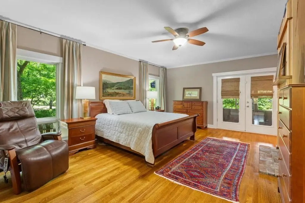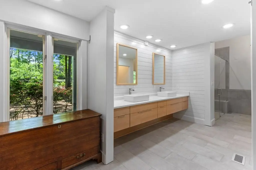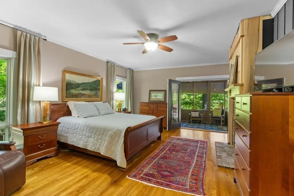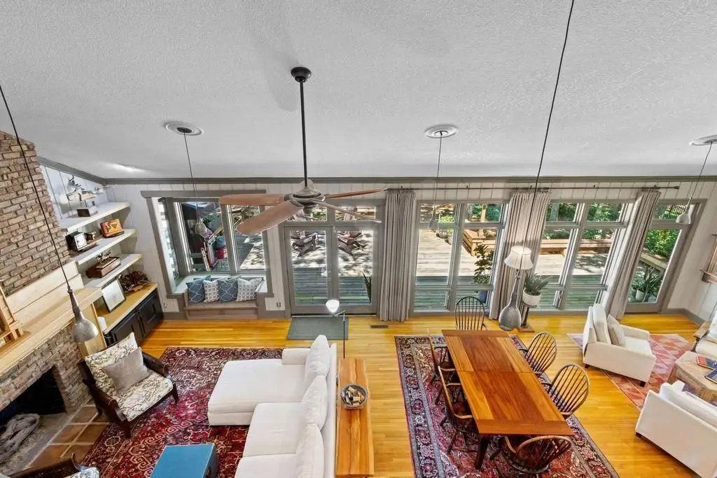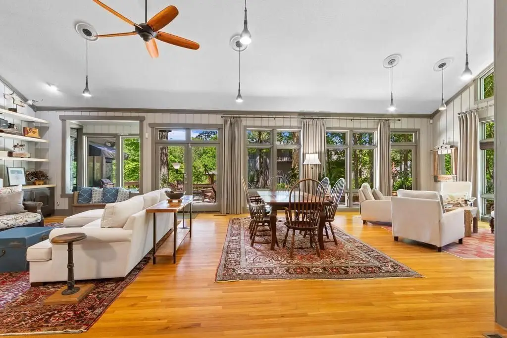 Outdoor living, Indoor Basketball and room for large gatherings. This beautifully updated home plus guest house is located on 2+ ac. Soaring ceilings and large windows overlook this natural beauty. Recent updates inc. new kitchen and baths in main house . Primary suite opens to screen porch. Plus 2 BR/3.5 BA, office & bonus in main house. Guest House w/half court basketball, Garages/workshop, room for RV that is all heated and cooled. Up living area inc. 2 BR, 34x23 bonus, a bath & laundry. Tranquil and convenient location w/large decks, firepits, and porches. New roof on both home and guest house in the last 4 years. County Only Taxes
