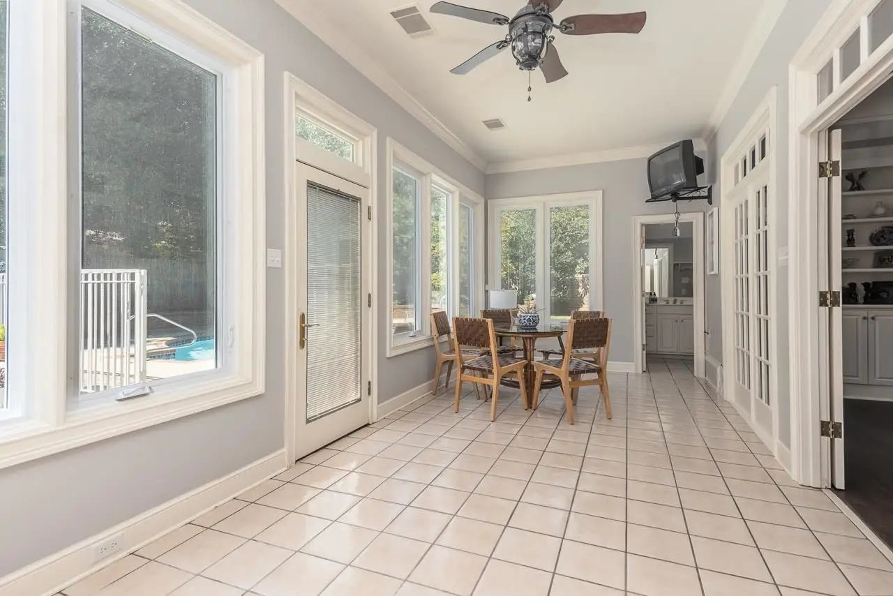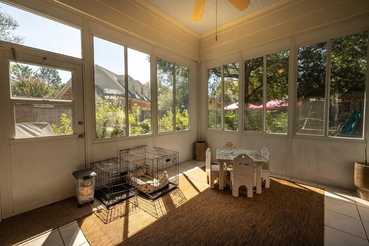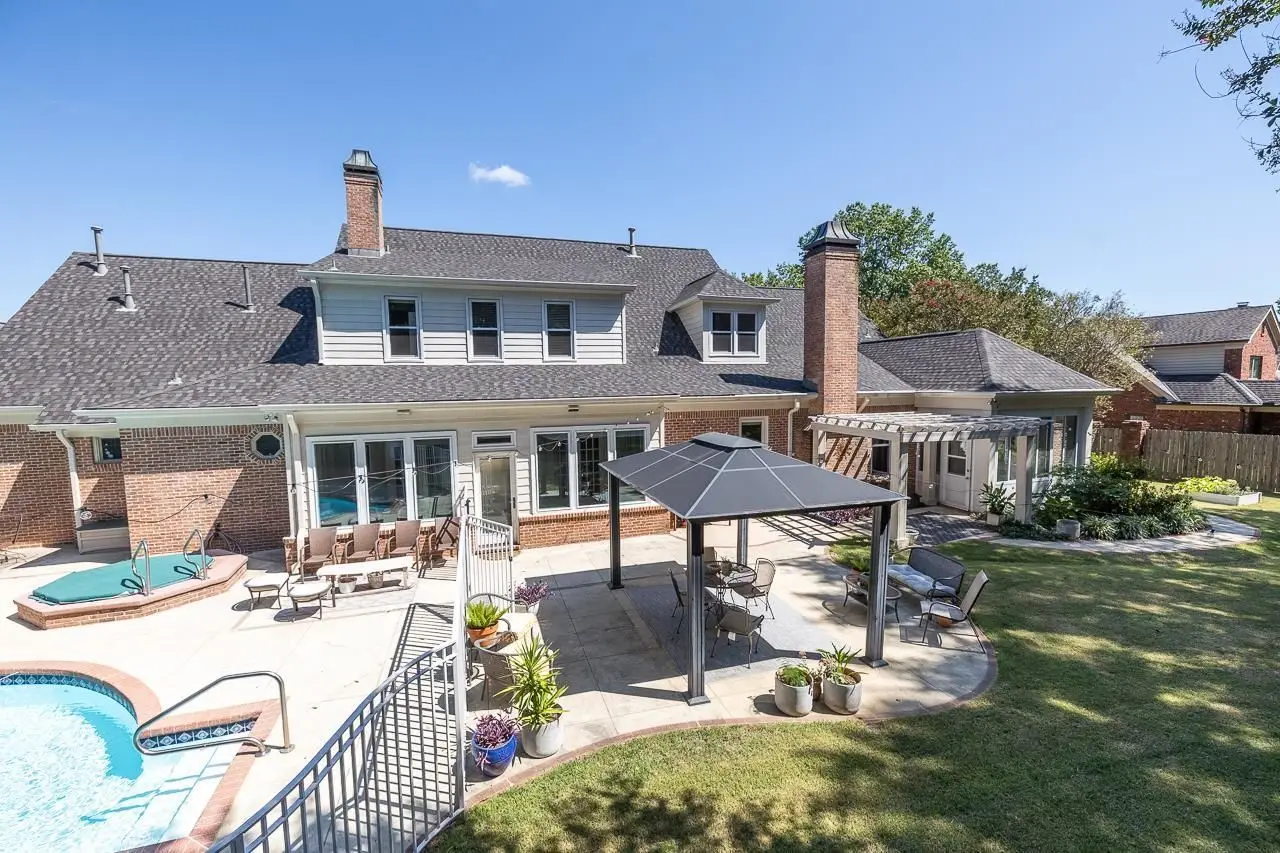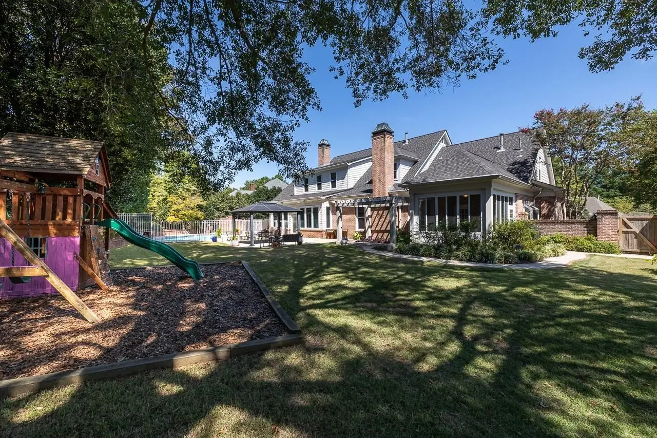 Updated Southwind Beauty w/24 hour security manned gate. Home features Gunite pool & spa, fenced separately, mature landscaped private yd w/playground and entertaining areas. Screen porch & 23x10 sunroom w/bar & pool bath. Primary renovated lux 5 piece bath w/his & her dressing areas. All bedrms ensuites. Updated Chef's kit w/2 islands, Lg eat in area, keeping rm & fp. Formal office dn, updated windows, roof replaced 2020,2-A/C 2020. Double iron doors, circular drive and inviting front porch. NO CITY TAXES