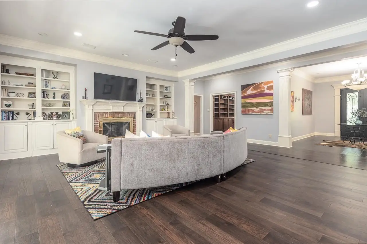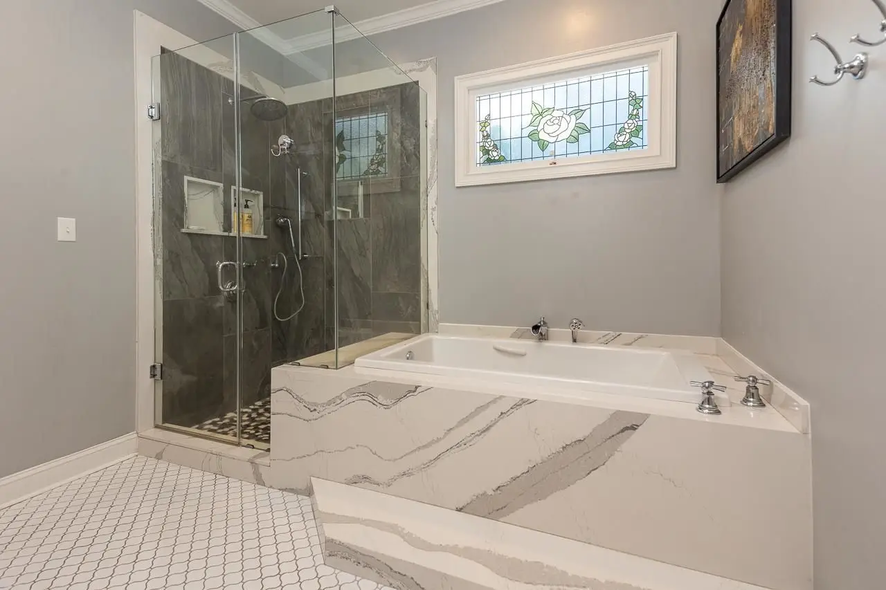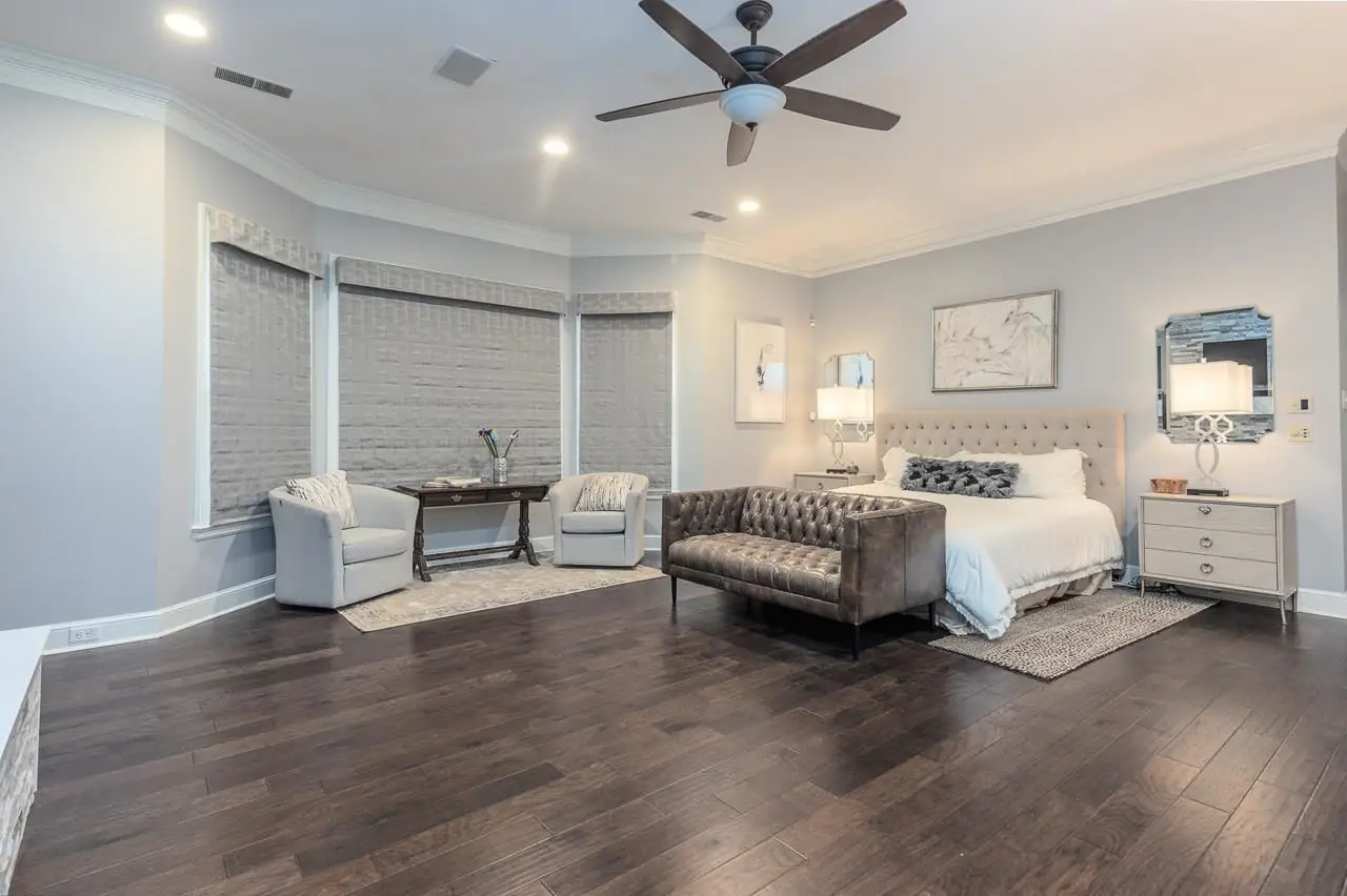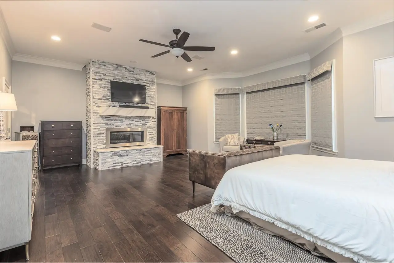 Updated Southwind Beauty w/24 hour security manned gate. Home features Gunite pool & spa, fenced separately, mature landscaped private yd w/playground and entertaining areas. Screen porch & 23x10 sunroom w/bar & pool bath. Primary renovated lux 5 piece bath w/his & her dressing areas. All bedrms ensuites. Updated Chef's kit w/2 islands, Lg eat in area, keeping rm & fp. Formal office dn, updated windows, roof replaced 2020,2-A/C 2020. Double iron doors, circular drive and inviting front porch. NO CITY TAXES