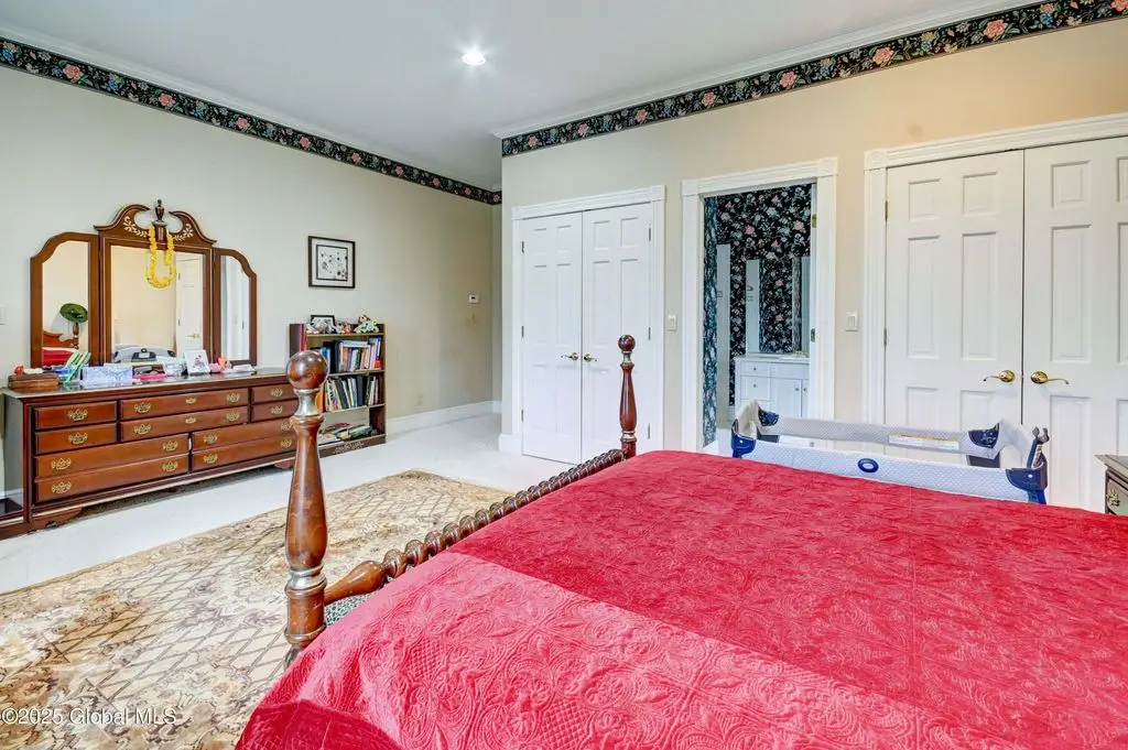Step into this elegant & luxurious custom home set on a lovely 2.19-acre lot with beautiful mountain views. Located in the prestigious Sage Estates Gated Community in Loudonville. Property features a three-car garage. French doors open to a classic columned veranda. Upon entering, you'll be welcomed by a grand foyer with a magnificent staircase, marble floors, & a stunning crystal chandelier. The spacious kitchen is perfect for family gatherings & with over 8,000 sq ft of living space, it's an entertainer's dream. Main level also offers a primary suite, dining room, living rooms & offices while the upper level includes three additional primary suites with balconies. The finished basement boasts a home theater, gym, bedroom, bonus rooms & two full bathrooms. HOA covers gate, pond, tennis courts. Must see!