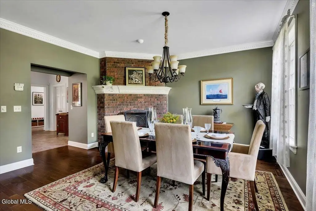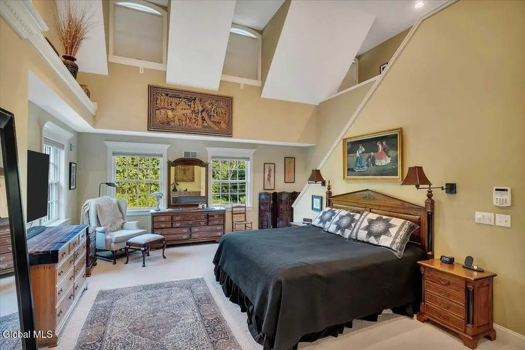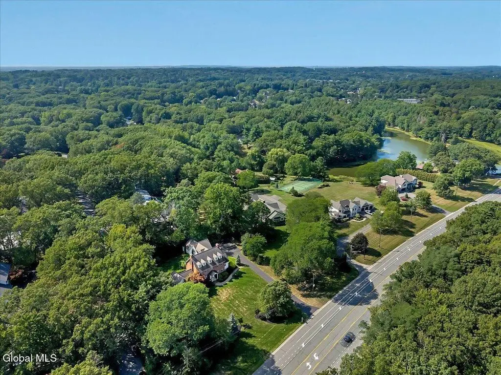This stately & stunning custom-built Colonial offers 4 BR, 4.3 BA & approximately 6,000 sq. ft. of tastefully appointed living space! Set amid lush landscaping, this luxury home welcomes you with an elegant entrance. A gracious living room with a striking fossil stone fireplace. Handsome den with a gas log fossil stone fireplace & wet bar. Impressive billiard room. Gourmet kitchen with center island. Formal dining room with brick fireplace. Sunlit study framed by a large bay window. Laundry/mudroom. Dramatic two-story primary suite boasts a spa-like bath. Dormered loft area. 2 additional suites. Private guest suite with separate staircase. Lower level with: theater, kitchenette, bath & gym/game area. Private porch & terrace. Basketball court. An exceptional home in a desirable location!