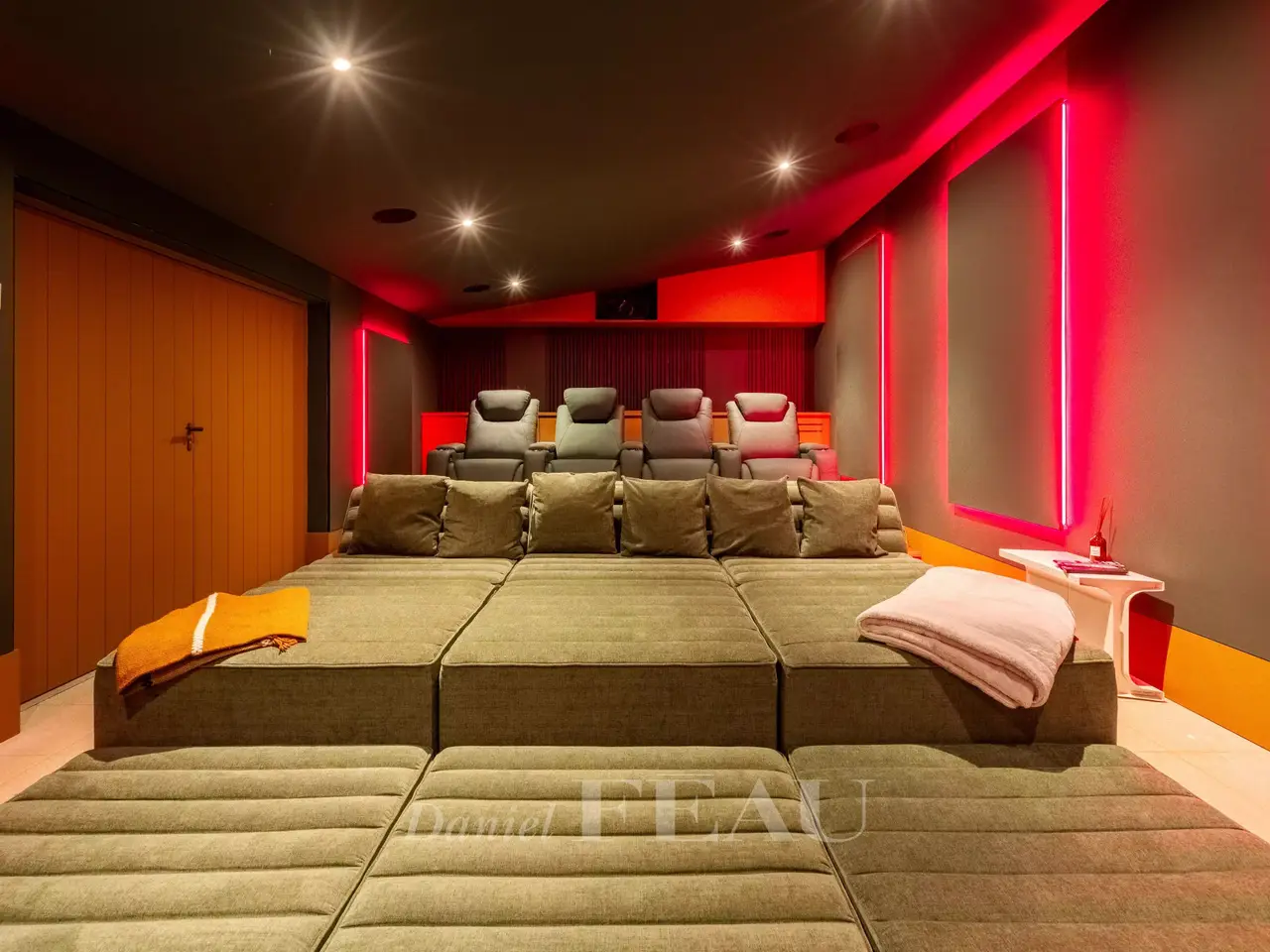 This exceptional 485 sqm contemporary property set in over 9 peaceful hectares comprises a main house, a guest house and annexes. Renovated in 2022 and bathed in sunshine thanks to wide patio windows, it includes 7 bedrooms in total. With a home cinema and a fully equipped fitness room. The ensemble benefits from a 15 x 5 heated swimming pool, and a pool house with a summer kitchen and a shower room.