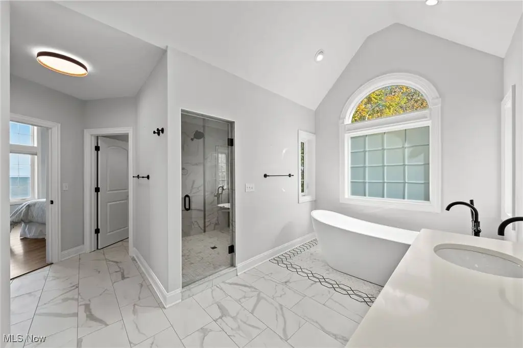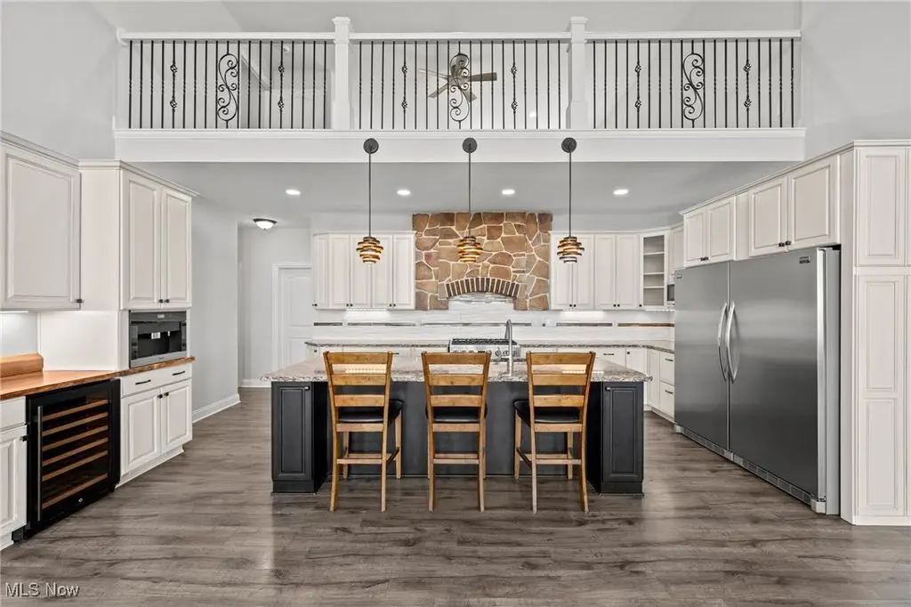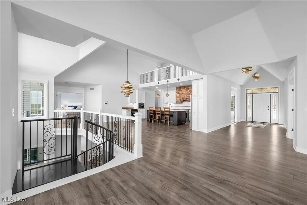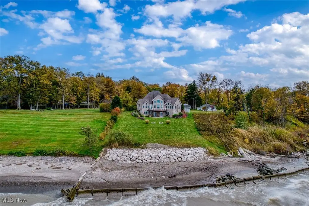 Prepare to be captivated by this stunning lakefront paradise! Set on nearly an acre with direct beachfront access, this property offers breathtaking panoramic views of Lake Erie. At the heart of this exquisite home is a two-story great room, featuring a soaring vaulted ceiling, a cozy fireplace, and a wall of windows that beautifully frame the idyllic lake scenery. This space flows effortlessly into the dining area - dream kitchen, which is equipped with a center island, stainless steel appliances, granite countertops, a coffee station, and a striking custom stone range hood. The primary suite, conveniently located on the main floor, showcases a charming fireplace and stunning lake views. The primary bathroom serves as a spa-like retreat, complete with a spacious walk-in shower, a soaking tub, and a dual-sink vanity. It also includes a large walk-through closet that exits to the back hall. Also featured on the main floor are two additional bedrooms - one which can be used as an office, another full bathroom, a pantry with dual access from the hallway or garage, and a spacious mudroom with laundry closet. Ascending to the upper level, you will find a generous bonus room/bedroom featuring two walk-in closets. On this level there is also a full bath, built-in library, and cozy loft that captures the remarkable lake views. The lower level is a recreational haven, perfect for hosting or just relaxing. There's a family room adorned with a gas fireplace, a kitchen/bar area with custom walnut countertops, and a temperature-controlled walk-in wine room. There are two bedrooms C/B?B= both with lake views, a full bath with a walk-in tile shower, and an exercise room. The covered patio, yard, and beach can be directly accessed from the family room. Summers will be a delight on the expansive deck and patio that overlook the lake. This property truly offers an extraordinary lifestyle! Experience sunsets like never before!