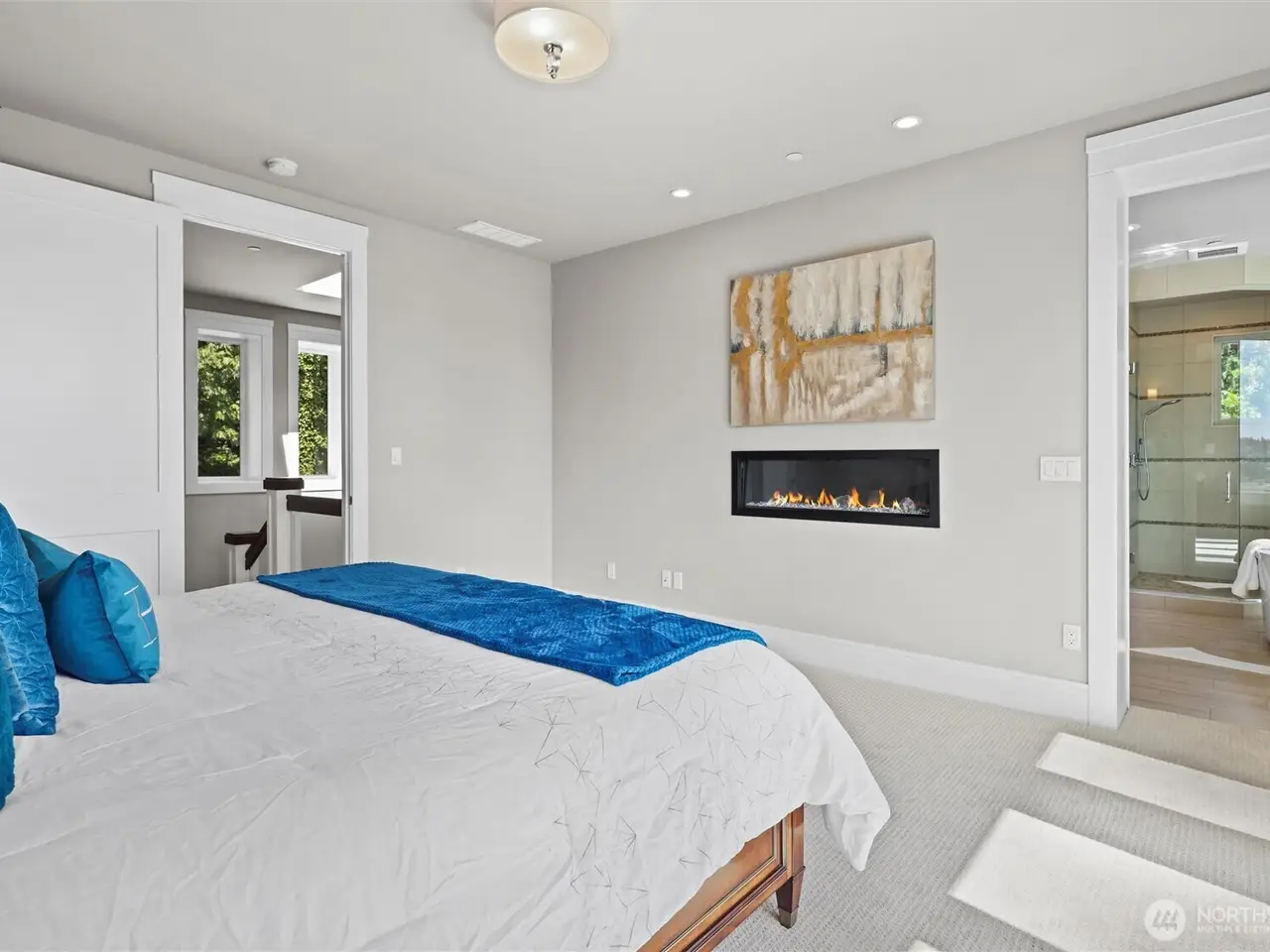 Primary bedroom with deck and en-suite bathroom