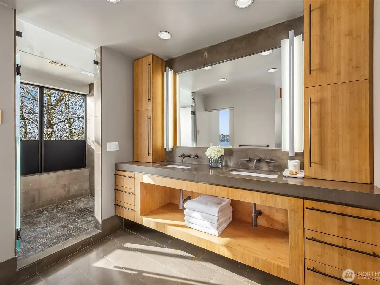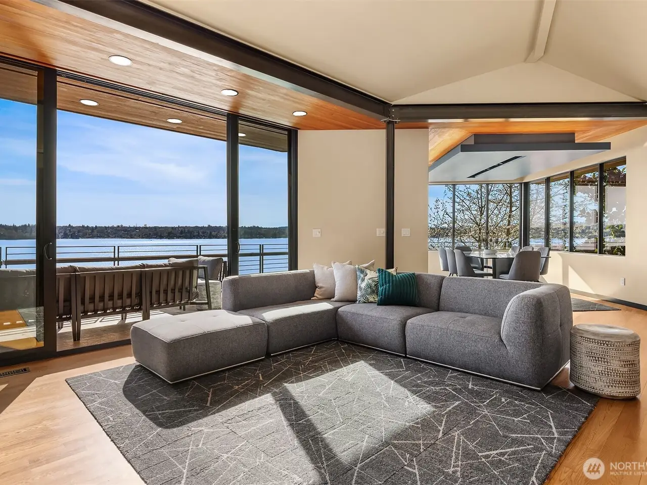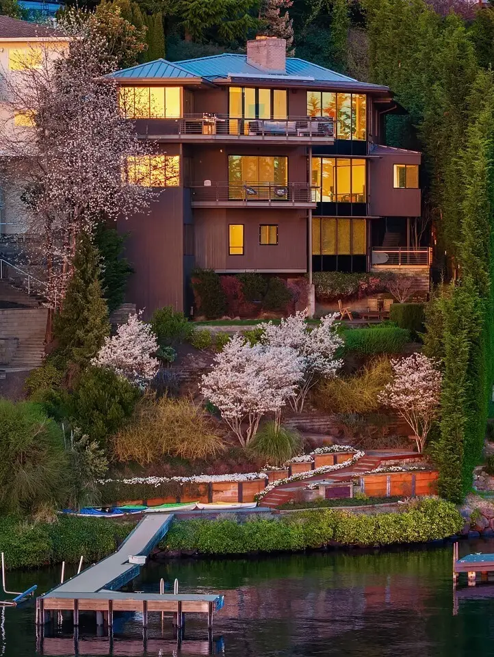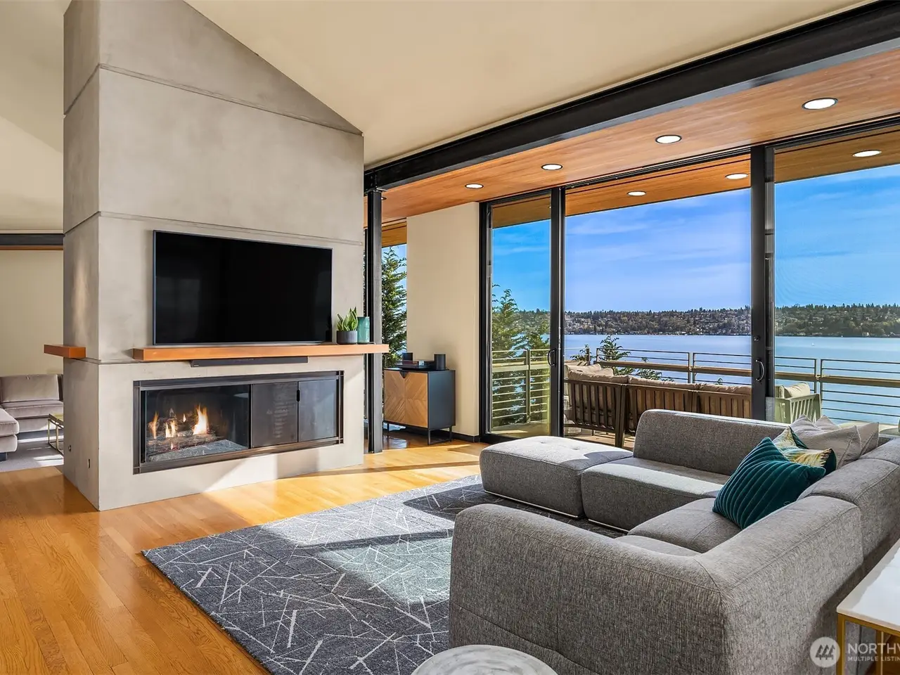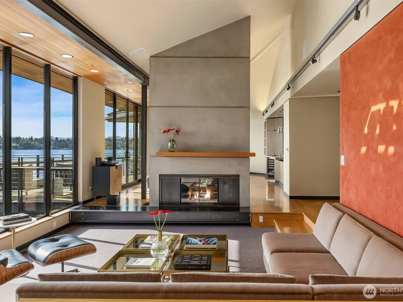 Olson Kundig design set upon the shores of Lake Washington. Light finds you in every space & the views are inescapable in your modern jewel-box home of glass, steel, wood & concrete, artfully reimagined by world renowned architect, Jim Olson, in 2008. Mt Rainier & the Olympics are your backdrop for all-day sun along 65' of coveted West-facing Mercer Island waterfront with new dock in 2017 & boat lift. Enter near waters edge to vaulted gathering spaces with seamless indoor/outdoor flow for social nights by the lake, quiet & intimate zones for retreat & relaxation, primary suite & two additional bedrooms share their own floor centered around a communal family room hub, & lakeside-level entertaining room with additional bedroom & 3/4 bathroom.