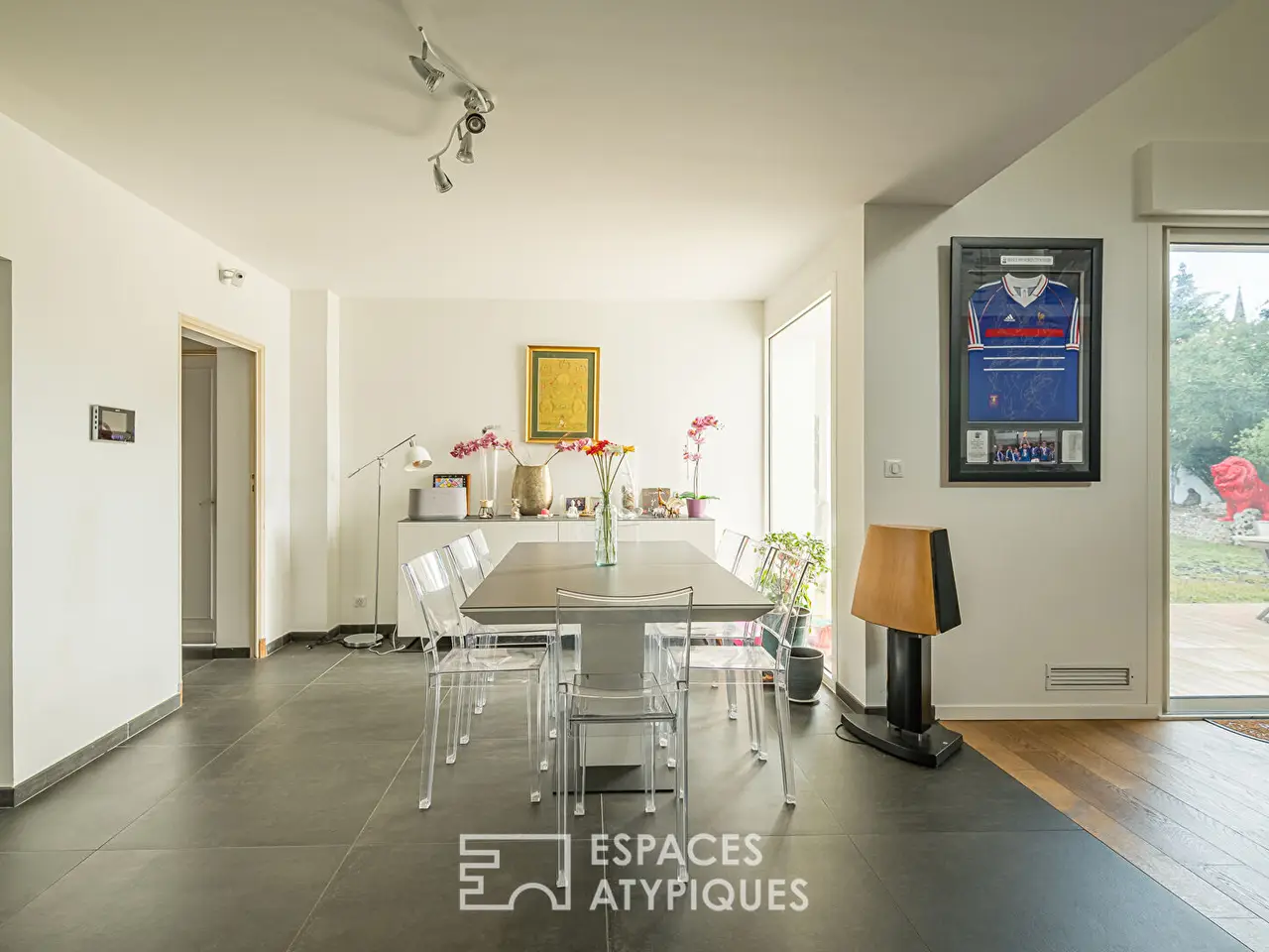 RARE in the heart of downtown Merignac, a 2-minute walk from the church and the tram, this spacious, fully renovated Hacienda-style family home seduces with its spaciousness and calm.The entrance leads to a large, semi-open fitted kitchen leading to a spacious cathedral-style living room of over 50m2. To complete the ground floor, the master suite offers a surface area of 45m2 with its dressing room and bathroom. A staircase mixing wood and glass leads to four bedrooms, one of which has a shower room, a bathroom and a separate toilet.On the garden side, the 1080 m2 plot is divided between a planted area and a heated swimming pool area (9×4) hidden from view. Part of the 60m2 wing of the house is now converted into a waiting room and two rooms which currently serve as offices, perfect for a liberal profession or a project of guest rooms/short-term rentals.A pantry, a large cellar and an adjoining garage will delight a family looking for space and peace and quiet just a few steps from all amenities.ENERGY CLASS: B / CLIMATE CLASS: A. Estimated average annual energy expenditure for standard use, based on 2024 energy prices: between 2120 and 2940 euros.Tommy Bertrand (EI) Sales Agent: 06 13 39 29 78 / RSAC number: 952 660 272 Bordeaux.REF. BORDEAUX-2148EABXAdditional information* 9 rooms* 6 bedrooms* Outdoor space : 1080 SQM* Property tax : 5 366 €Energy Performance CertificatePrimary energy consumptionb : 109 kWh/m2.yearHigh performance housing*A*109kWh/m2.year3*kg CO2/m2.yearB*C*D*E*F*GExtremely poor housing performance* Of which greenhouse gas emissionsa : 3 kg CO2/m2.yearLow CO2 emissions*3kg CO2/m2.yearA*B*C*D*E*F*GVery high CO2 emissionsEstimated average annual energy costs for standard use, indexed to specific years 2021, 2022, 2023 : between 2120 € and 2940 € Subscription IncludedAgency feesThe fees include VAT and are payable by the vendorMediatorMediation Franchise-Consommateurswww.mediation-franchise.com29 Boulevard de Courcelles 75008 ParisInformation on the risks to which this property is exposed is available on the Geohazards website : www.georisques.gouv.fr