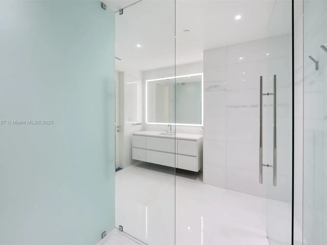 Thassos marble floors Italian cabinetry in bathrooms