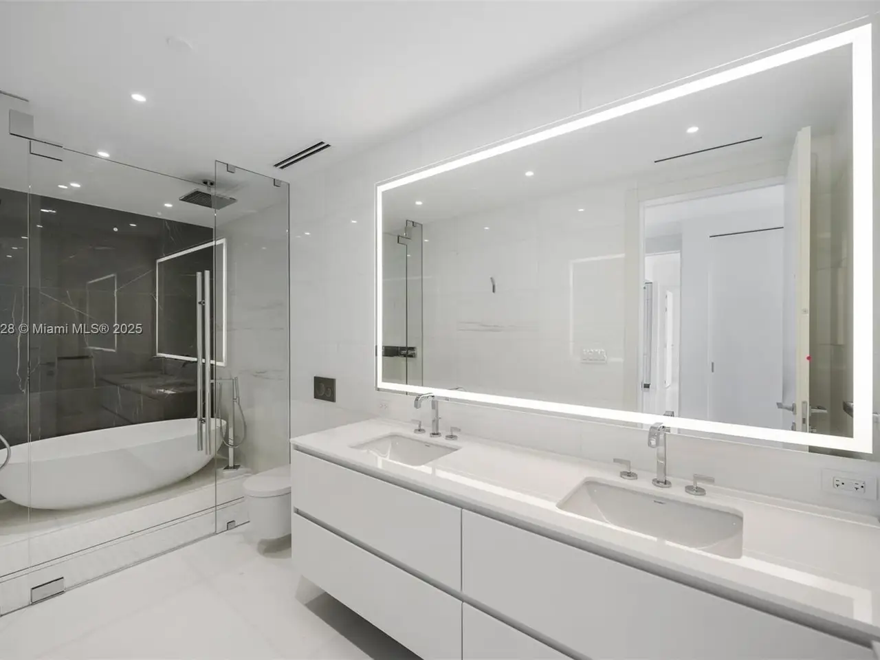 Enjoy direct bay and ocean views at Aston Martin Residences. This bright and modern unit features two beds, 2.5 baths, Bulthaup kitchen cabinetry. Gaggenau appliances & Thassos marble floors throughout. The unit has a split floor plan and the bedrooms have en-suite bathrooms with Italian cabinetry, quartz countertops, backlit mirrors, a freestanding tub in the primary bath, rain showers & white marble walls. AMR is a full-service building offering 24-hour concierge service, valet parking, a superyacht marina & four floors of sky amenities including golf & putting greens, cinema rooms, a 2-level fitness center, his-and-her spas, an indoor pool, an art gallery, a teen lounge, a children's playroom, a business center. a grand salon, an infinity pool, private cabanas & a helipad (pending appraval).