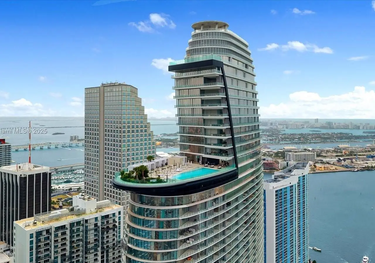 Aston Martin Residences Miami is a luxury residential tower located at 300 Biscayne Boulevard Way. Developed by G and G Business Developments, this 65-story skyscraper features 391 high-end condominiums with designs inspired by the iconic Aston Martin brand. Residences offer expansive layouts, floor-to-ceiling windows, and top-tier finishes. Amenities include a private marina, a state-of-the-art 2 floor wellness center, a sky deck with a pool, and more. The buildings sleek, modern design and prime waterfront location make it a prestigious address in Miami's vibrant downtown area.