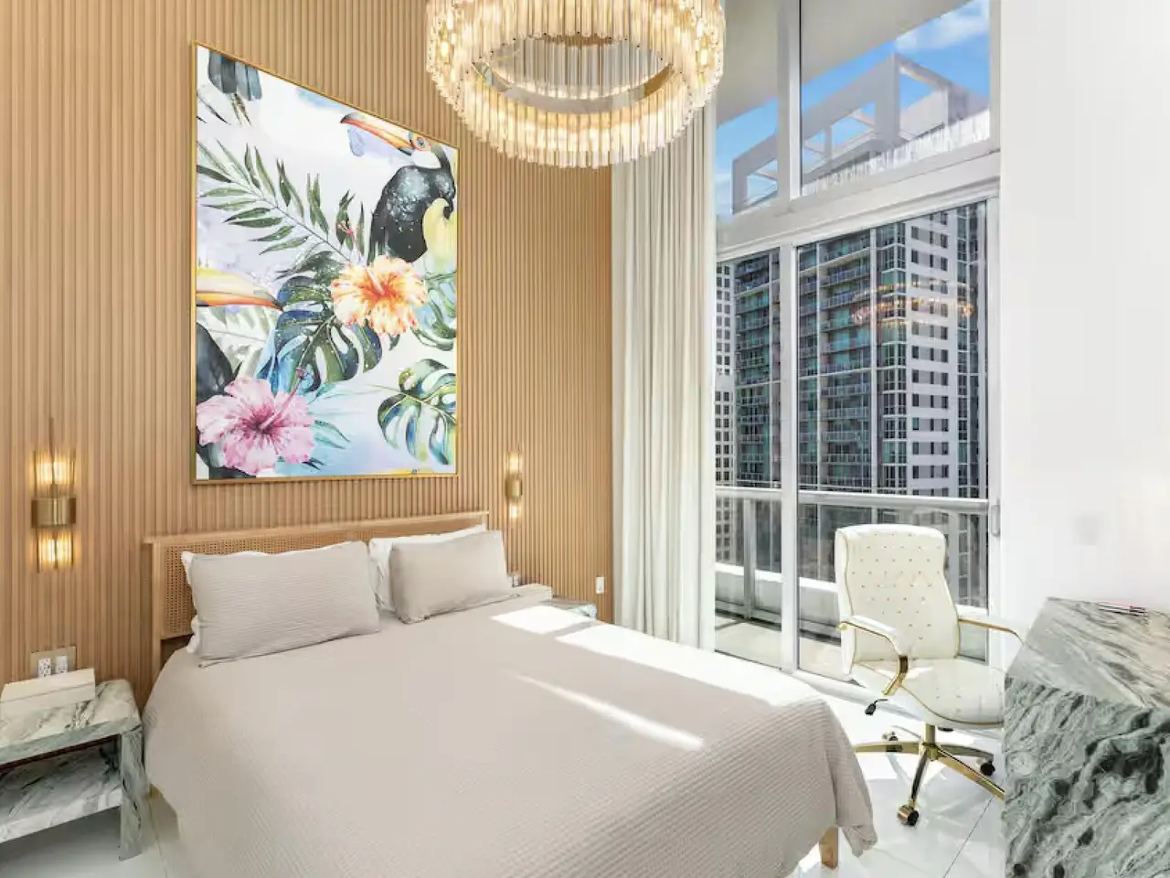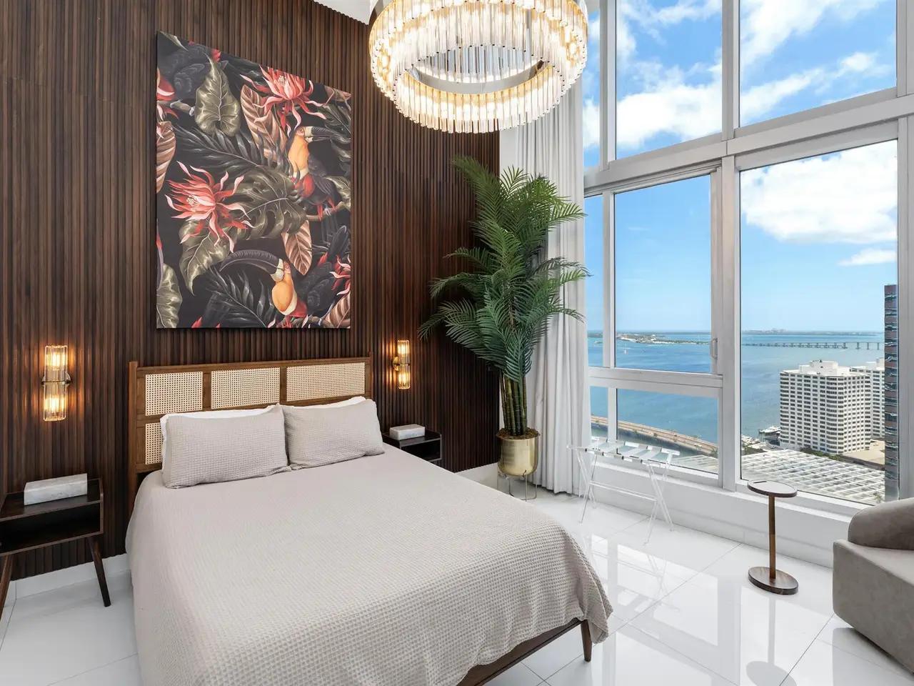 Experience the pinnacle of Miami luxury in this Icon Tower residence in the heart of Brickell. Rated a perfect five stars and awarded a guest favorite as one of the most loved homes on AirBnb with floor-to-ceiling windows frame skyline and bay views, while interiors are designed around the dream of vintage Miami--blending timeless Art Deco elegance with modern sophistication. Features include a custom hand-cut tub, hand-blown crystal chandeliers, and access to resort-style amenities shared with the W Hotel. Steps from chic dining, nightlife, and designer shopping. Set on the 28th floor of The Icon Brickell, this unit boasts impressive high floor-to-ceiling windows, offering two private balconies showcasing partial water views and stunning cityscapes. This is a must see!!