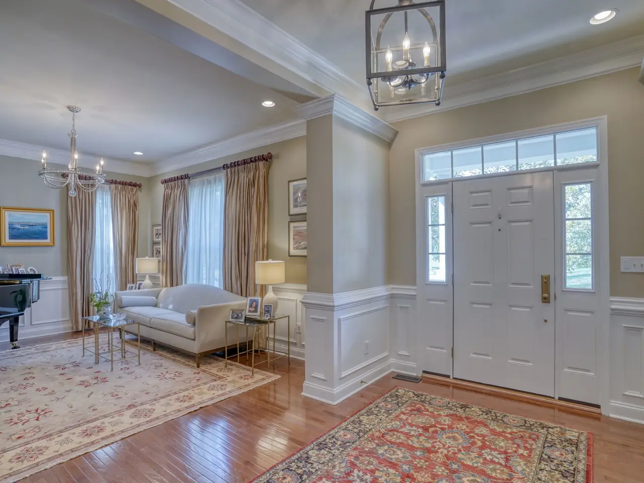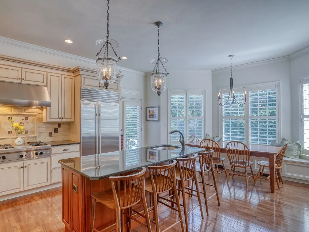 Welcome to 415 Spring Hollow Drive located in the sought after community of PARKSIDE. This breathtaking home features 10 foot ceilings on the first floor, 8 foot doorways and hardwood floors throughout .. it is JUST breathtaking! Lets start from the outside.....This home is located on the stunning street that represents Parkside, this large estate home has a 3 car side entry garage with a large STONE/SLATE massive patio in the yard that is surrounded by 25 foot trees. A private oasis that is fenced in and offers off the back door a Brazilian Ipe wood deck that leads to that stunning patio... adding to that, is a large walk up that leads down to a double French door entrance into the basement. Besides the large privacy trees, the landscaping is breathtaking....Now lets head inside, Hello Classic traditional beauty!!!! This 4 bedrooms, 4.1 bathrooms with a finished basement is your dream home. The formal living room, formal dining room have great size... hardwoods.... large windows.... upscale lighting fixtures and stunning moldings. The foyer offers a grand feel with the 10 foot ceilings and the curved staircase set back into the middle of the home....The large office off to the side of the home offers privacy....the family room that is open to the kitchen has coffered ceilings and a gas fireplace....the kitchen has so much to offer... 2 sinks, large island, Wolfe range, subzero refrigerator, built in seat, plantation shutters and this overlooks the beautiful yard. Not one but a second staircase off the kitchen, with a large pantry, mud room and butlers station that leads into the dining area. Now one of my favorite... the half bathroom that has been done that will make your draw drop!!!! a must see. As we head upstairs we are greeted with all hardwoods again... a massive impressive entrance into the Primary bedrooms with 2 large custom closets and a large primary suite.... Bedroom two is a princess suite with a large bay window... bedroom 3 and four are great size rooms with a very large Jack and Jill bathroom to share. The upstairs laundry room offers convince with a slop sink also. Now the finished basement has all the upgrades one could imagine.. beautiful bathroom, a full gym with large glass door, Natural light from not only the French doors but a large full window, a lovely granite large island to host all your games and counter tops for entertaining guest .... and a custom designed family area. This home is a must see!!!
