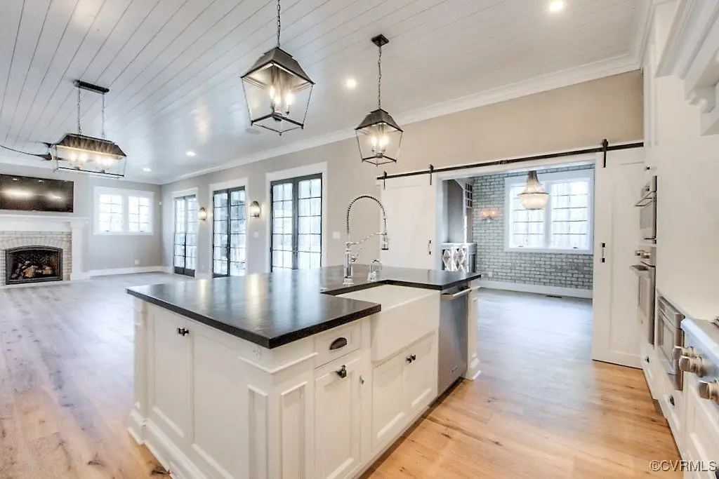 Chef's kitchen with quartz tops and stainless appliances