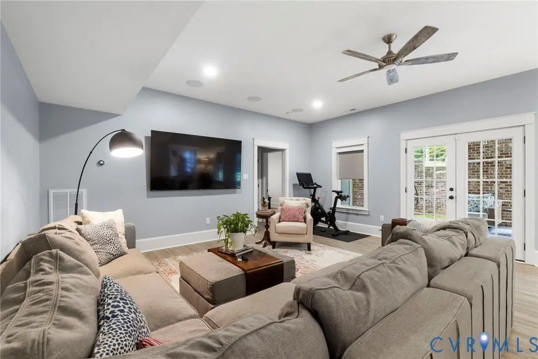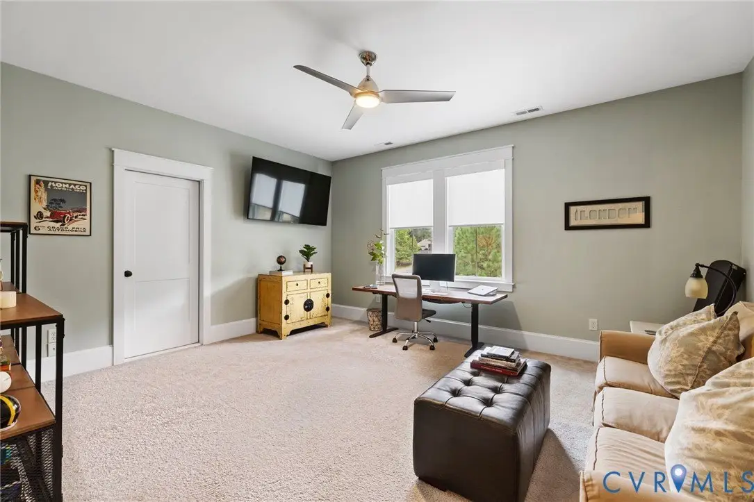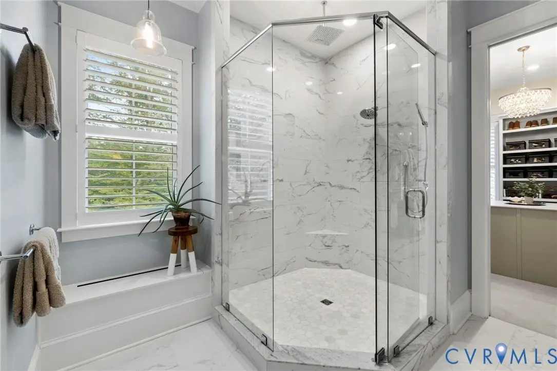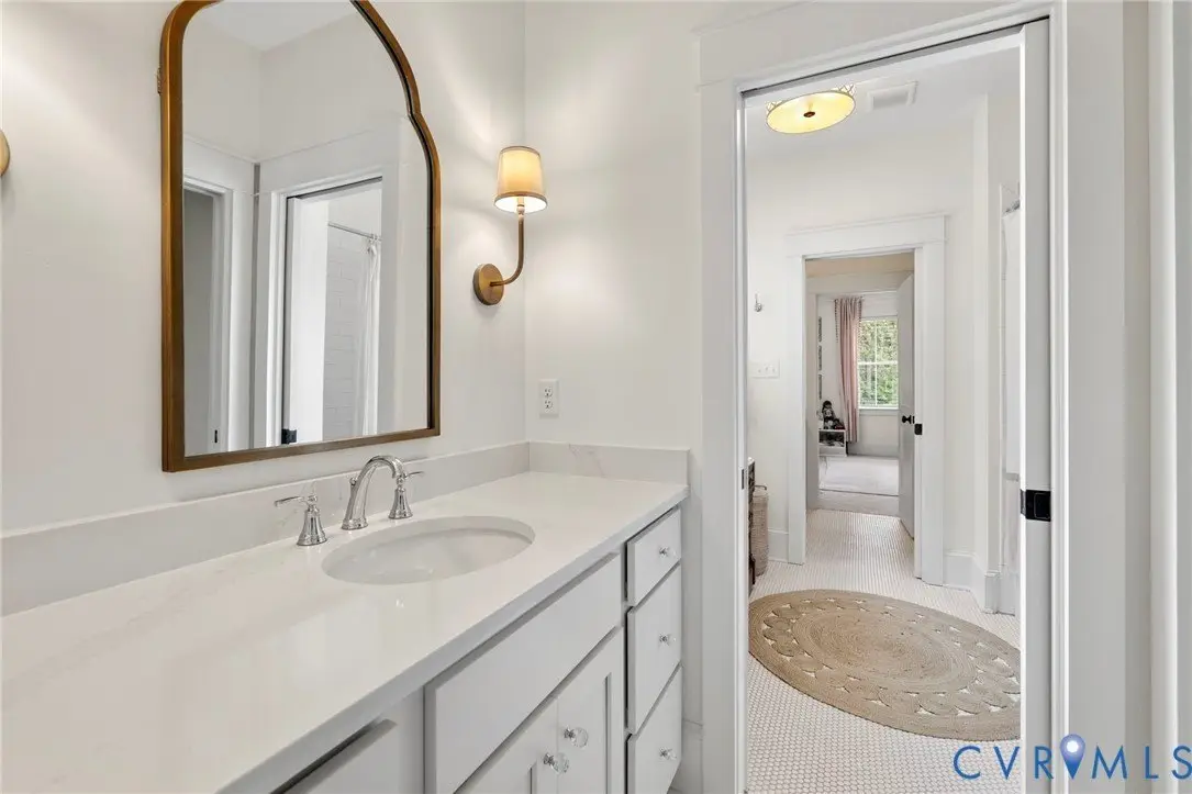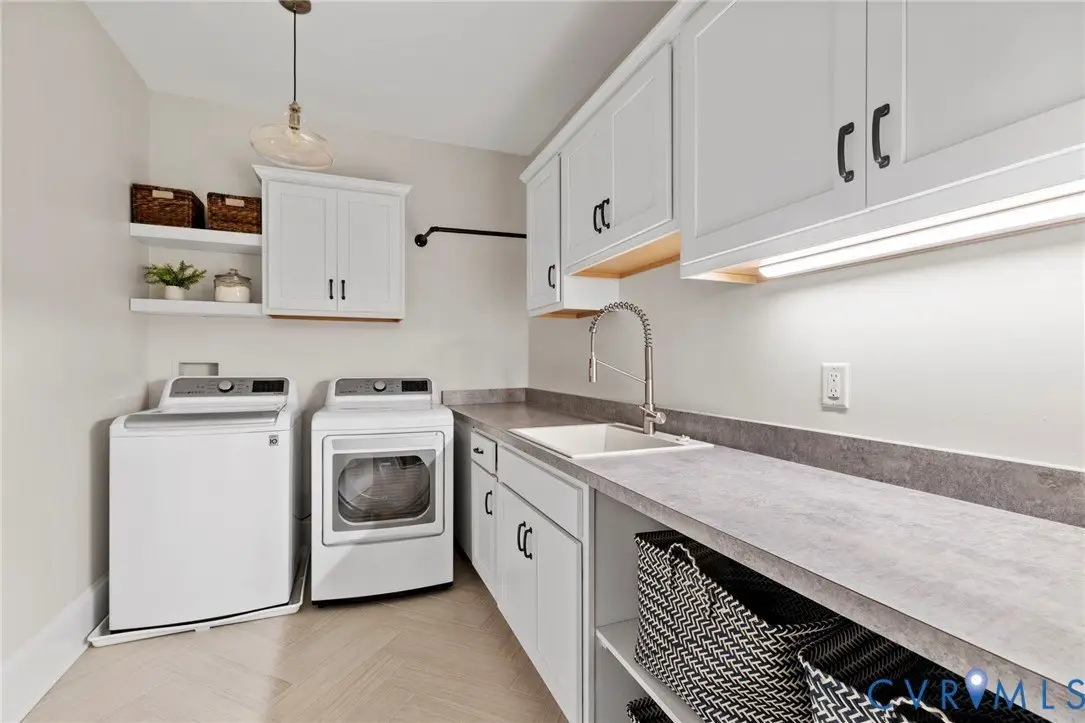 This custom-designed Pacific Farmhouse by Biringer Builders is a masterpiece of craftsmanship & design, blending elevated sophistication with everyday comfort. Situated off of historic Old Gun Road on 2 private acres, the home offers the serenity of a retreat while remaining minutes from conveniences. From the inviting front porch to the welcoming foyer, every detail has been thoughtfully curated. Soaring 10' ceilings, exquisite moldings & wide-plank wood floors establish an atmosphere of refinement. A paneled dining room & butler's pantry provides the perfect setting for gatherings, while the light-filled family room with beamed ceilings, fireplace, and built-ins flows seamlessly to a three-season screened porch with a stone fireplace-ideal for entertaining & relaxation. The chef's kitchen is a true showstopper, featuring a large quartz island with breakfast bar, floor-to-ceiling cabinetry, designer backsplash, luxury appliances, and a sunlit dining area. A walk-in pantry, office/mudroom, powder room and laundry enhance main-level living. The primary suite is a luxurious retreat, wrapped in windows with refined crown molding. The spa-inspired bath offers a double vanity, walk-in shower, private water closet, linen storage, and a boutique-style walk-in dressing room with custom built-ins. Upstairs, a versatile loft connects four spacious bedrooms, including a Jack-and-Jill suite plus a second laundry room with cabinetry. An additional suite with full bath offers flexible space for a media room, office or guest accommodations with expansion potential in the wired storage area. The finished lower level provides abundant living space with a great room, playroom, guest suite and direct walk-out to a private patio. An oversized two-car garage offers excellent storage. Outdoors, the property is designed for both recreation & retreat with a sports field and wooded trails and convenient second stone driveway. This remarkable residence offers a rare opportunity to enjoy elevated living in the heart of beautiful Midlothian.