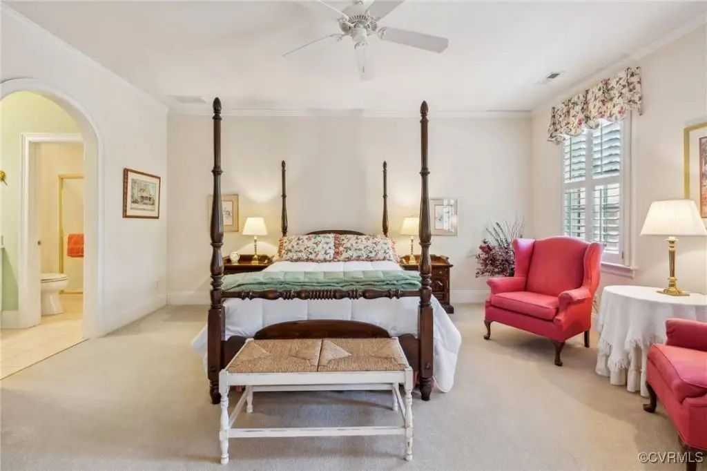 Price Adjustment & Move in Ready! 13901 Dunkeld Terrace is privately positioned just off the 6th hole of Salisbury Country Clubs Monacan course, featuring a perfect blend of today's luxury and yesterday's classic details. The main level, with regality, features formal living and dining, gleaming hardwood floors, extensive millwork, coffered ceilings and built in custom cabinetry. Spacious chef's kitchen offers gas cooktop, double ovens, ice maker, Sub Zero, spacious island with separate prep sink and a pass through to the Living Room Wet Bar! Relax in the Morning Room while taking in vast views of the terraces' water fountain and golf course. First floor Primary Suite is its own sanctuary given its orientation and access to the terrace, cozy fireplace, large bath with venetian marble, private laundry area and movie star closet. Not to be overlooked on level 1 are two powder rooms and a bonus Butler's Pantry or craft room. Upstairs are three generously sized Ensuites complete with plantation shutters and Walk in Closets, Home Office with full bath, Game Room and two expansive walk in attics. 13901 Dunkeld Terrace is the ideal location for those that seek privacy, lush plantings with limited yard maintenence, easy access to golf courses, restaurants, shopping and plenty of garage space for your everyday vehicles as well as boats, bikes or rv's! Truly a Rare opportunity.