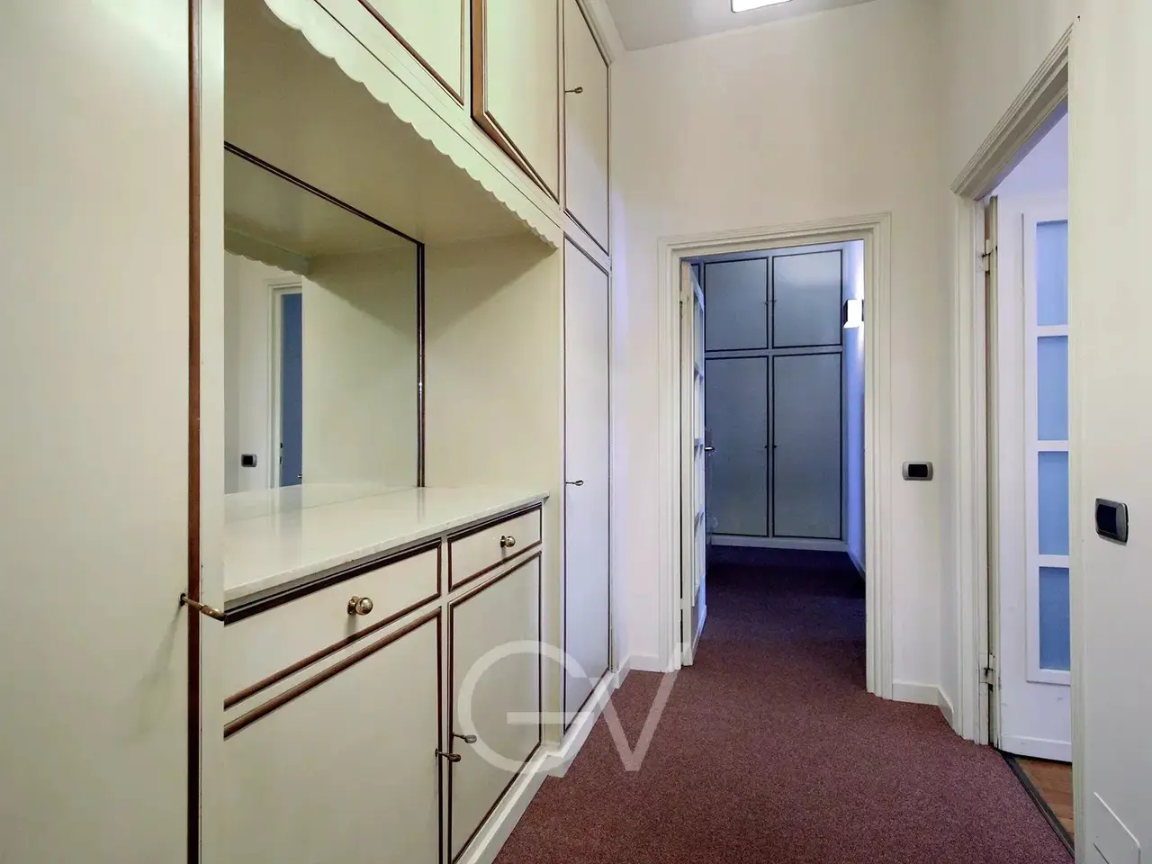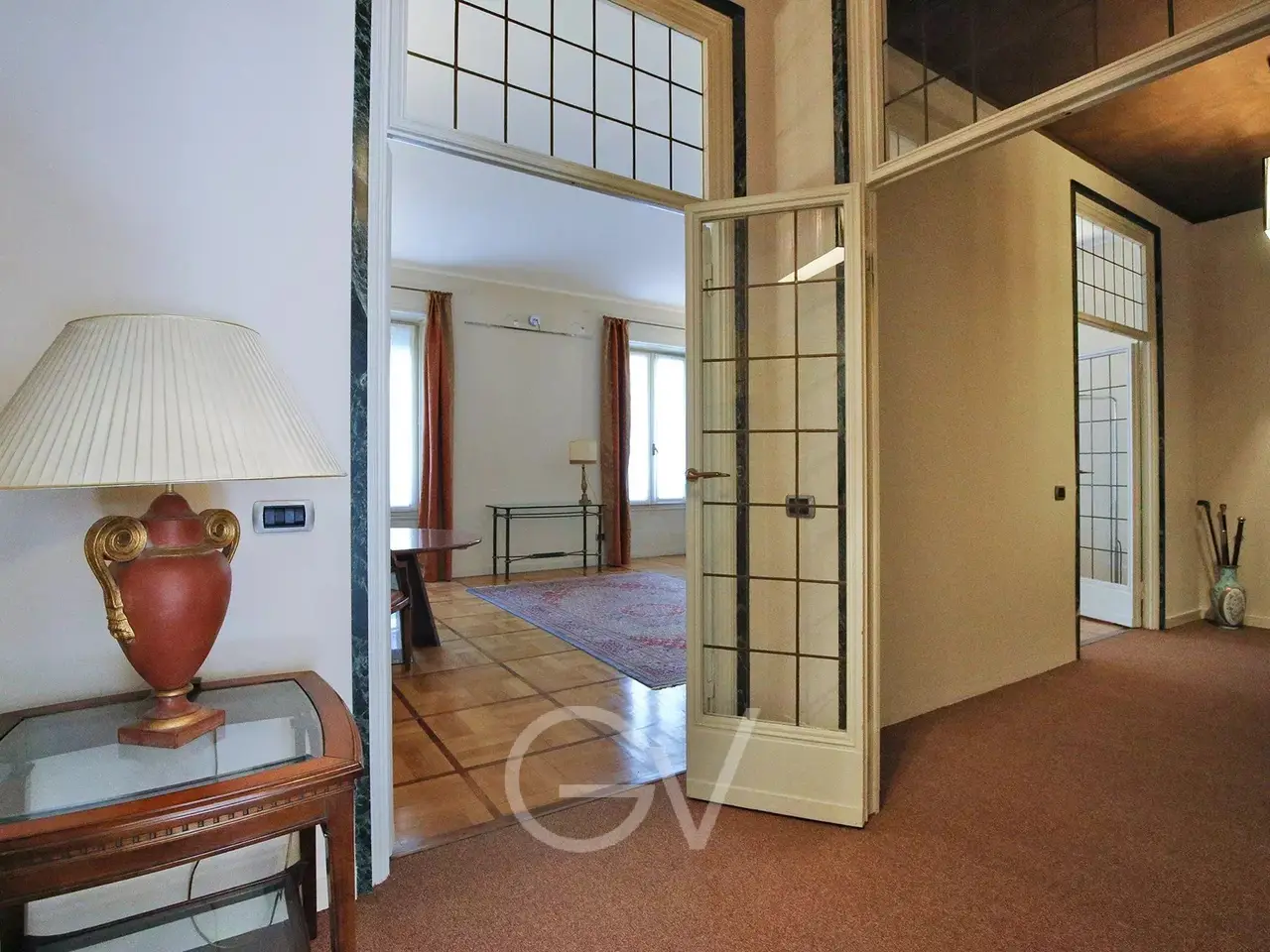gv1364 - Via Visconti di Modrone - Timeless elegance in the heart of Milan. An elegant 166sqm dwelling in great state of maintenance develops itself on the second floor of a period 1960’s / 1970’s building with a pleasant condominium garden. The apartment, characterized by a double overlook and an harmonious distribution of the spaces, opens onto a large anteroom with a vestière for the coats, from which take shape a central hallway equipped with comfortable built-in wardrobes that disengages all the spaces. The double living room, bright and charming, is embellished with parquet floors and represents the heart of the dwelling. On the other side, the service area is composed of a spacious habitable kitchen with a balcony overlooking the internal courtyard with a service entrance, a small laundry room, an ironing room/wardrobe and a bathroom complete with shower. The well separated night area welcomes two large bedrooms, one of which with a balcony and a windowed bathroom with tub. The apartment, completely whitewashed, has double glazings, a newly overhauled air conditioning system in four rooms and can be sold partially furnished with design furnitures and fine period furnishing of the late nineteenth century with a separate negotiation. To complete a large cellar. The building has all day concierge service, double lifts to the floor and centralized heating. The location is particularly convenient thanks to the presence of four car silos and two supermarkets. The neighbourhood is exclusive and perfectly linked: a few steps from San Babila Square, from the gardens of Porta Venezia and the subway MM1. The recent opening of the new subway MM4 – San Babila stop – allows a rapid link to Linate Airport. The ATM surface lines 94, 85 and 61 pass right under the house, ensuring widespread mobility throughout the city. Class: Ape F – 191,45. € 1.600.000 - € 8.000,00 annual condo expenses. The choice of this property contributes to support the mission of Theodora onlus. Photos, texts, floor plans, etc., are purely for illustrative purposes and do not constitute documents with contractual value and presupposition. Giorgio Viganò Real Estate - 027636151 - www.giorgiovigano.com