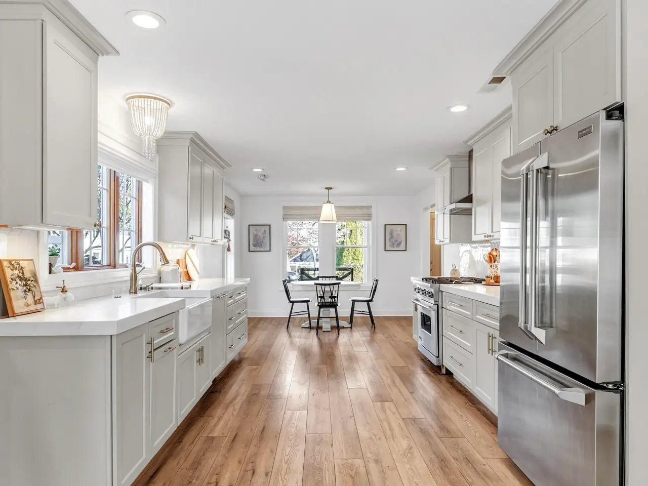 Wake up to sea breezes from Long Island Sound in this beautifully rebuilt 4-bedroom, 2.5bath home in Milford's highly desirable Morningside neighborhood. No flood insurance required! Completely transformed inside and out in 2019, this home blends coastal charm with modern luxury. Sunlight fills the open living spaces, featuring a chef's kitchen with high-end appliances, walk-in pantry, and cozy breakfast nook that opens to the dining and family rooms, perfect for gatherings big or small. A spacious laundry room with built-in storage is conveniently located off the family room. Upstairs, the vaulted primary suite is a private retreat with a spa-inspired bath, freestanding soaking tub, walk-in shower and generous walk-in closet. Three additional bedrooms plus a versatile room with distant water views provide space for guests, an office or nursery. Enjoy morning coffee on the covered front porch or cocktails on the back deck while taking in sunsets over the Sound. Steps from the water and minutes to downtown Milford's beaches, restaurants, and train station, this home perfectly captures the best of coastal Connecticut living.
