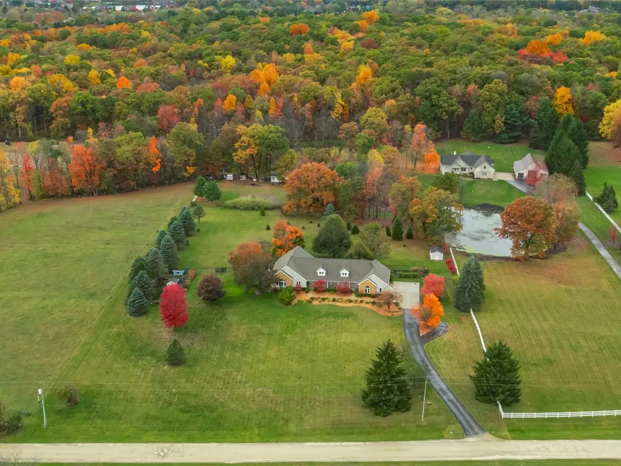 OMG!! Looking for a 1-STORY Home with FINISHED WALKOUT, 3-CAR Garage, SHED, Chicken Coup, Garden, almost 4 ACRES... AND a whole Lifestyle Experience to go with it?? If so, You've Found Your DREAM PROPERTY!! Country Living, NO Association, Wildlife visitors, several Patios/Decks including an expansive 3-SEASONS ROOM to Enjoy the SEASONAL BEAUTY+ a Long Covered Front Porch for additional relaxation time...and all within minutes of the charming downtown Milford with an added bonus of closeby proximity to Kensington Park. Over $75k of upgrades/improvements since purchase including New Landscape/Hardscape, altered 3-Seasons Room to include a walkout (including adding brick exterior); Oct 2025 UPDATES include Refinished HARDWOOD Flooring and Brand New CARPET on the Main Level, Home professionally cleaned from top to bottom, Furnace approx 6 yrs, Hot Water Tank approx 4 yrs, Sump pump approx 1 yr, etc. SPRAWLING RANCH LAYOUT w/wood-burning FIREPLACE in your great room flowing to formal dining space; Large Functional Country Kitchen w/Granite, Island, Snackbar and sizable Breakfast Nook; 1st FLOOR LAUNDRY (Washer apprx 2 yrs old) and New Utility Sink; Primary Bedroom with serene yard views including 2025 Updated Private ENSUITE refreshers, 2 Large WICs; Library/Office with built in shelving conveniently located off your Expansive/Welcoming Entry Foyer, showcasing an open staircase to the FINISHED WALKOUT with WET BAR, dining/recreation/family/workout/full bathroom and large storage/mechanical spaces, including a to-die-for PET Grooming/Bath area--SO CONVENIENT FOR PET OWNERS!! Don't let this GEM pass you by, it's given current owners a TON of JOY -- you're next!!