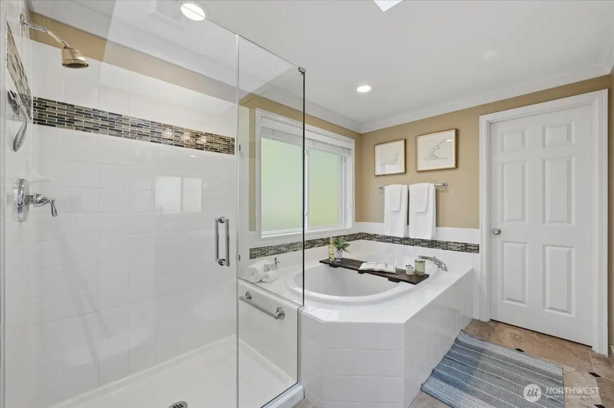 UNIQUE Mill Creek, peninsula, double corner lot, in cul-de-sac. Over $200k in upgrades! Elegant style meets function in this beautiful home; 4 bd/3bth + bonus room, 3 Living room spaces (Formal LV, family RM & media room), formal dining, Vaulted ceilings, Wainscoting, hardwoods, Updated kitchen & baths (all 3). Floor plan flows easily for quite the comfortable lifestyle. Highlights include chef's dream kitchen w/X-large 10ftx5ft granite island, $15k sub zero fridge w/glass door, Double Drawer dishwasher, walk-in pantry & more. Outdoor Oasis; built-in BBQ w/granite island, Hot Tub, Gas firepit, outdoor shower & more. Professional Landscape, lighting & irrigation. Nicest listing in The Parks to come along in awhile. Pre-inspected! MUST SEE!