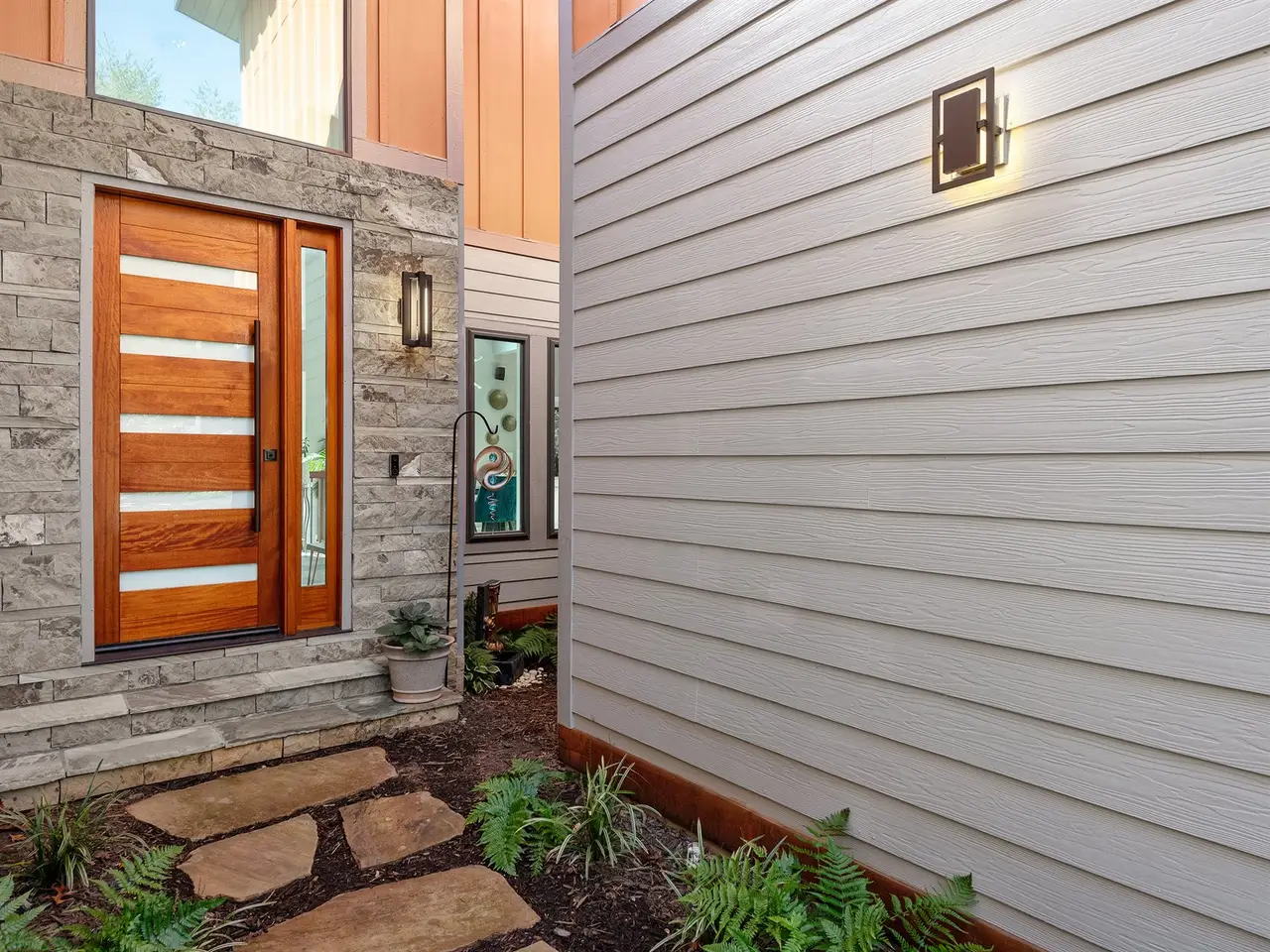Modern light fixtures throughout