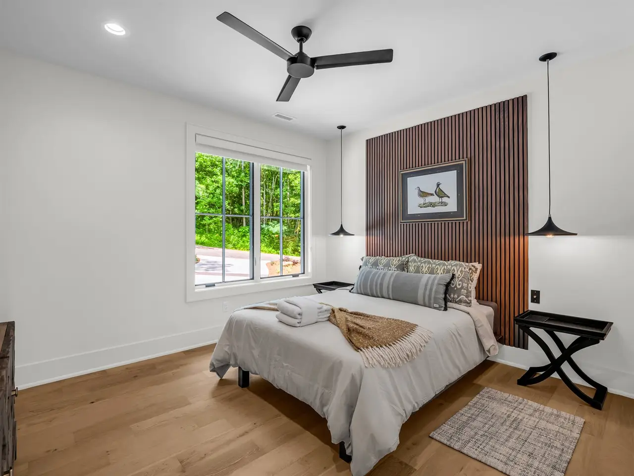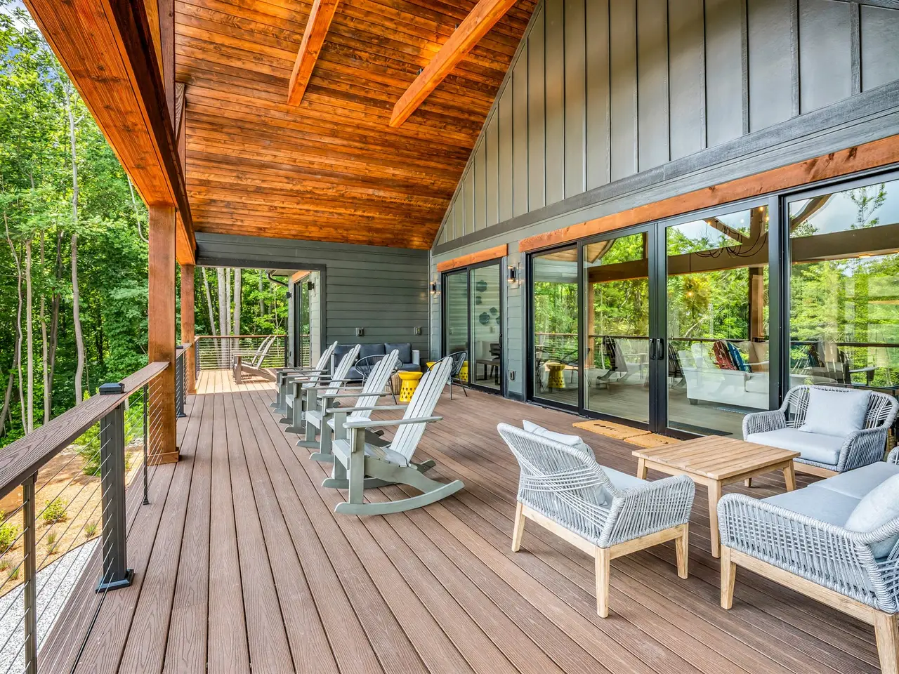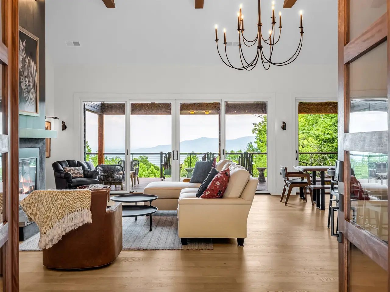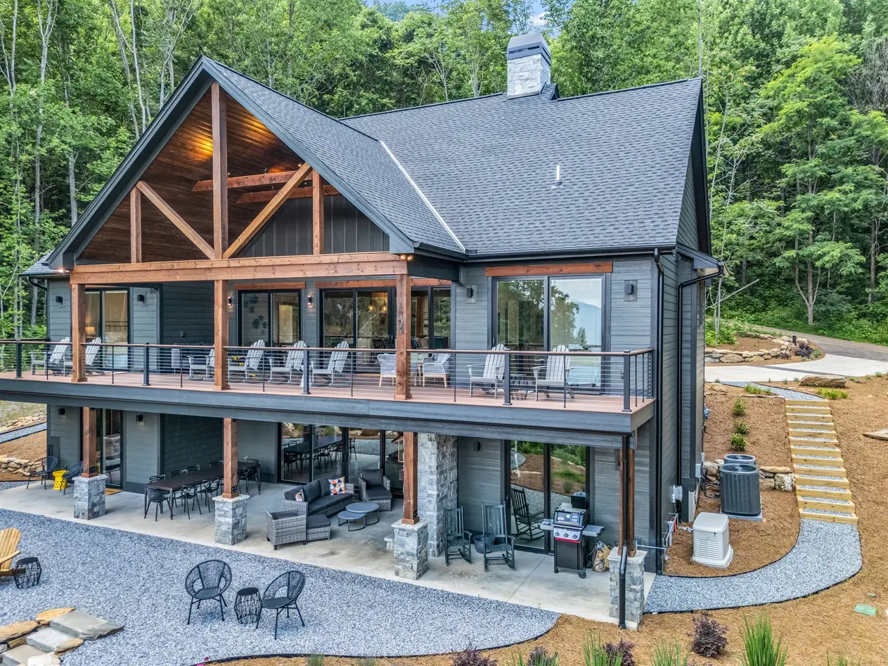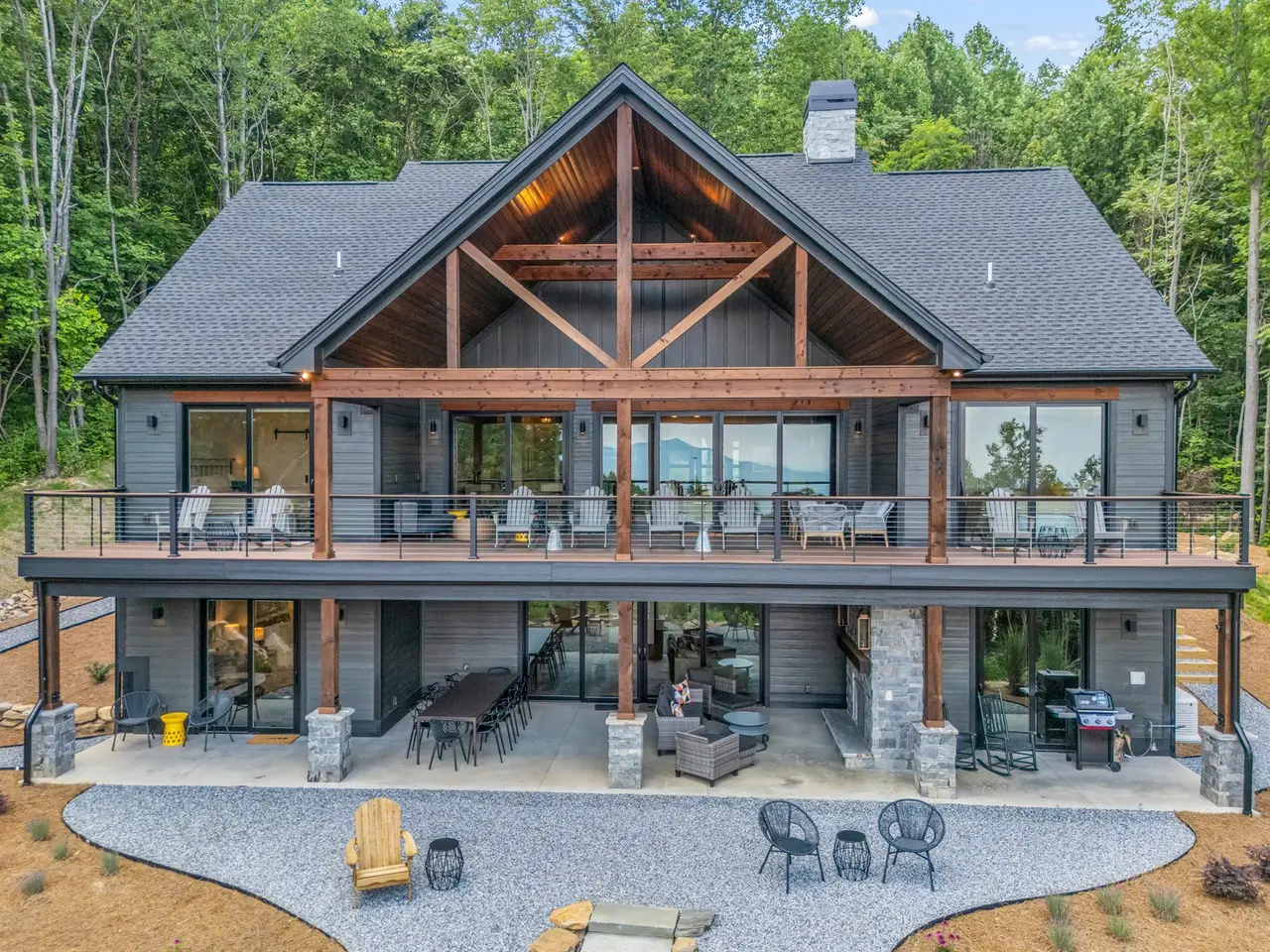Recently completed with a modern edge and stunning mountain views in the gated community of Bright's Creek. Experience refined mountain living in this newly built, tastefully decorated home set on a large, beautifully landscaped lot inside the gates of Bright's Creek Golf & Equestrian Community. Enjoy panoramic views of the Blue Ridge Mountains from multiple outdoor living spaces, including an expansive deck, a wonderful fire pit area, and a covered lower-level patio with a stone fireplace - perfect for year-round entertaining. Inside, the open-concept design, quality finishes, and natural light create a warm, inviting atmosphere. With a Bright's Creek Club membership residents enjoy access to Bright's Creek's championship Fazio designed golf course, saline pool, bowling, trails, tennis/pickleball courts and two dining options making this an ideal luxury retreat.