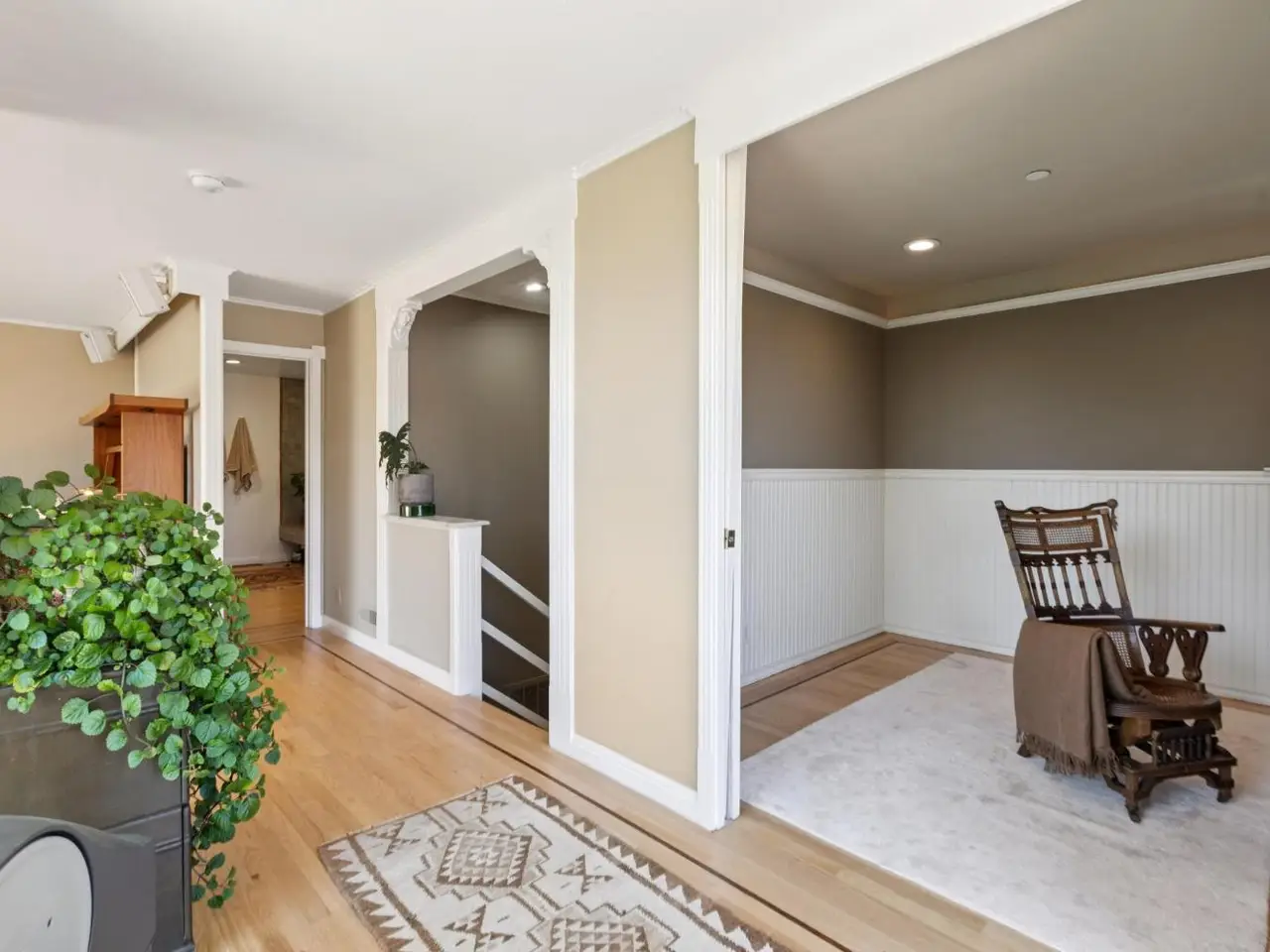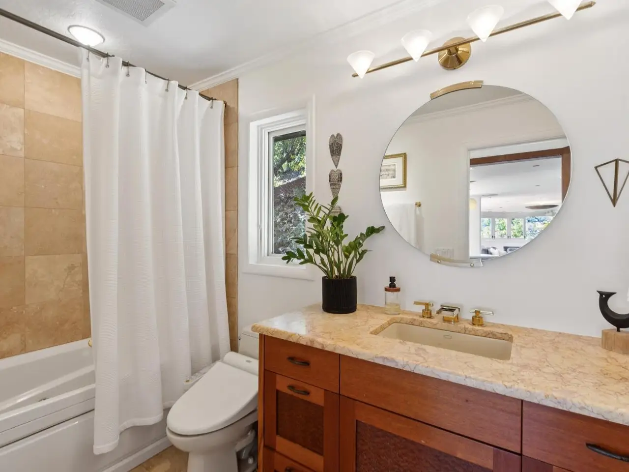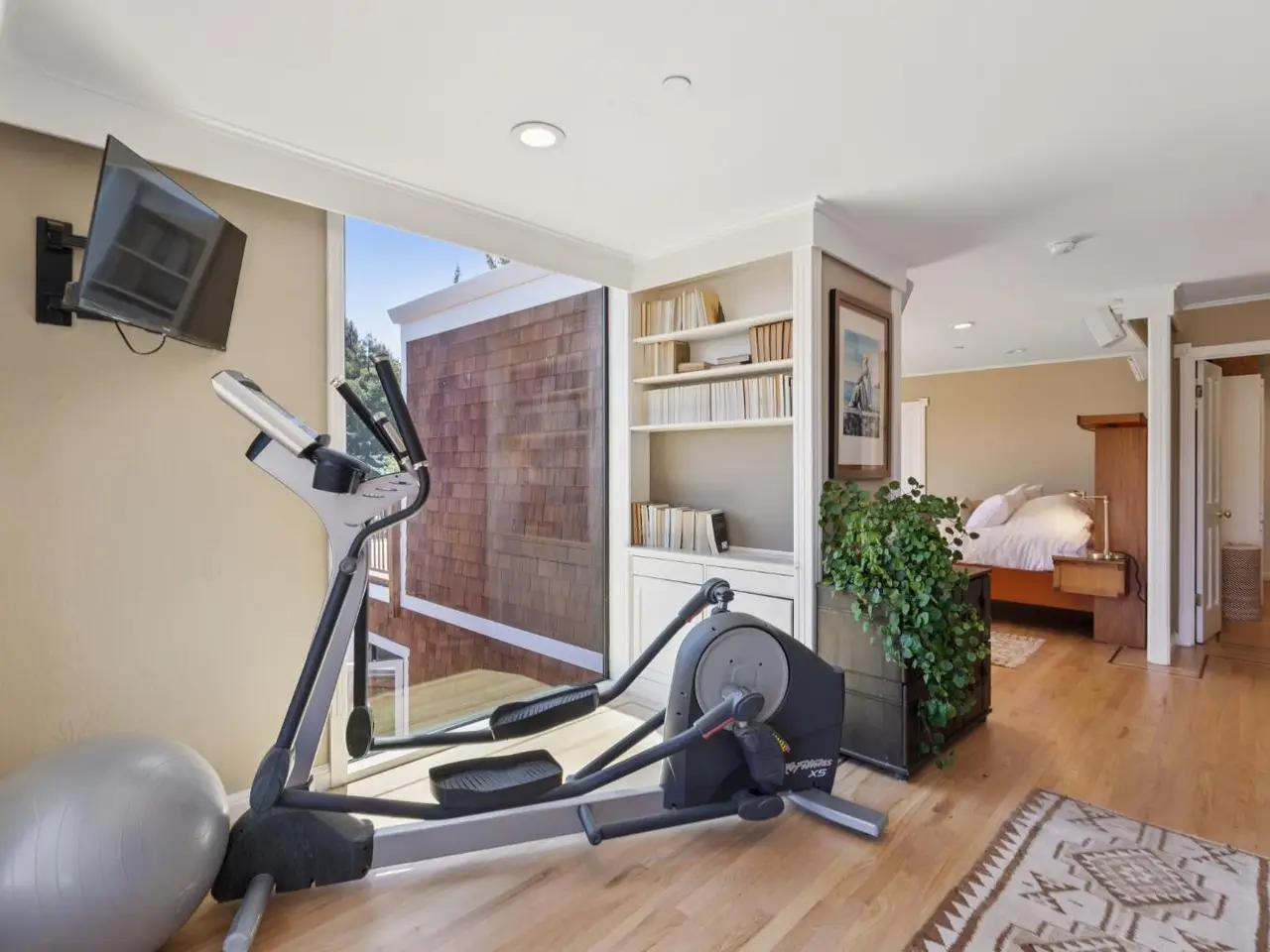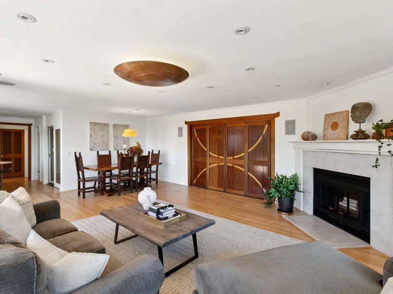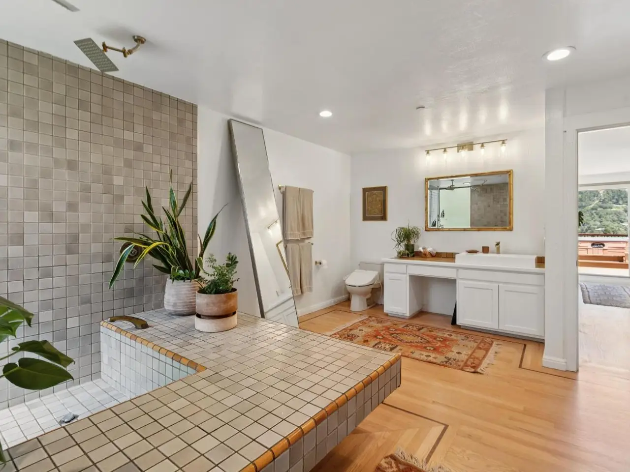 This stunning custom four-bedroom, five-bath home on prestigious Middle Ridge delivers the quintessential Marin lifestyle with sweeping views spanning the surrounding hills to Angel Island, the Bay, and downtown San Francisco. Entertain effortlessly on multiple decks, including the main deck accessible through custom moveable glass doors from the expansive great room featuring living, dining, and gourmet kitchen areas. The chef's kitchen showcases elegant Italian marble countertops, top-tier appliances, and exquisite custom mahogany Berkeley Mills cabinetry. Two sunny main-level bedrooms each offer en-suite baths, while the private upper-level primary suite captures incredible vistas from dual private decks, one featuring a spa tub and outdoor shower. This indulgent retreat includes a luxurious bath, wood-burning marble fireplace, oversized walk-in closet, and dedicated office and exercise areas. A versatile guest suite with separate entrance provides flexible living options. Premium features include hardwood floors throughout and owned solar panels. Situated on a tranquil, sun-drenched avenue mere minutes from downtown Mill Valley's award-winning schools and world-renowned hiking and biking trails.