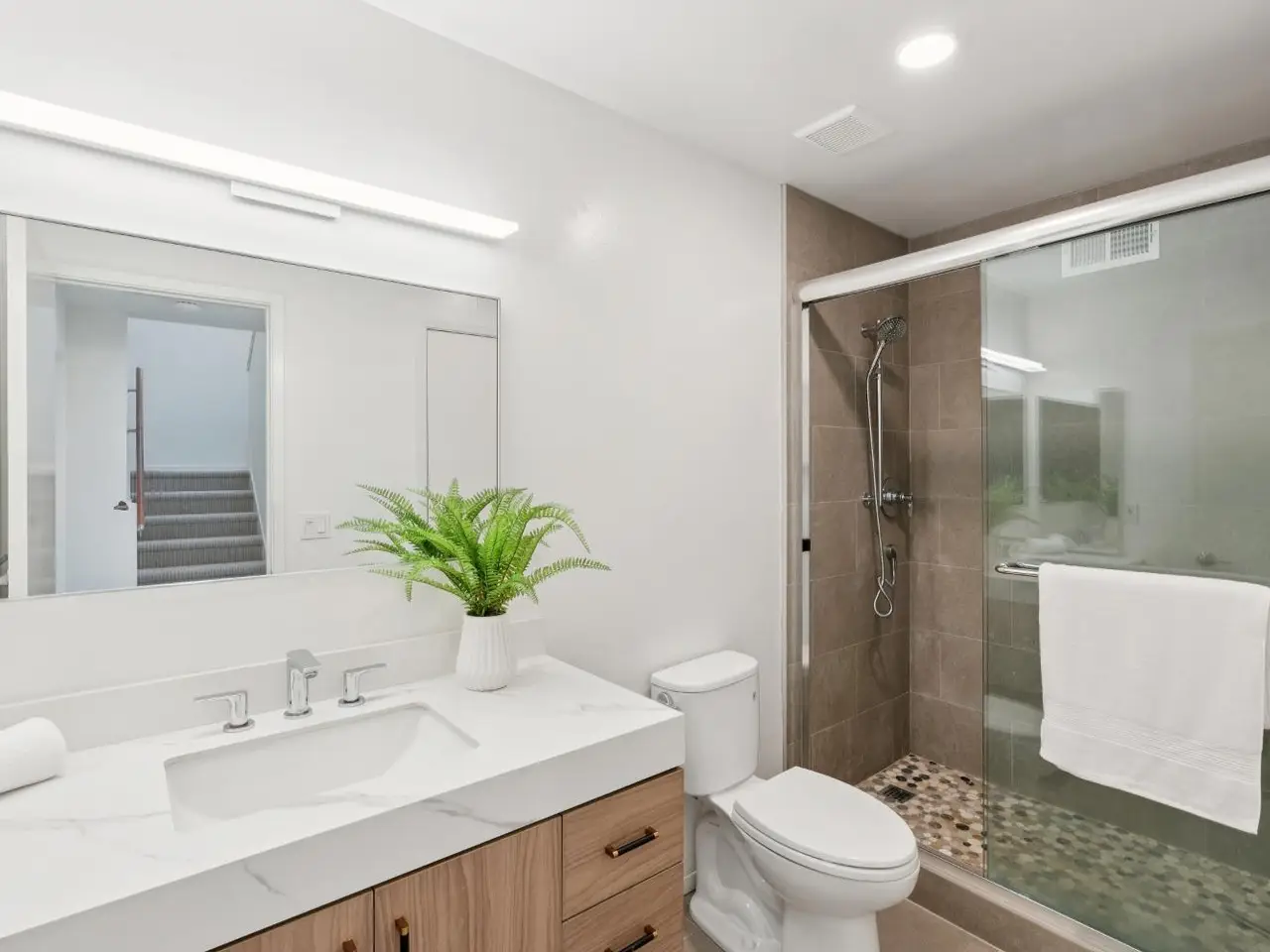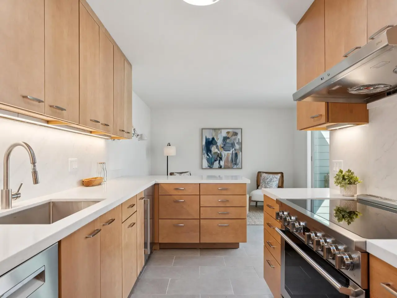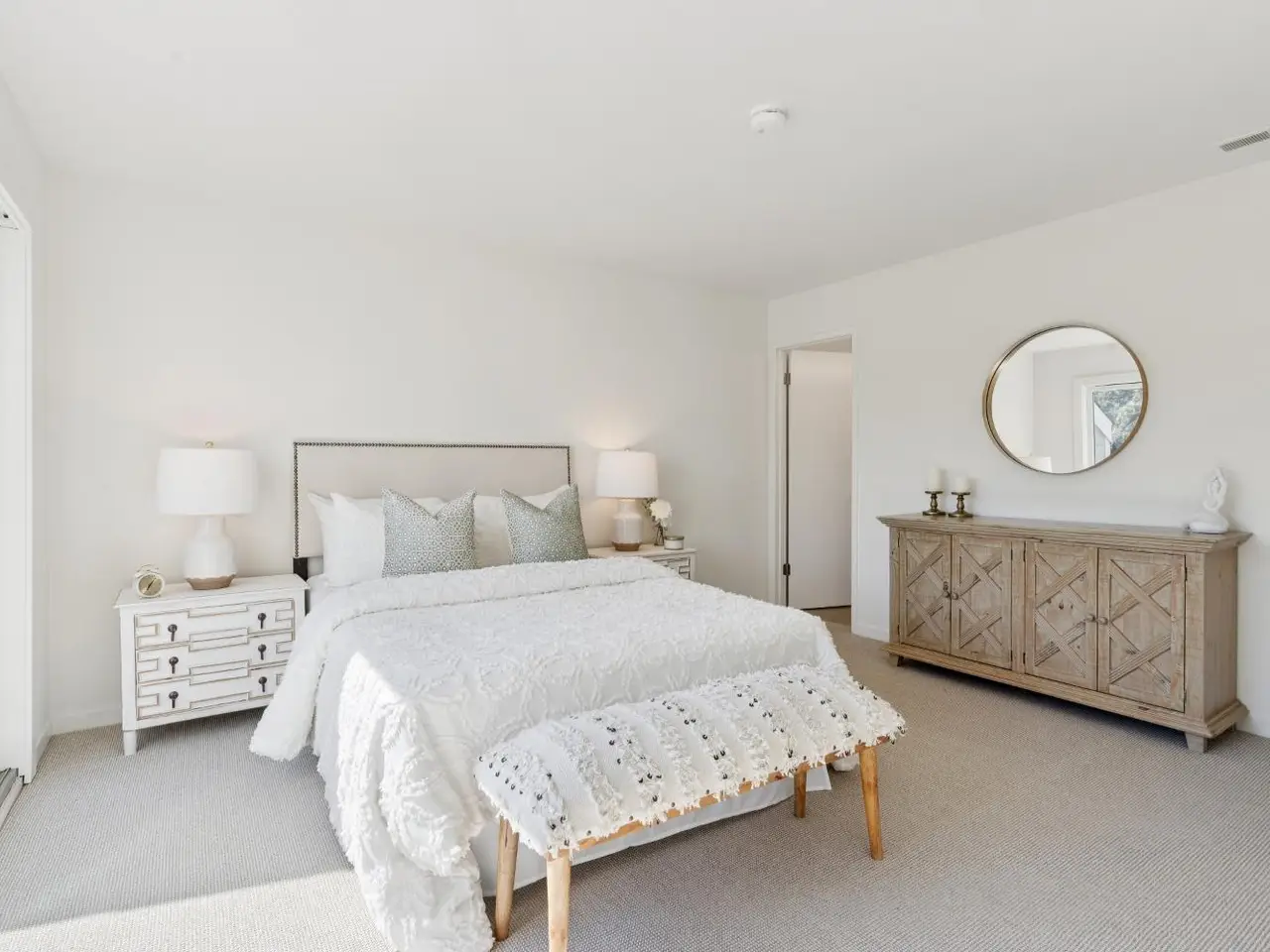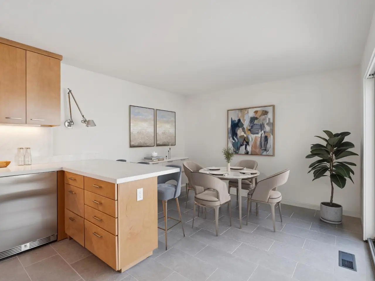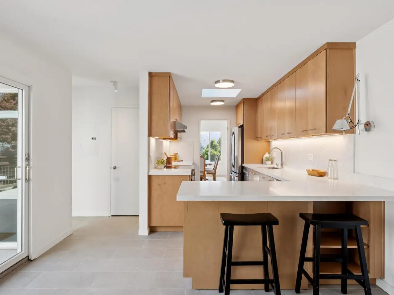 Stunning, stylishly remodeled home in Marinview featuring light-filled, open spaces with two bedrooms, two versatile bonus rooms, and two and a half baths. Situated on a quiet cul-de-sac and perched with tranquil, expansive views overlooking the Golden Gate National Recreation Area, this attached residence brings natural beauty to your doorstep. The living and dining room showcases soaring, open-beamed ceilings, gleaming hardwood floors, and a gas fireplace, while large windows and sliding doors bathe the space in natural light and open seamlessly to the view deck. The chef's kitchen delights with maple cabinetry, quartz countertops, and premium appliances including a five-burner induction range, plus a breakfast bar and informal dining area that opens to a peaceful, porcelain-tiled entry courtyard. The lower level houses two bedrooms, both bonus rooms, and a well-equipped laundry room. The spacious primary suite features a luxurious bath and private deck. A two-car garage completes the home. Perfectly positioned with trailheads nearby and close to Tam Valley's shopping, restaurants, and top-rated schools. Downtown Mill Valley is just minutes away. Easy access to Highway 101.