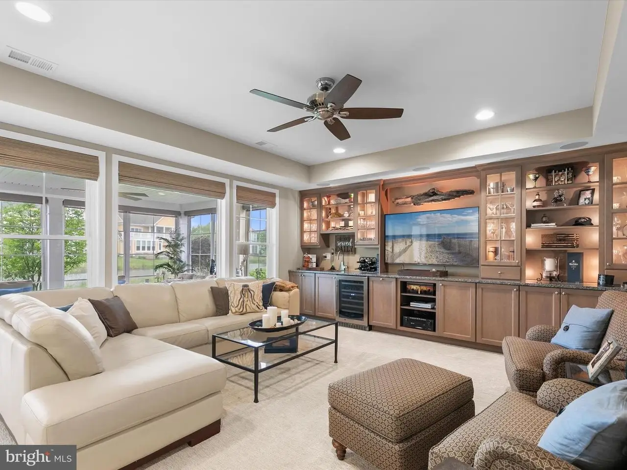 Coastal Elegance Perfected in the Peninsula on Indian River Bay Tucked into one of the most sought-after coastal communities in Delaware, this exquisite residence in the Peninsula on the Indian River Bay offers a lifestyle as elevated as its design. With over 3,000 square feet of luxury living space, three bedrooms, three and a half baths, and sweeping pond views, this home seamlessly blends refined coastal style with thoughtful upgrades at every turn. A premium pond lot sets the tone before you even step inside, with custom landscaping, stone facade accents, and an inviting front porch that whisper of the quality within. Step through the front door and be immediately struck by the craftsmanship, wide-plank, random width, hand-scraped engineered hardwood floors flow throughout the main level, complemented by triple-panel wainscoting, crown moldings, and designer lighting fixtures that lend warmth and sophistication to every space. At the heart of the home, a top-tier chef's kitchen stuns with quartz countertops, a custom center island, and white farmhouse sink framed by a glass tile backsplash and premier cabinetry. An additional wall oven, Advantium oven, under-cabinet lighting, and even a built-in vacuum beneath the sink make this kitchen as functional as it is beautiful. The adjacent dining area was extended during construction, adding space for entertaining and opening to the upper deck through sliding glass doors. A coffered ceiling elevates the dining experience, while a cantilevered gas fireplace with full stone surround anchors the living room with coastal charm. Every detail throughout the home has been curated with an eye for elegance-from the beamed ceiling and dormer beadboard detail in the living room to the tray ceiling with beadboard and crown molding in the foyer. Plantation shutters and custom window treatments throughout lend a cohesive, high-end aesthetic. The main level also features a serene primary suite, thoughtfully positioned for privacy, with additional windows, a tray ceiling with rope lighting and headboard detail, and a luxurious en-suite bath. Frameless shower doors, granite-topped vanities, and premier cabinetry make every morning feel like a spa day. Downstairs, the lower level unfolds into a private retreat ideal for guests or relaxed gatherings. A custom entertainment space includes ambient cabinetry lighting, upgraded carpet, a bar sink and wine fridge, and access to the covered rear porch-enclosed with EZ-Breeze panels and finished in low-maintenance LVP flooring with solar shades for year-round enjoyment. An optional third full bath adds convenience and flexibility. Outdoor living is elevated even further on the covered upper rear deck, complete with a fireplace, built-in grilling and cooking area, and tranquil pond views. Whether sipping your morning coffee or entertaining under the stars, this space is designed to inspire. The three-car garage is a rare find, featuring custom cabinetry, professionally installed epoxy flooring, and an expansive storage and utility room. Even the laundry room received a flooring upgrade, reflecting the meticulous attention to detail found throughout the home. Located within the amenity-rich Peninsula community, you'll enjoy exclusive access to a Jack Nicklaus Signature Golf Course, an indoor and outdoor pool, fitness center, spa, tennis and pickleball courts, miles of walking trails, a private beach, and the iconic clubhouse. With everything from bayfront dining to nature preserves just steps from your door, this is more than a home; it's a gateway to a lifestyle of unmatched coastal luxury.
