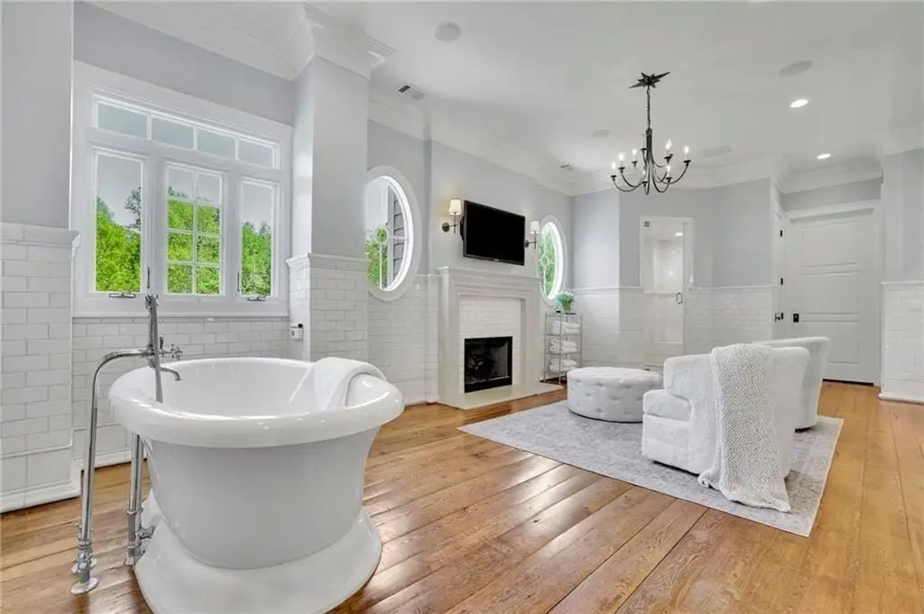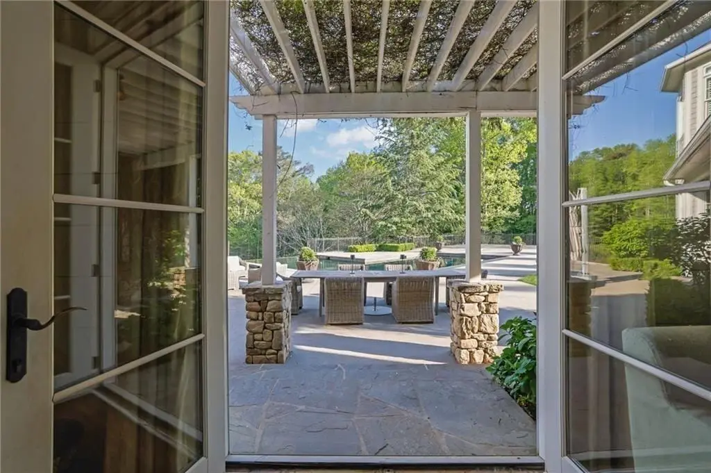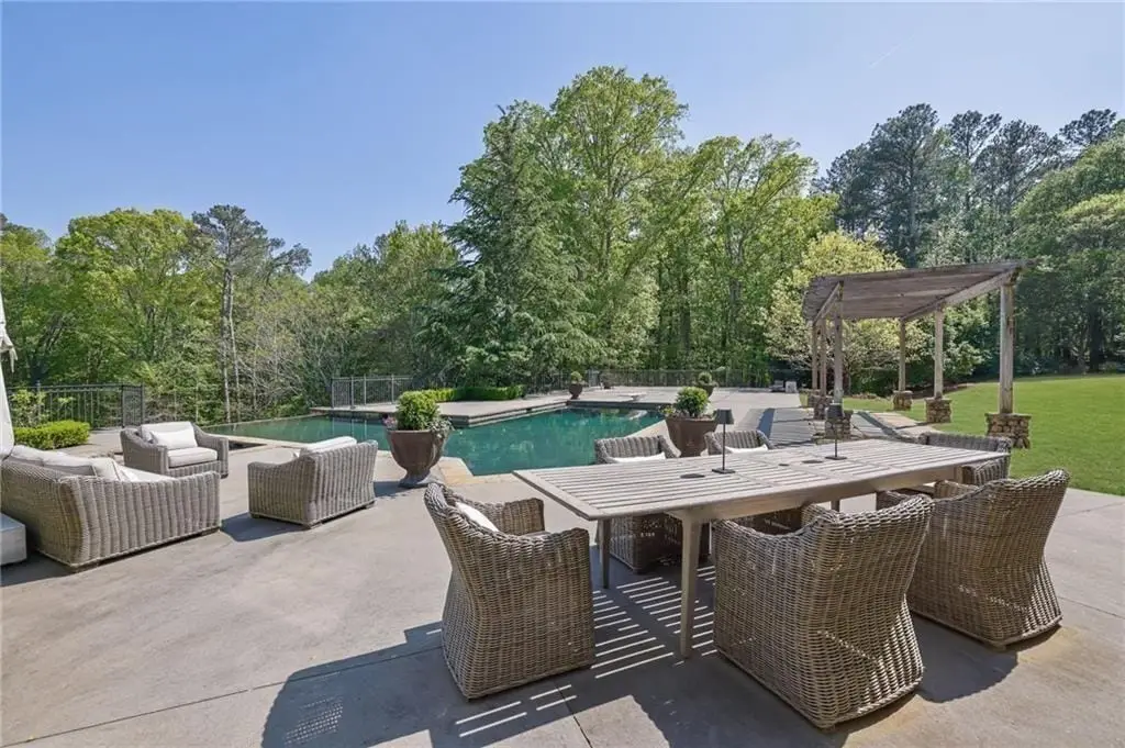 An engaging masterpiece reminiscent of a Hamptons estate awaits on a tranquil 5-acre property, complete with an infinity pool, in coveted close-in Milton. Bordered by a Conservation Easement, the home offers rare privacy and natural beautyjust minutes from Milton, Alpharetta, and Roswell. Inspired architecture and exceptional design create a home that soothes, inspires, and stands apart from the predictable landscape of newer builds. Reclaimed rustic oak flooring and classic millwork grace the expansive foyer, where twin staircases frame a breathtaking view of the two-story fireside living roomworthy of Architectural Digest. An elegant formal dining room and rich office with built-ins and a fireplace make a striking first impression. Light-filled living spaces seamlessly connect to the outdoors, with walls of windows and French doors opening to an exquisite infinity pool and sprawling patio enveloped by lush greenery. The organic blend of stone, wood, and marble brings warmth to the spectacular gourmet kitchen, outfitted with high-end appliances and a large center island ideal for entertaining. A dramatic two-story family room features a stone fireplace and wood-beamed ceiling, awash in natural light. Privately set in its own wing, the stunning main-level primary suite boasts a wooden tray ceilings, a luxurious spa bath with coffee bar, and a versatile bonus spaceperfect for a quiet reading nook or home gym. Upstairs, discover four ensuite bedrooms and a spacious recreation room designed for creativity and play. The terrace level is the ultimate blend of fun and function, with exposed brick walls, a full bar, game room, gym, and an additional guest suite.With elevator access to all three levels, no one misses out on the festivitiesespecially on game day. Rarely is a home of this caliber so conveniently located near the charm of Historic Roswell, Downtown Milton, and Alpharetta. Retreat to this architectural gem where casual sophistication meets the best of Metro Atlanta livingclose to award-winning schools, premier shopping, and top-tier dining.Love Where You Live. Experience the Best of Both Worlds.