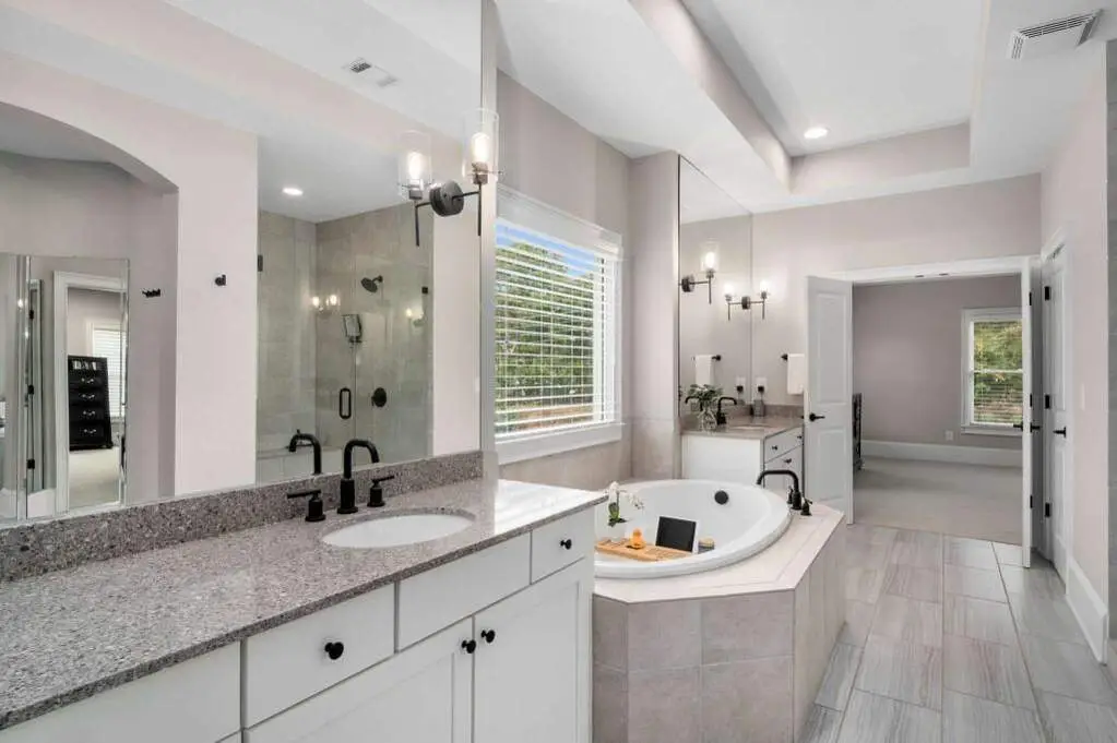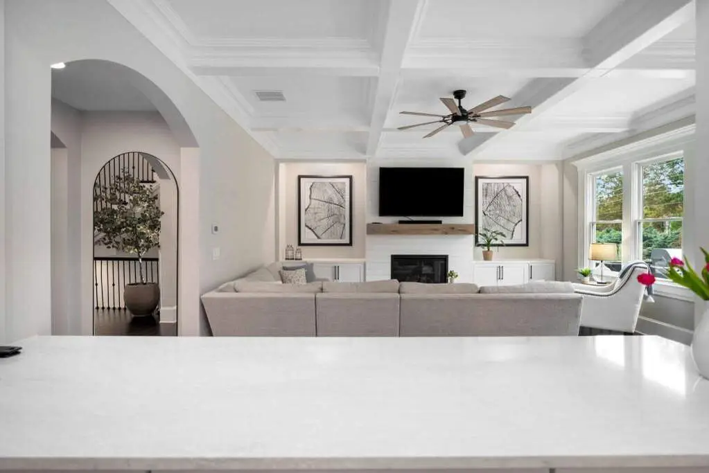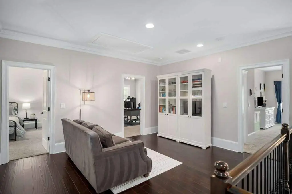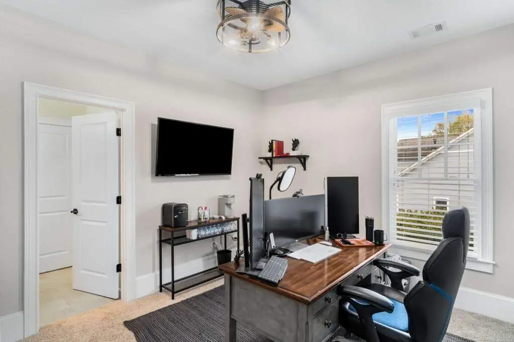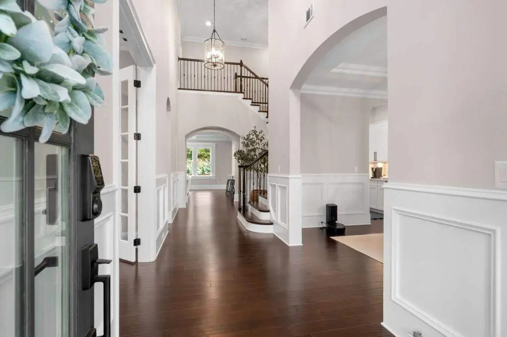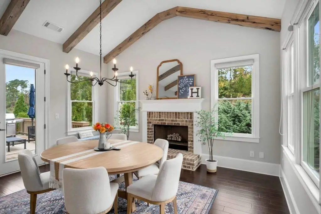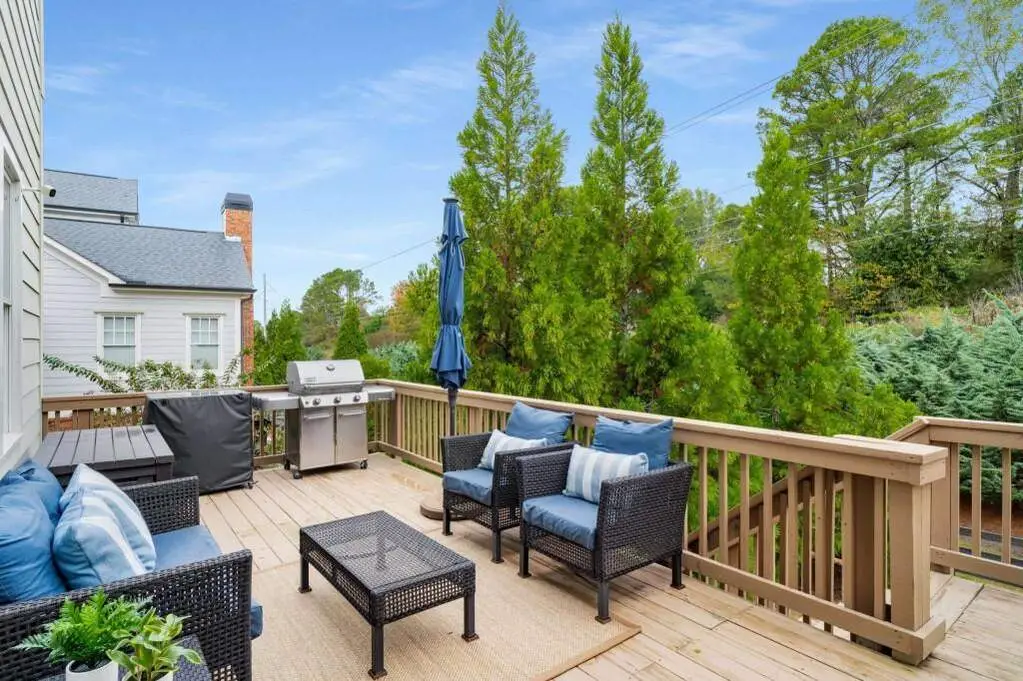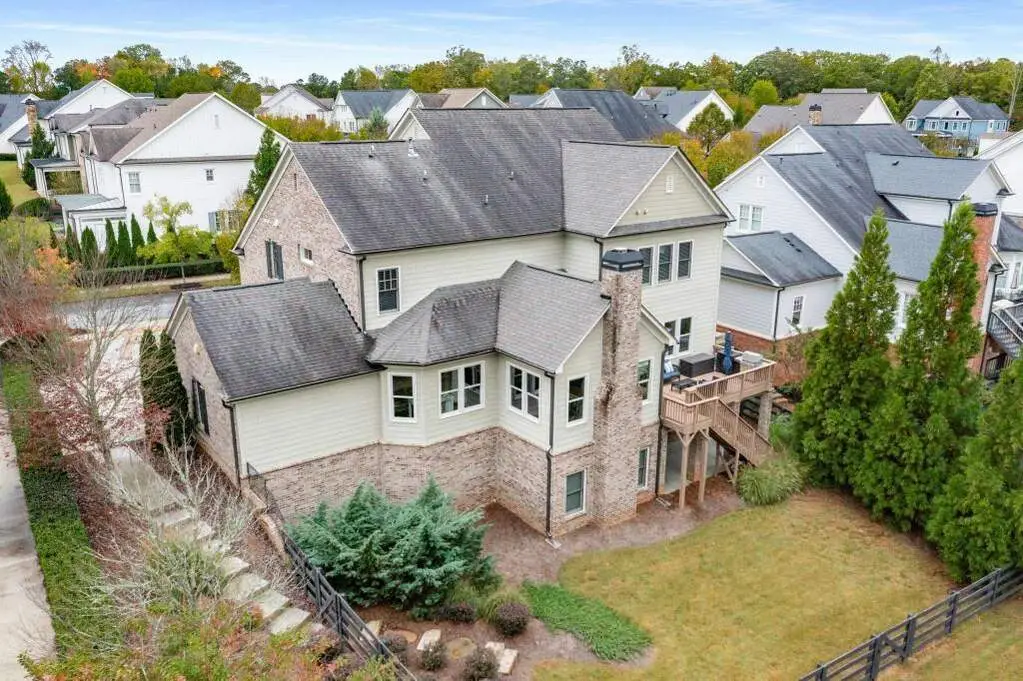 Welcome to 143 Nakomis Place, an exceptional masterpiece in Milton's Heritage at Crabapple community-where luxury living meets effortless access to the bustling Crabapple Market District, award-winning schools, boutique shops, farm-to-table dining, fitness studios, and lively community events. Zoned for top-rated Crabapple Crossing Elementary, Northwestern Middle, and Milton High, this move-in-ready gem has been lovingly maintained by its original owners since 2015. Step onto the gracious covered front porch-perfect for morning coffee, rocking chairs, and neighborhood play. Enter through the two-story foyer, where hardwoods, custom millwork, detailed trim, and designer light fixtures create a light-filled flow, flanked by a dedicated office and dining room. The open-concept heart of the home shines in the fireside great room with coffered ceilings, shiplap fireplace, and built-in alcoves-seamlessly connecting to a chef's kitchen that's as functional as it is stunning. The kitchen features an oversized island with Cambria quartz counters, an Italian clay sink, and areas for counter seating; a walk-in pantry; and a butler's pantry. Premium stainless-steel appliances elevate every meal with a 5-burner gas range and pot filler, overlooking yet another gathering place with a fireplace and double-volume ceilings with magnificent custom beams. Access your upper deck, with a dedicated grill gas line, which overlooks a private, fenced, level backyard oasis-ideal for alfresco dining, pets, gardening, or adding a pool. The space on the main level continues with a main-level bedroom, full bathroom, flex space, and mudroom with built-ins and convenient access to the three-car garage. While technically there is a three-car garage, there is ample space for a workshop, storage, and even a golf cart. Head upstairs to the primary suite, a tranquil spa-like sanctuary featuring dual vanities, a deep soaking tub, frameless glass shower, and an expansive custom walk-in closet. Upstairs y