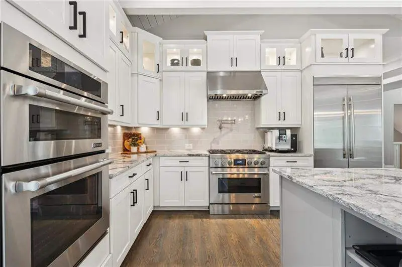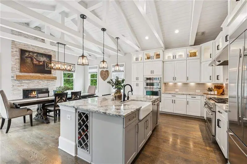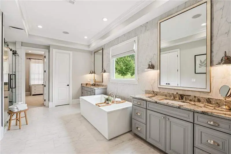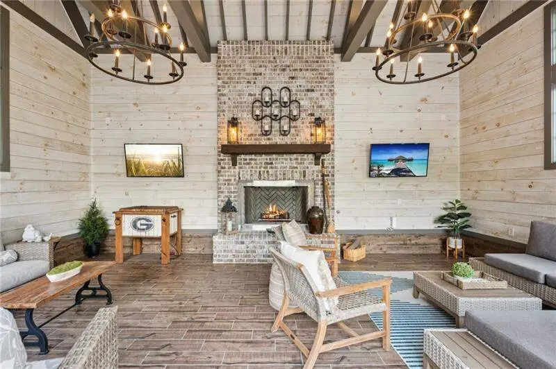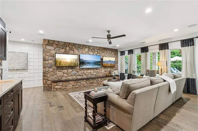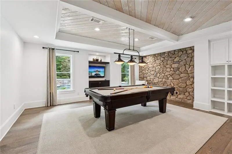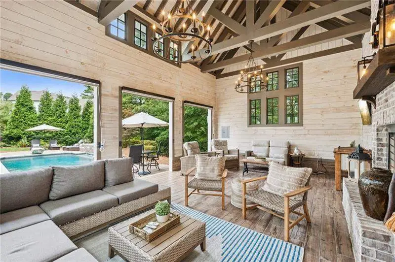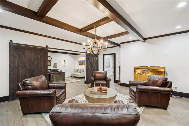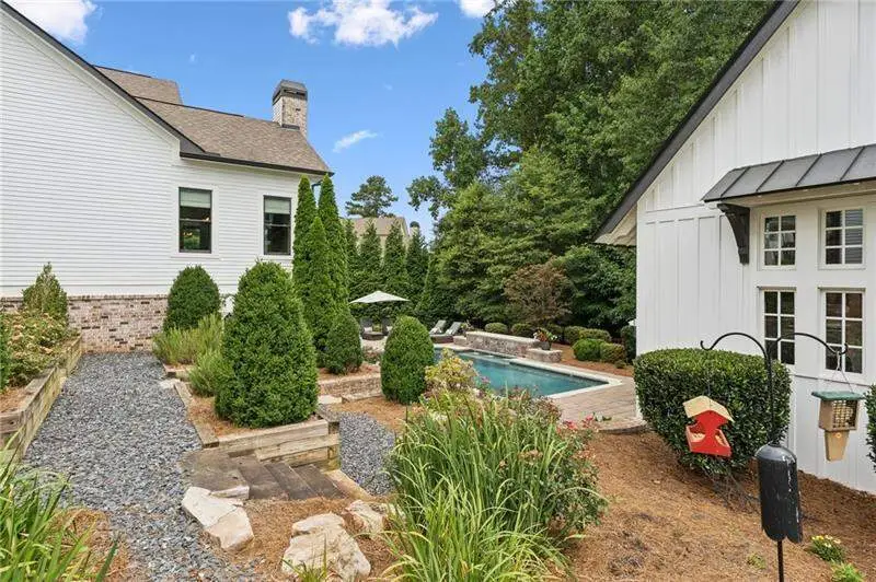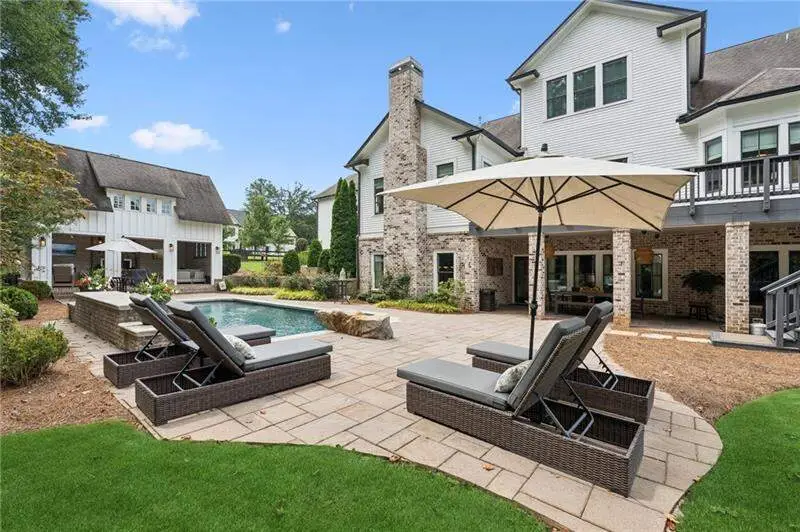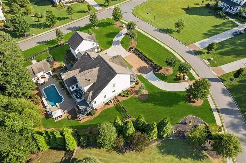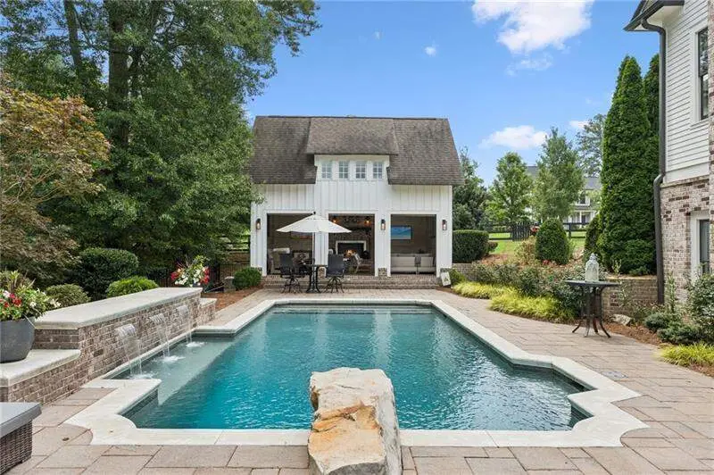 Welcome to this extraordinary former model home in The Grove, one of Milton's most coveted communities, known for its rolling landscapes, peaceful setting, and proximity to award-winning schools, including Birmingham Falls Elementary, Northwestern Middle, and Milton High. This is an incredibly rare opportunity featuring a pool, a four-car garage (including a detached two-car garage with a full living suite above), a detached pool house, and a beautifully fenced-in property. This residence effortlessly blends sophisticated design with everyday comfort, offering up to seven bedrooms, six and a half bathrooms, and countless high-end details throughout. The detached two-car carriage house includes a complete living suite with a full kitchen, washer and dryer, and a full bathroom perfect for guests, a private office, or additional living space. A wide rocking chair front porch leads to a striking custom iron front door and into a grand two-story foyer that sets the tone for the home's elegance. The open floor plan is anchored by a spacious great room with coffered ceilings, flowing seamlessly into a chef's kitchen complete with a six-burner range, pot filler, oversized island, ice maker, butler's pantry, and an expansive walk-in pantry. Just off the kitchen, a vaulted keeping room with a cozy fireplace creates a warm and inviting atmosphere, ideal for both entertaining and quiet evenings at home. The main level includes a beautifully designed mudroom with abundant built-ins, a glass and iron accent door, built-in washer and dryer, and an LG Styler steam unit an unexpected luxury that adds ease to daily living. The primary suite is a true retreat, featuring tray ceilings, a large custom walk-in closet, and a spa-like bathroom that includes a freestanding soaking tub, dual vanities, and an expansive double shower with high-end finishes throughout. Upstairs, four generously sized bedrooms are accompanied by three full bathrooms, offering comfort and privacy for family or guests. The bonus space over the family room can be used as an additional bedroom suite, as a home office or an additional family room, providing valuable flexibility for a variety of needs. The finished terrace level expands the home's livable space and offers exceptional versatility, with a private bedroom and full bathroom, a fully equipped second kitchen with a large island, wine fridge, microwave, and ice machine, as well as dedicated areas for a home gym, game room, and media room. Whether entertaining large groups or accommodating extended family, this level is designed to adapt beautifully to any lifestyle. Set on a beautifully manicured one-acre lot, the outdoor living spaces are equally impressive. The backyard features a saltwater pool and a resort-style pool house with vaulted ceilings, exposed wood beams, a fireplace, and a comfortable lounge area. A flat, expansive front yard with a circular driveway and a fully fenced backyard complete the setting, offering both space and privacy in a peaceful residential environment. Ideally located just minutes from Scottsdale Farms, The Union Restaurant, Seven Acre BarNGrill, and Downtown Crabapple with easy access to Downtown Alpharetta, Avalon, and GA 400 this home offers the perfect balance of tranquility and convenience. Timeless style, impeccable craftsmanship, and luxurious amenities come together in this one-of-a-kind Milton residence, where everyday life feels like a retreat. Welcome home.