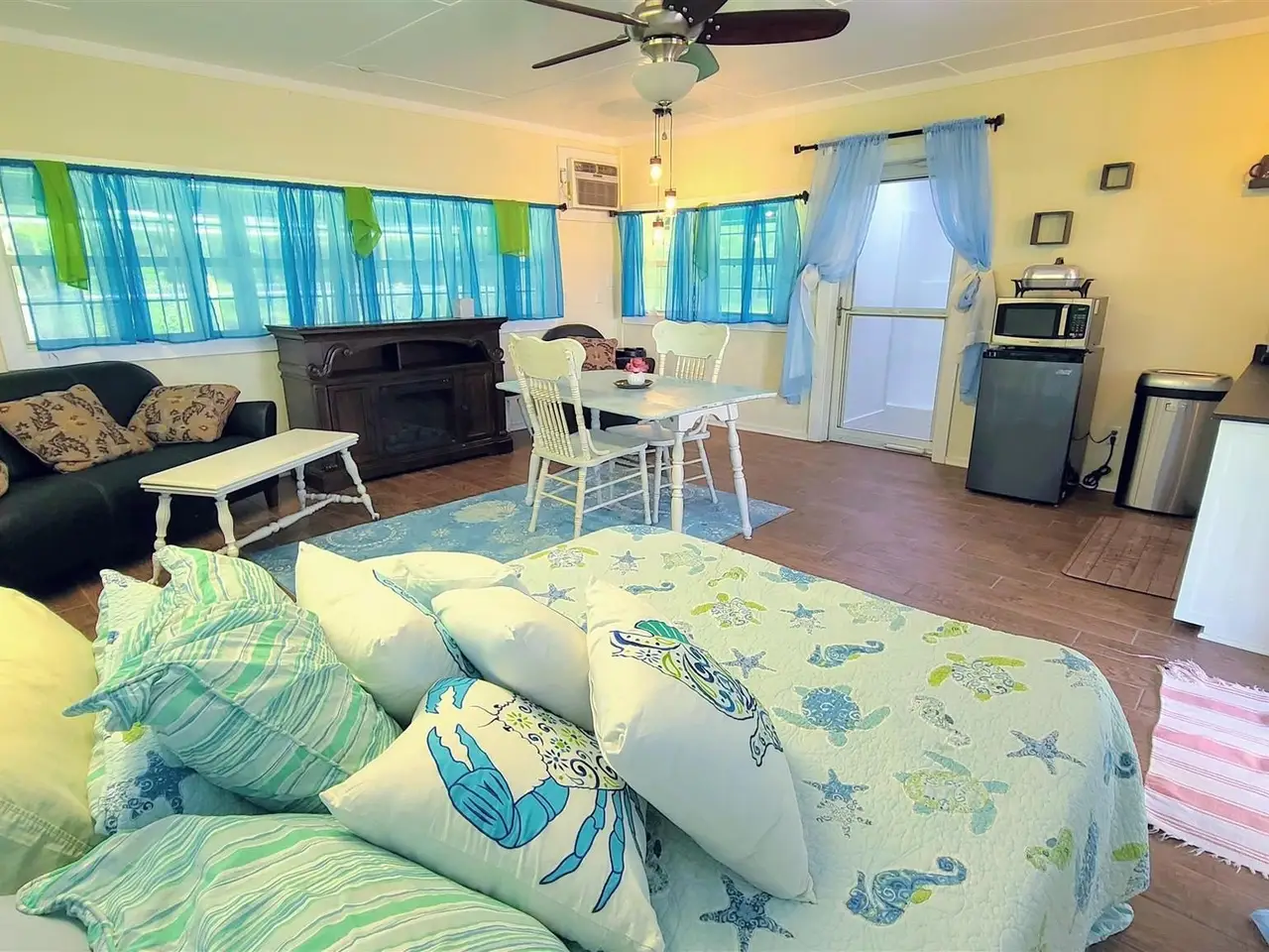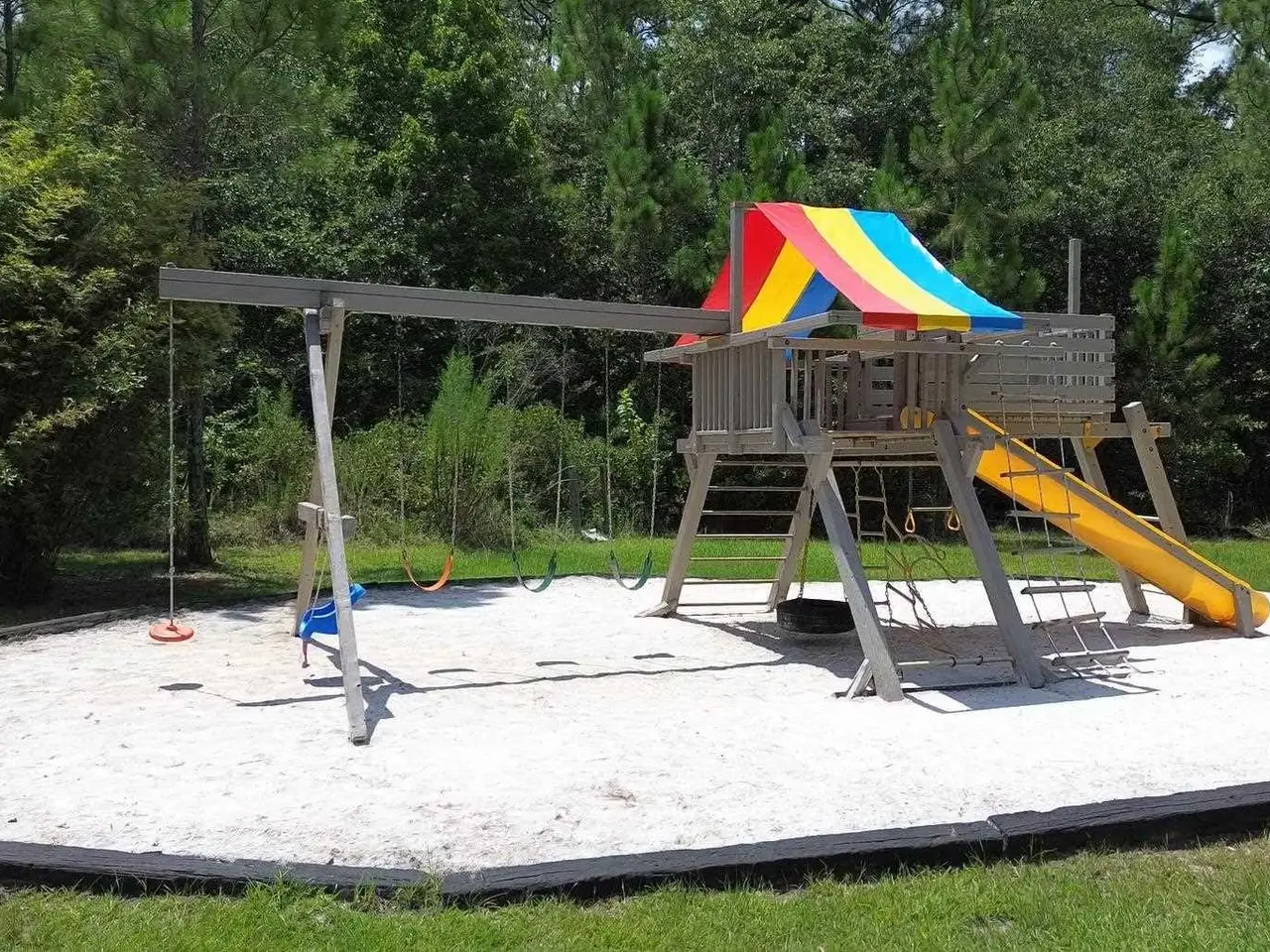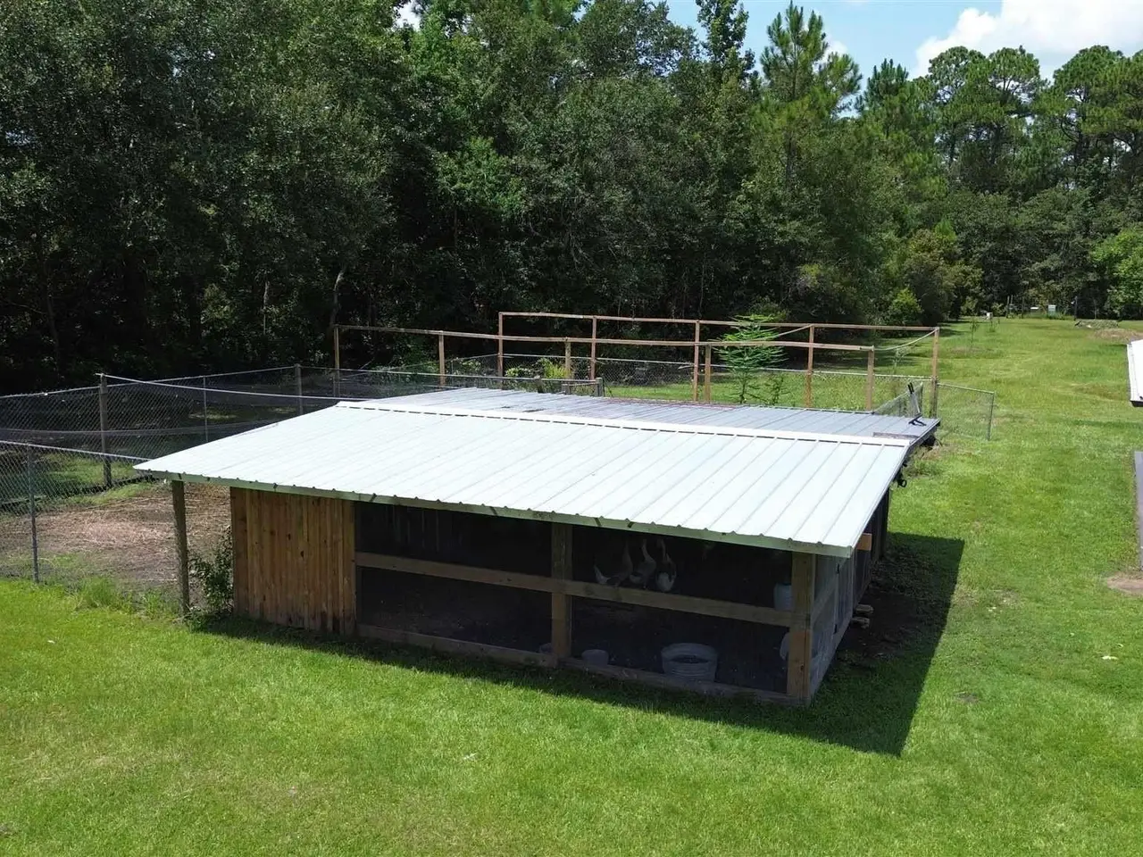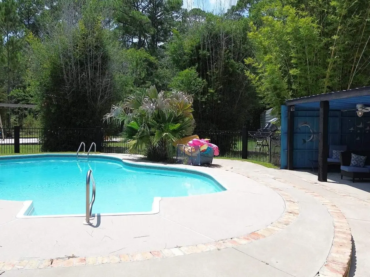 This Garcon Point-Milton expansive property could be an entertainer's dream, an event venue property for weddings or conferences, a multi-generational family compound, or income producing (AirBnB). The homes are a Tuscan-style main house, a guest house, and a studio cottage. Solar panels help reduce electricity costs! The main house has three bedrooms and baths with unique custom details like 'Henry' stained glass, cypress beamed ceilings, and a wood-burning stove. Its open layout connects living, dining, and kitchen areas to various porches, perfect for gatherings. A large loft offers versatile space. The guest house is fully furnished with two bedrooms, one bath, and a full kitchen, while the studio cottage provides a kitchenette, bath, and a screened porch with pond views. Both could be income producing! Outdoor amenities include an entertaining pavilion, a dining/cooking shack, a pool oasis with a cabana and fire pit, and a Rainbow swing set. Children love this property! Overlooking the self-watering pond are a gazebo and dock. The property also has a workshop, garden shed, raised garden beds, and a metal garage for extra storage or vehicles. It's conveniently located in quiet rural area just three miles south of I-10... including a local marina 5 minutes away to launch your boat!