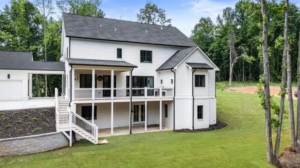 Exceptional opportunity in Milton to be on acreage in new construction all located within this gated enclave of three custom homes. Priced below appraisal and an amazing value for the new owner to enjoy stunning new construction with a primary bedroom and second guest room on the main level with an unfinished terrace level ready for you to customize. This estate home was built by Paramount Builders and offers privacy and a thoughtful floor plan all located within picturesque Milton, Georgia. Upon entering, take in the soaring two story foyer that welcomes you with abundant natural light and opens into the spacious main level. The chef's kitchen features an oversized island, custom cabinetry that extends to the ceiling, a quartz slab backsplash, and a statement range with cast stone hood framed by large picture windows. Integrated Thermador appliances include a built-in refrigerator and full size freezer with a 48 inch gas range with dual ovens, dishwasher, and microwave drawer. A spacious scullery with wet bar and additional cabinetry bridges the kitchen to the formal dining room, providing functionality and elegance for celebratory parties and holiday dinners. The kitchen flows into the living room where a cast stone fireplace with mantel creates a warm focal point. Glass sliding doors lead to the covered outdoor living space with grilling station, already wired for a surround sound system with additional speakers on the porch. The main-level primary suite is a private retreat with vaulted ceilings and exposed beams, a dual sided walk-in closet, and a spa-like bath with double vanities, frameless shower, and a free-standing soaking tub that overlooks the private backyard. A secondary bedroom with full bath on the main level offers flexibility for guests, a home office, or library. Throughout the home, details such as red oak hardwood flooring, cove crown molding, wainscoting and custom feature walls reflect the craftsmanship of Paramount Builders.