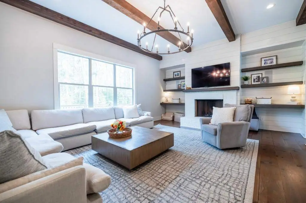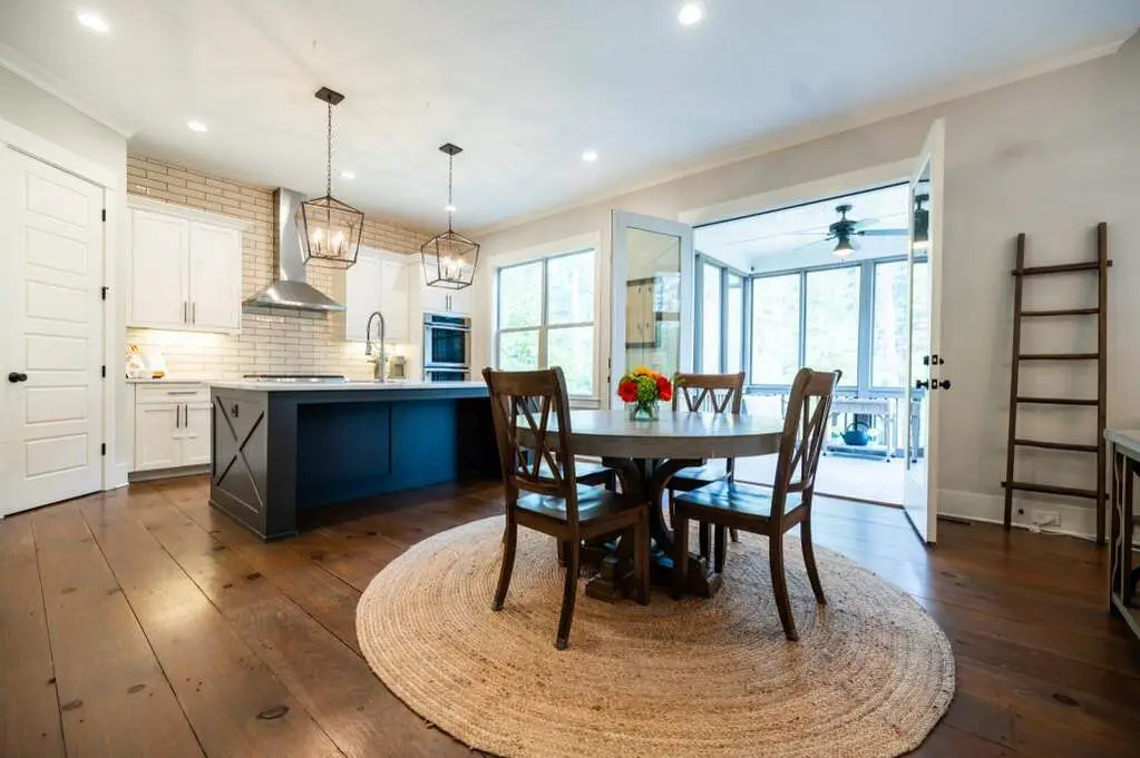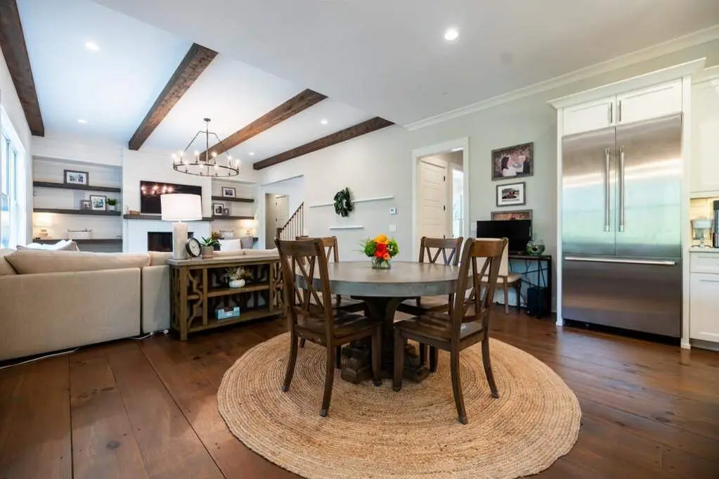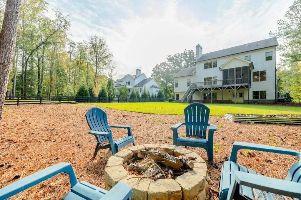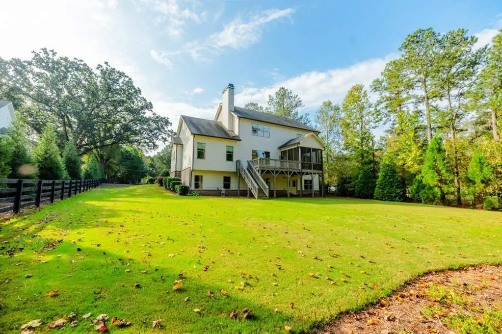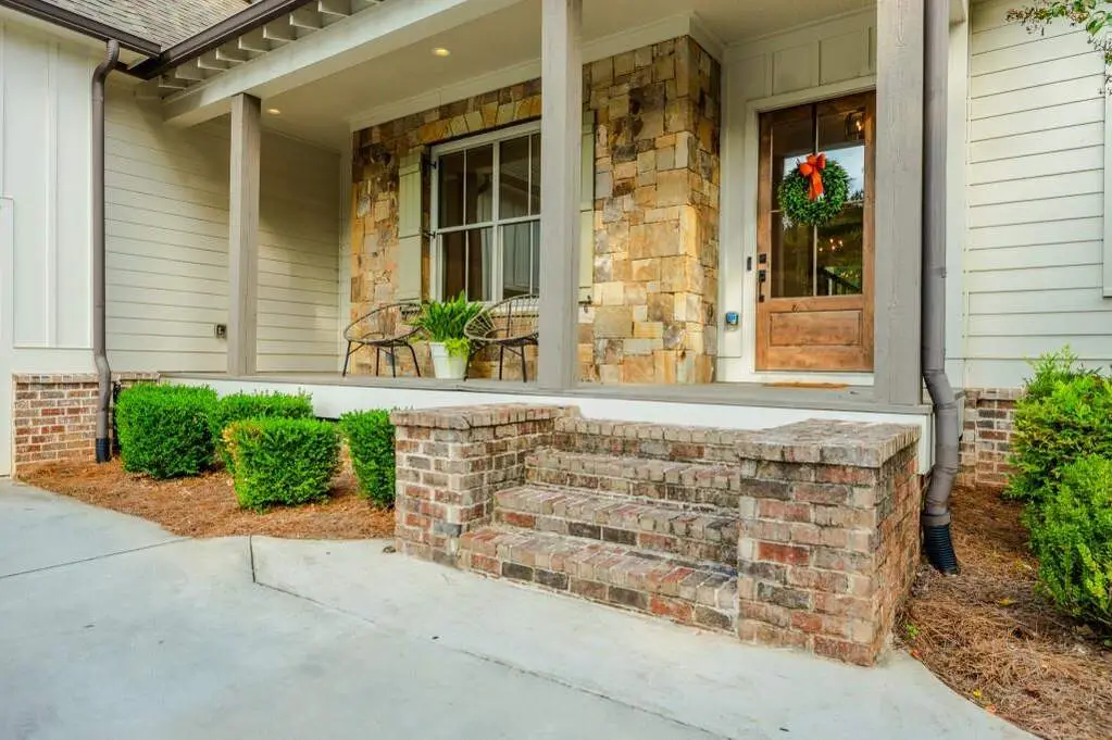 This 5-bedroom, 5.5-bath home offers a perfect balance of elegance and easy living. A welcoming front porch overlooks lush landscaping, setting the tone for the inviting interior where heart pine floors, beamed ceilings, and thoughtful upgrades create an atmosphere of warmth and refinement. The open-concept layout is ideal for both relaxed evenings and lively gatherings-enjoy the fireside family room with custom built-ins, entertain in the formal dining room, or prepare meals in the chef's kitchen with 6-burner gas range, double ovens, built-in microwave, and a generous island with seating. The main-level owner's suite is a serene retreat with vaulted ceilings, spa-like bath, and a custom walk-in closet. A second main-level suite offers flexibility for guests or a private home office. A well-planned mudroom and laundry with smart steamer add convenience to daily life. Upstairs, three additional bedrooms, two full baths, a large bonus/media room, and a finished suite with full bath provide abundant possibilities-au pair suit, hobby room, or a comfortable movie lounge. The unfinished daylight basement opens to a flat backyard-ready for gardening, entertaining, or the addition of a pool. Enjoy peaceful views from the expansive deck or screened porch. Additional features include a 3-car garage with fresh epoxy flooring, whole house generator, smart home technology, irrigation system, and integrated audio. Located minutes from all things Milton (Scottsdale Farms, Matildas Music Under the Pines, 7 Acre Barn & Grille, etc) his home offers both tranquility and convenience-perfect for those who appreciate timeless design, quality finishes, and room to live life their way.