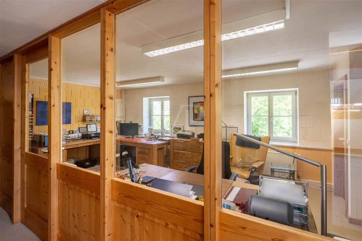 This unique property is far more than just a former farmhouse - it is a retreat for people who are looking for something special: Peace, space and a deep connection to nature. On a generous plot of approx. 5,092 m² (+8500 m² optional), this lovingly preserved and modernized farmhouse offers around 409 m² of living space and a total of 9 rooms. The origins of the house date back to 1900. In 1996, an adjoining barn was demolished to make room for a well-designed new extension. Great importance was attached to preserving the original character and style of the property - the result is a harmonious ensemble that harmoniously combines old and new. The property has been regularly modernized and maintained over the years, always with great sensitivity to the original charm. The last major measure was carried out in 2008 with the installation of a modern air-to-water heat pump, which has served as the central heating system ever since - efficient, environmentally friendly and contemporary. The spacious living area with open fireplace and the cozy parlor with traditional tiled stove provide additional cozy warmth and an unmistakable feeling of home. A special highlight is the upper floor with an individually designed studio, its own sauna and an exclusive master bathroom en suite. The house offers a total of five bedrooms and three modern bathrooms - ideal for large families or discerning guests. However, the real special feature is revealed outside: the extensive plot provides space to live, dream and create. Whether for gardening, keeping small animals or simply enjoying the almost untouched tranquillity, here you will experience a natural idyll that feels like a secluded location - far away from the hustle and bustle, but still well connected. Optionally, an adjoining plot of land with a further approx. 8,500 m² of green space can also be purchased, impressively extending the already generous area. The property has ample parking spaces, including a double garage, two large carports and plenty of outdoor parking spaces. There is also plenty of space for larger vehicles such as vans, motorhomes or trailers. This property is perfect for people who appreciate spaciousness, closeness to nature and privacy - without having to compromise on modern living comfort. The combination of traditional flair and contemporary furnishings makes this home a real place of the heart. Be inspired by the magic of this property during a viewing - your new life in the countryside awaits you here
