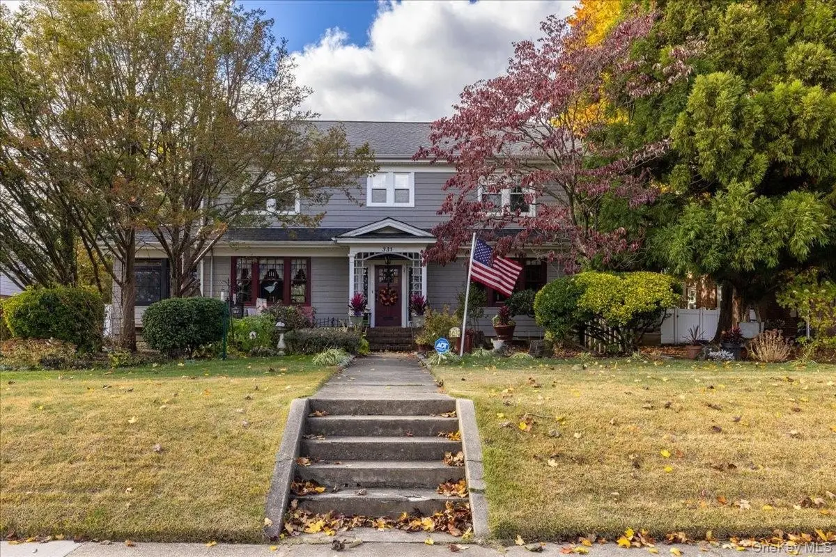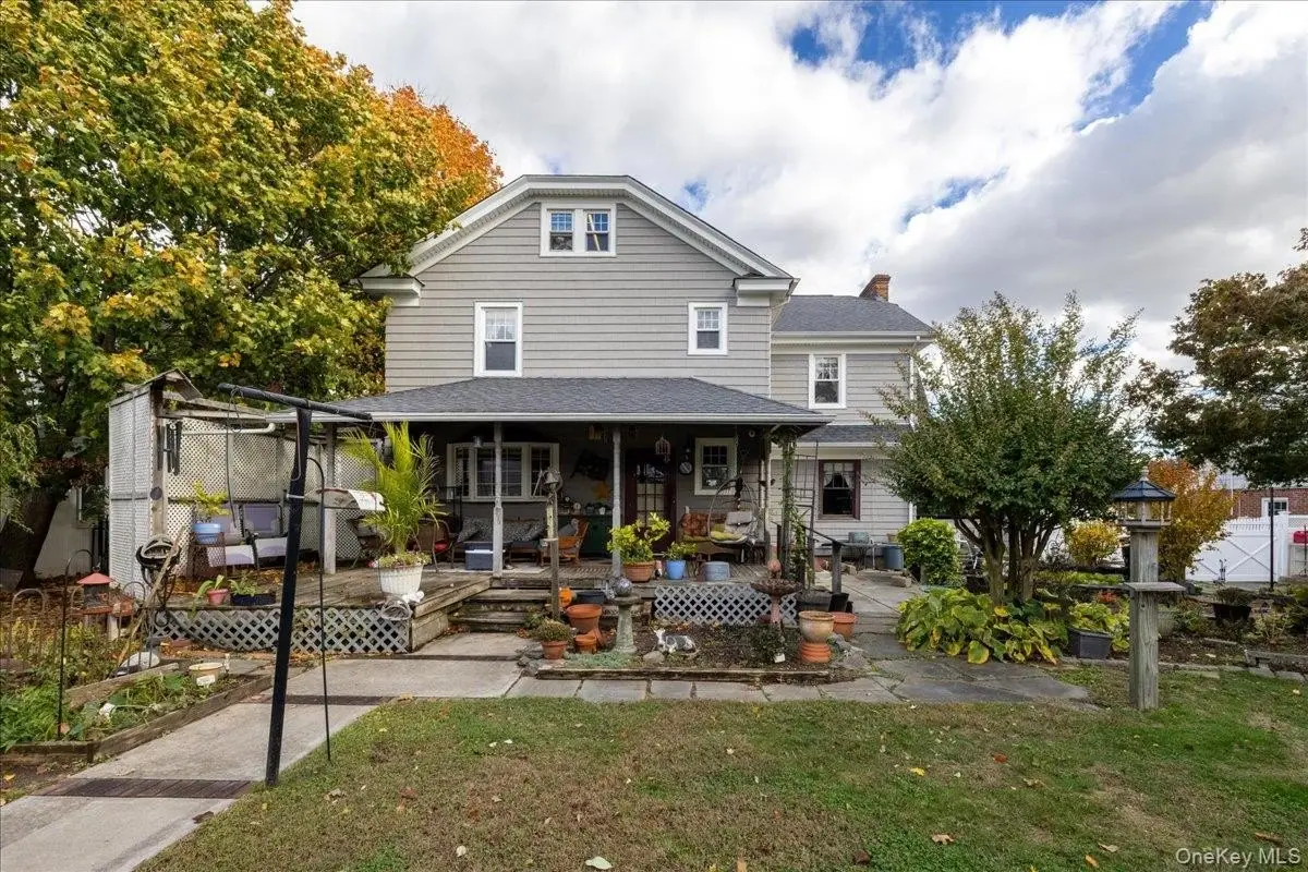 Welcome to 331 Mineola Boulevard, Mineola. Very rarely does a home of this grandeur, this pedigree and in the famed “Boulevard Section” come on the market. It has been almost 50 years since this JEWEL of the Boulevard Section has been for sale. This could be a once in a lifetime opportunity. This classically designed Colonial Revival home was custom built in 1921 and was one of the original grand estates on Mineola Boulevard. The classic and timeless details of this masterpiece of a home are found throughout. It grandly sits on a raised property on one of the largest parcels in the area. The oversized and magnificent property has 100 foot frontage. The lot dimensions of 100 x 232 x100 x 235 make an approximate lot of 23,400 square feet which is over a half acre of lush grounds. The palatial backyard has covered porches, a large koi pond, a stunning large and separately fenced area perfect for a pool and a newly built oversized detached two car garage. Looking at the grand facade of this home you can feel the history and character of its 104 years. Inside on the first floor you enter the home through a spacious foyer which leads to a grand and oversized living room with original beamed ceilings, original woodwork that has never been painted and a large mantled wood burning fireplace. Off the living room is a porch with all brand new windows with original stained glass, fireplace and split AC/heating unit. The truly grand and formal dining room exudes timeless grandeur with original stained glass, original wood decorations and an dropped ceiling shelf to showcase cherished momentos. The oversized eat in kitchen also has a separate butlers pantry and opens up to a cozy den with original stained glass windows and sliding doors to the rear of the home. Also on the first floor is a half bathroom and the original library of the home which is also used as a home office. The kitchen also has a split staircase for easy access to the second floor. The second floor consists of a large primary bedroom that has an interior door that connects it to another full bedroom that could be used a dressing room. The other four bedrooms on this floor are all oversized. The second floor also has a large landing area as well as a full bathroom. A full wide staircase opens up to the huge attic that can be utilized for storage. The basement of the home is full and partially finished with several finished rooms, a half bathroom, Bilco door access to the rear property, laundry area as well as extensive storage. 331 Mineola Boulevard, Mineola is a dream come true…make it your reality.
