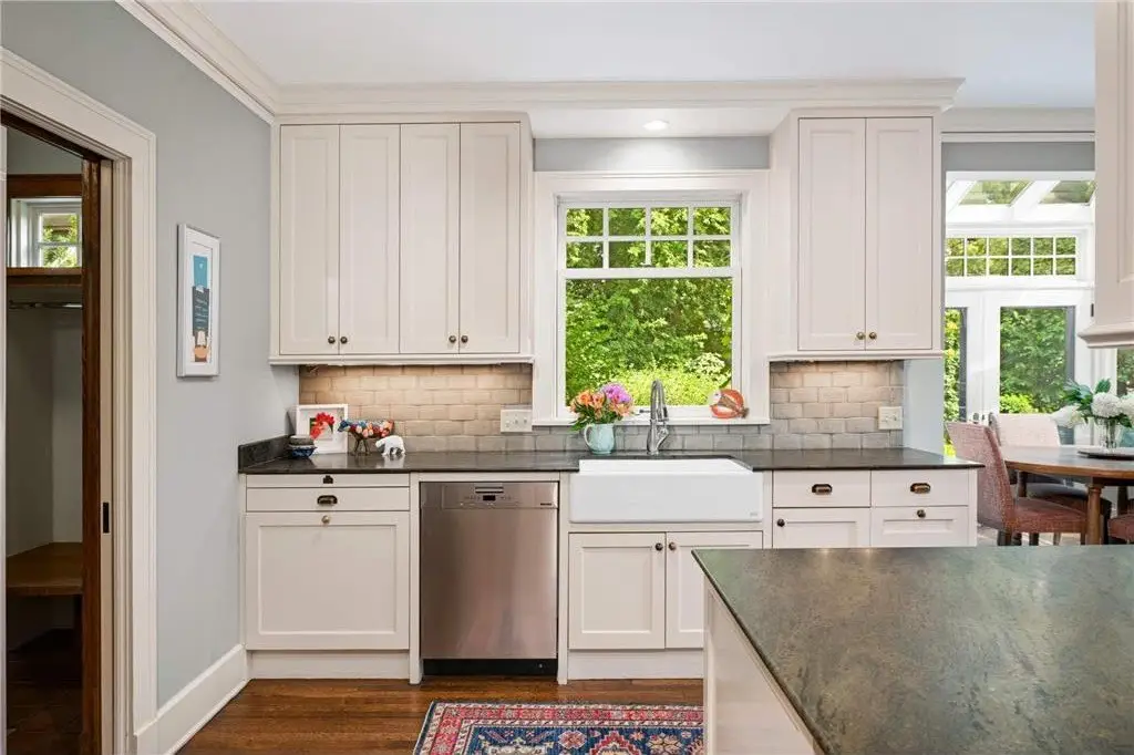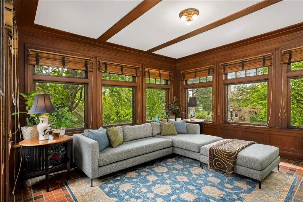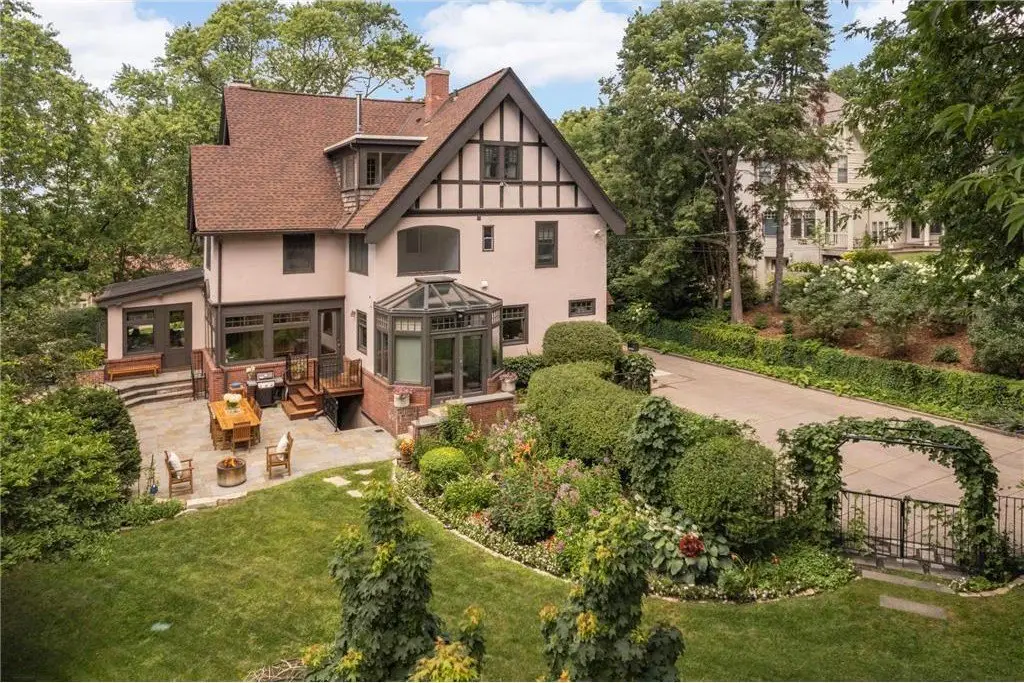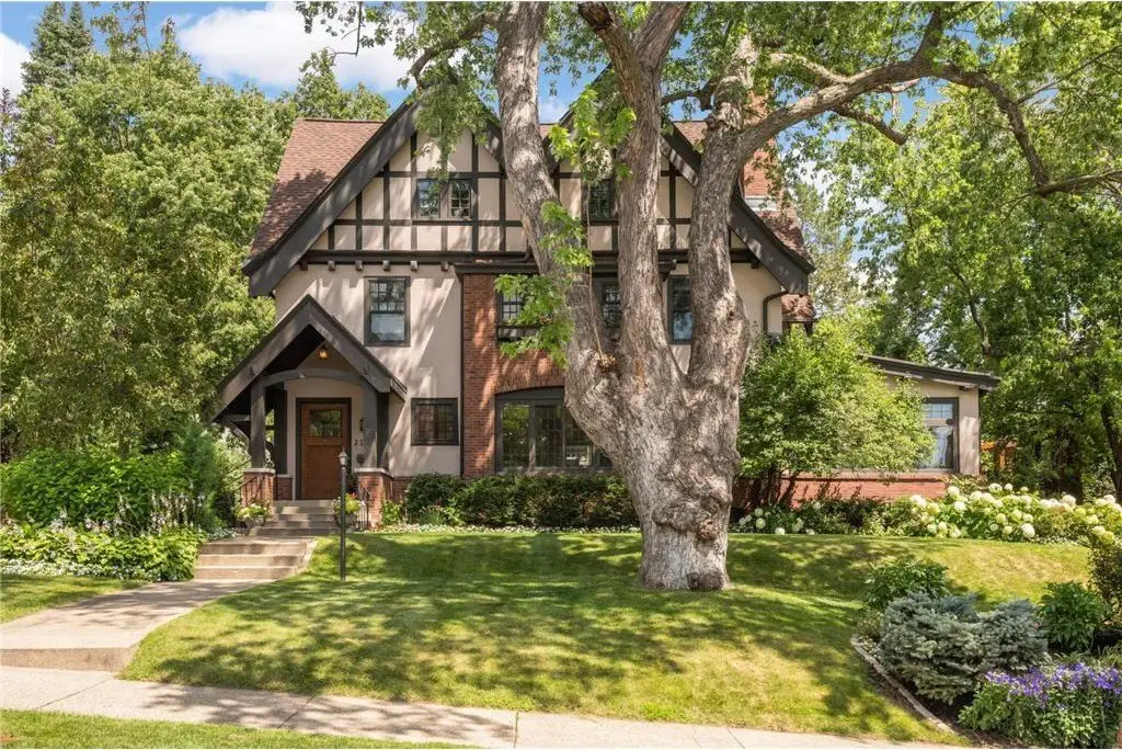 LOCATION, location... Nestled between Lake of the Isles & DT Mpls, renowned architect, Harry Wild Jones, designed this stately 1909 American Tudor Revival. Situated on an oversized lot, the house exudes a magical, casual elegance. Effortlessly melding historic beauty with thoughtful renovations. Main floor highlights include a beautifully crafted open staircase; a chef's kitchen with an atrium-style dining nook, inset cabinetry, walk-in pantry, & prof appliances; custom oak mudroom; a sun-filled formal dining rm w/ orig clay floor tiles; Leaded French doors; a cozy den w/ rich oak wookwork & built-in bookshelves; and, a spacious formal living room with the orig woodburning fireplace. The backyard is STUNNING w/ multiple access points for seamless indoor/outdoor living. A true oasis with an expansive tiered bluestone patio & terrace, mature gardens, and a peaceful babbling brook. Plus, the perfect sodded flat area for kids & adults alike. Note the clever (large) bike + canoe + paddleboard storage under the terrace for EZ access to LOTI & trails. The 2nd & 3rd floor offers tree-top lake views and hosts 5 bedrooms (including the luxe primary suite), an office, 4 thoughtfully appointed bathrooms, 2 charming porches, & ample attic storage. Completing this fine home is the lower-level hang-out space (w/gorgeous limestone walls), a renovated 3/4 tiled bath, laundry, and additional storage. MOVE IN and ENJOY the Minneapolis Lakes Area to the fullest.