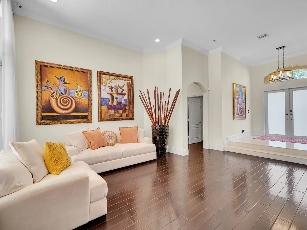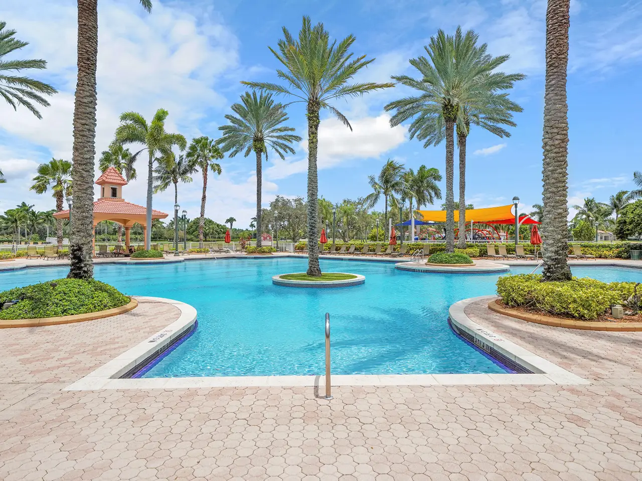 Welcome to this beautifully maintained 5-bedroom, 3.5bathroom residence with a versatile den, located in the prestigious gated community of isles of sunset lakes. This expansive single-story home features lush, professionally landscaped grounds and a brand-new roof, along with hurricane-impact windows throughout for added peace of mind. Enjoy ample living space, a 3-car garage, and an inviting backyard oasis complete with a private pool and adjacent tiki bar—perfect for entertaining. The hoa fee includes cable, internet, and a home security alarm system. Residents have access to a resort-style clubhouse offering a wide range of amenities, including a community pool, tennis courts, playgrounds, and a fully equipped fitness center.