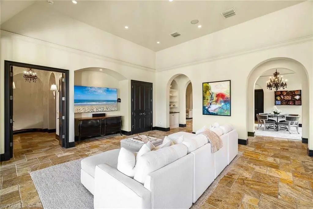Welcome to your dream beach and waterfront retreat- stunning 3536 square ft custom-built beachfront home tucked away in an exclusive gated luxury community. Perfectly positioned on a quiet cul-de-sac, this residence offers privacy and elegance with a modern sophisticated twist. Step inside to discover an open-concept floor plan highlighted by custom stone tile flooring, designer lighting, and expansive windows that bring the lush landscape and sunshine in for your enjoyment. The gourmet kitchen features high-end appliances, a gas cooktop, and a spacious island perfect for entertaining. Step outside to your resort style backyard with inground pool, hot tub and generous lounge space, perfect for relaxing or hosting gatherings by the beach. Miromar features 700 acres of fresh-water lakes, with boating, fishing, swimming, water skiing, 3 miles of sand beaches, Caribbean style beach grill, club house, full-service country club for evening dinning, pool, full-service spa, fitness center, golf, tennis, pickleball, volleyball, basketball, bocce, two marinas, boat rentals and many other luxurious amenities.