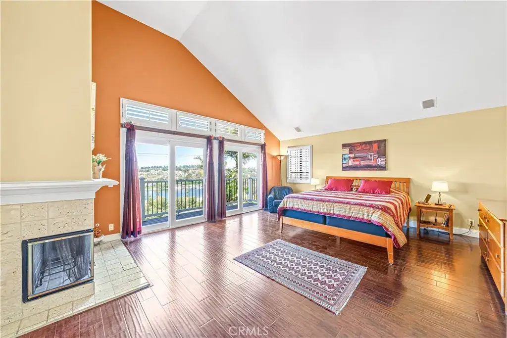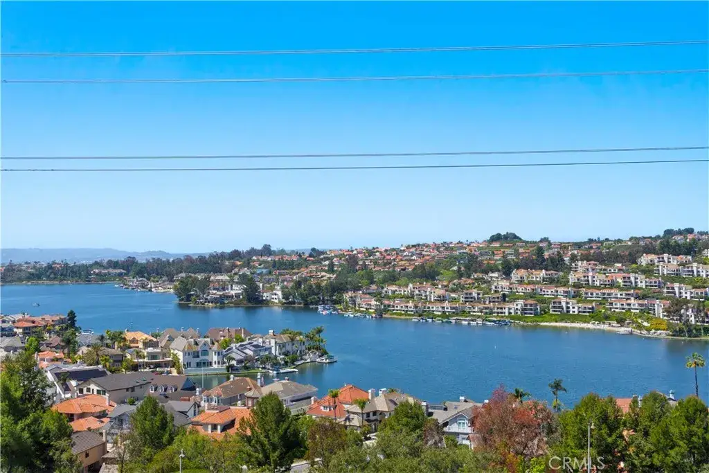 Simply stunning front row panoramic lake, city lights and sunset views from this exceptional, ideally situated floor plan that checks all the boxes. Located in the highly sought after guard gated community of Canyon Crest, this is the one! Starting with inviting curb appeal that includes custom stonework, established planting beds and a grassy lawn enter through a double door entry into a breathtaking lake view residence that truly has it all. Once inside a sweeping curved staircase, vaulted ceilings and great light from a spectacular abundance of windows set the tone. With engineered wood floors, designer paint and recessed lighting throughout you're drawn into an oversized formal living room with great light and a cozy fireplace and the accompanying formal dining room which has French doors out to the lake view deck. Next are a fantastic entertainer's chef's kitchen and an expansive family room. With upgraded travertine tile floors, quartz counters, including the central task island with breakfast bar seating the kitchen features an abundance if prep and storage space and great light from a wall of view windows and French doors out to the deck. Featuring stainless steel appliances, a commercial grade refrigerator, a walk-in pantry and a bar peninsula that adjoins the family room, this kitchen has it all. Anchored by a warm and inviting fireplace and dual French doors out to the patio the family room is the setting for true indoor/outdoor living. A highly desirable guest bedroom or office and guest bath with a step-in shower are just off of the living spaces. An inside laundry room and direct garage access completes the lower level. With amazing lake and city lights views the primary suite has view deck access, a private third fireplace and a dual sink vanity, view soaking tub, separate shower, dual closets and a privacy water closet door ensuite. Opposite, at the front of the house is an upper level living room and between them there are two bedrooms separated by a Jack & Jill bath. Out back is a custom view deck with a barbeque island, a shady patio cover, a firepit, room for multiple seating areas and panoramic views from everywhere. An attached 3 car garage and a 3-car driveway completes the residence. Situated on a single loaded front row lake view street in highly sought after Canyon Crest, enjoy access to great amenities, and with the lake association, enjoy everything the lake has to offer as well. Welcome Home.