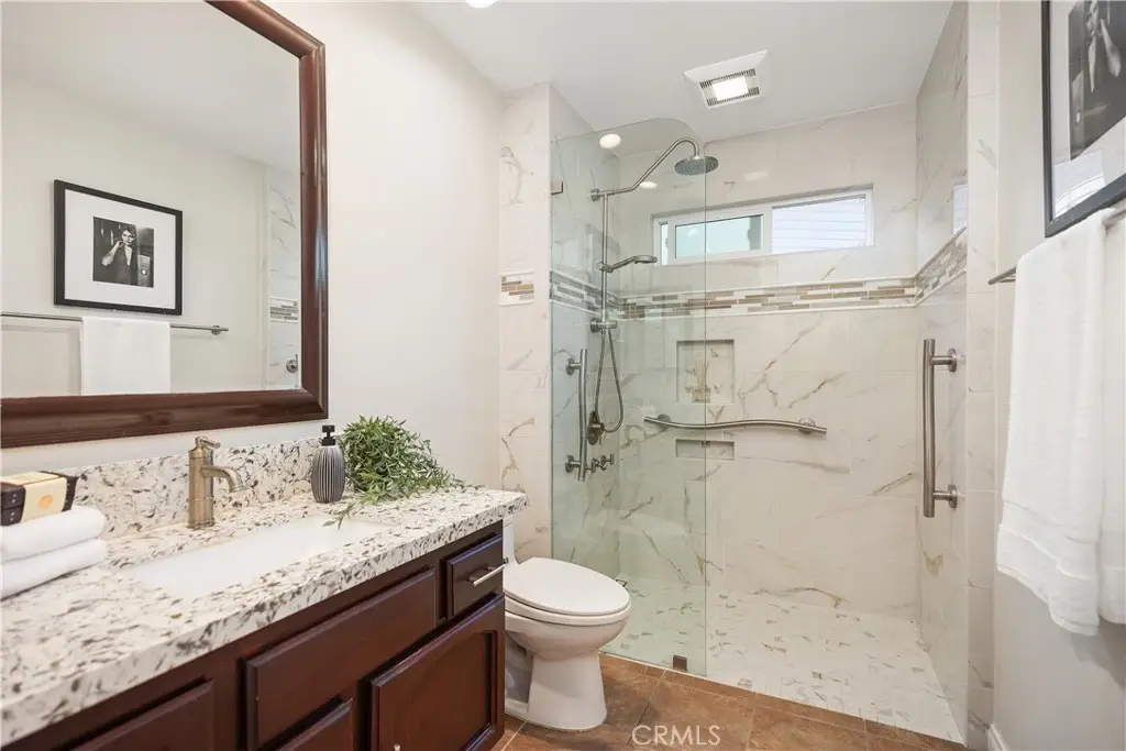 DISCOVER YOUR SANCTUARY IN THE PRESTIGIOUS CANYON CREST COMMUNITY. Embrace an unparalleled lifestyle in this exquisite five-bedroom, four-bath residence, perfectly positioned on one of the largest and most private lots within the coveted Canyon Crest community. Situated at the end of a cul-de-sac, this home offers a truly unique indoor-outdoor living experience on a sprawling 9,139 square-foot lot. As you step through the double doors, you are welcomed by a grand living & dining room, where soaring vaulted ceilings & rich hardwood floors create an immediate sense of elegance, an inviting atmosphere with natural light flooding the rooms. The heart of the home is a chef's dream. The gourmet kitchen features granite countertops, a large center island, built in Monogram refrigerator & brand new double oven. A charming breakfast nook, substantial walk-in pantry & a built-in desk area provide both storage & functional workspace. The big family room flows effortlessly into a 478-square-foot recreation room, a versatile space perfect for a game of billiards, table tennis, or a lively children's playroom. Retreat to your private sanctuary in the master suite with an attached retreat or office provides a quiet space for relaxation or work. Thoughtful modifications include an ADA-compliant downstairs bedroom & bath, bonus room has been expertly enclosed to serve as the fifth bedroom. The magic of this home extends to its resort-like backyard, an oasis designed for entertaining & tranquil escapes. A built-in BBQ and ample patio space make hosting a delight, while a charming treehouse area offers peaceful Zen corner. The opposite side of the yard captivates with a waterfall cascading among lush, mature palm trees, a custom fire pit for cozy evenings. This home is replete with desirable features, including elegant plantation shutters, three fireplaces, re-piping, a whole-house water softener, & brand-new garage doors. Beyond your private estate, the Canyon Crest lifestyle awaits. The community's multi-million-dollar recreational facility offers resort-style amenities, including two swimming pools, a spa, a baby pool, a fully equipped gym, tennis & pickleball courts. The magnificent Lake Mission Viejo is just a short distance away, offering year-round activities like boating, fishing, and swimming, along with a spectacular Fourth of July fireworks show. This is more than just a home; it's a gateway to a joyful and enriching life for the entire family.