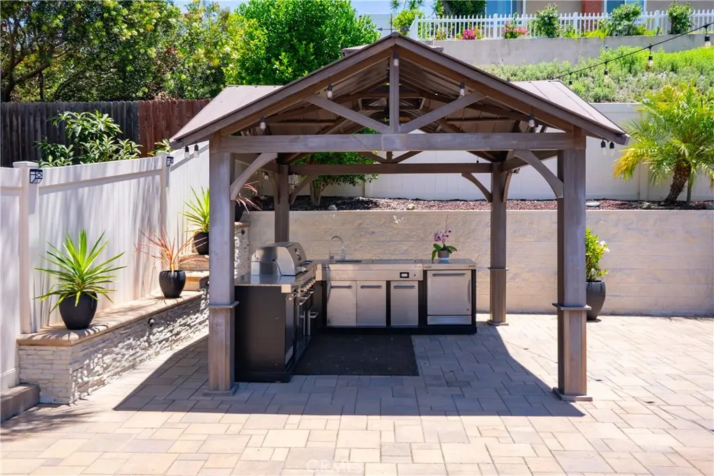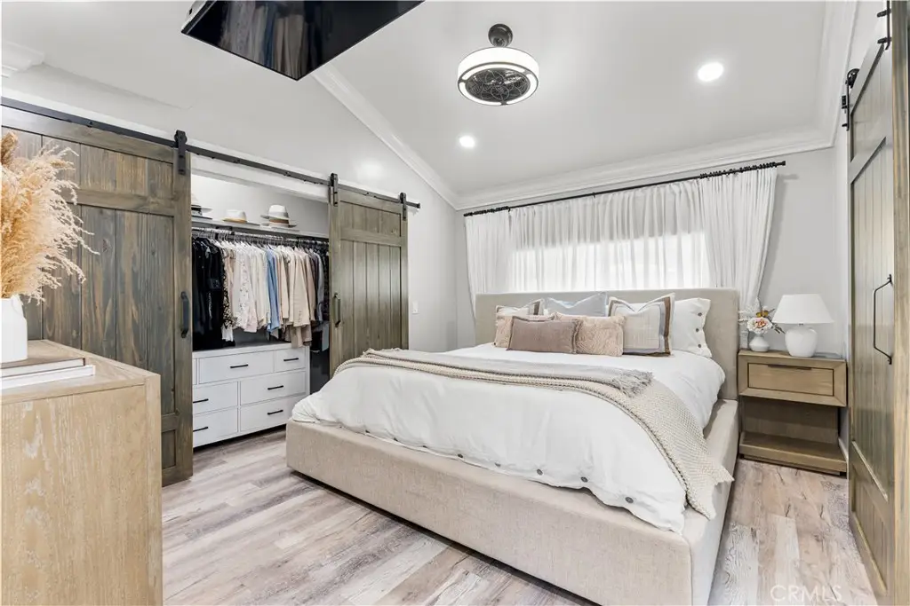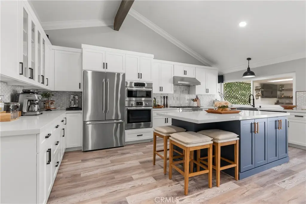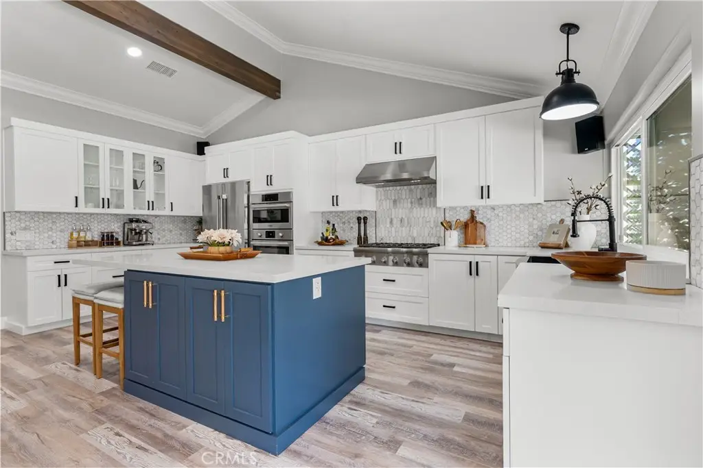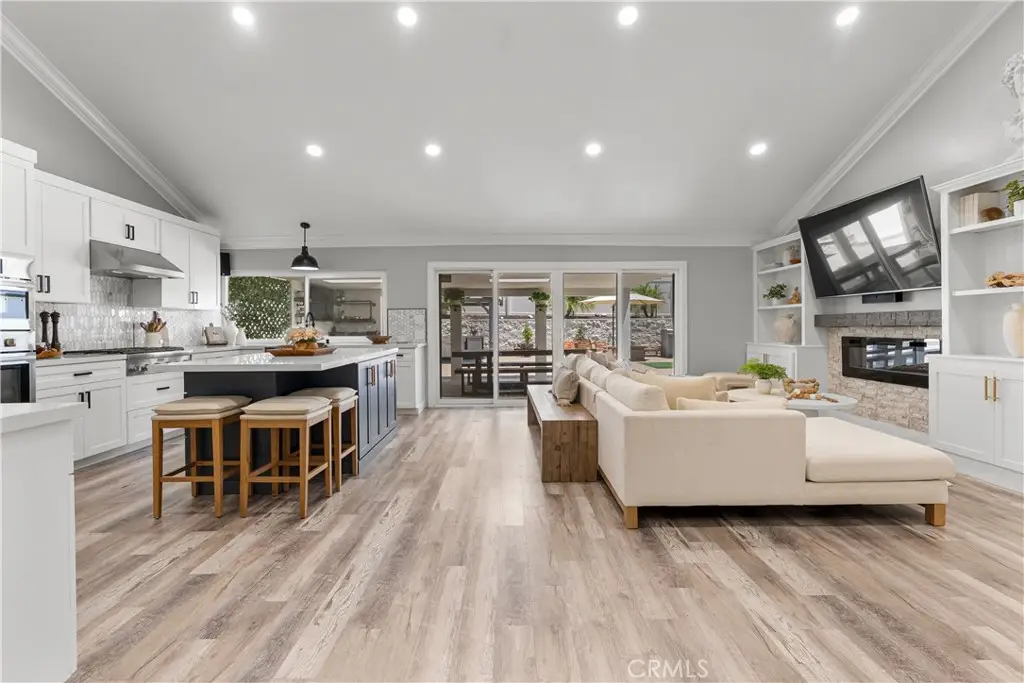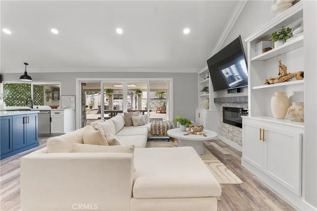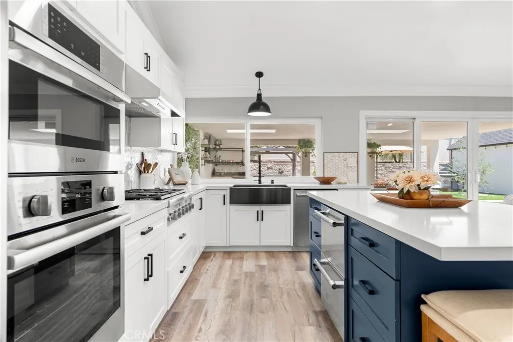 Seller to credit buyer $10,000 towards closing costs at close of escrow. Step into the epitome of single-story luxury in the coveted El Dorado enclave of Mission Viejo. Nestled on a quiet, single-loaded street, this fully transformed home greets you with a charming Mediterranean-style entry and floods of natural light. The heart of the house is an entertainer's dream: a chef's kitchen with a generous quartz-topped island, bespoke cabinetry, a stainless-steel farmhouse sink, and top-of-the-line appliances that seamlessly flow into an open family room. Kick back by the stone hearth fireplace, or wander through a sleek slider onto the covered patio, where recessed lights, a built-in bar, and a barbecue station set the stage for unforgettable gatherings. Behind the scenes, modern comforts abound: dual-zone A/C, tankless hot water, upgraded insulation, recessed lighting, high-end laminate floors, a new roof, and so much more. A spacious laundry room with custom cabinets keeps chores effortlessly organized. Three versatile bedrooms include a dreamy primary suite, complete with sliding barn-door closets and a spa-caliber bath with separate soaking tub and walk-in shower. The second bedroom surprises with a custom-built staircase leading to a lofted nook ideal for gaming, reading, or extra storage while the third offers peaceful comfort for guests or a home office. Outside, a spacious backyard shed provides versatile storage or a secluded hideaway for relaxation and hobbies. Beyond its impeccable upgrades, including CertainTeed presidential shake(r) TL shingles (cool roof) installed, this home offers membership to the Lake Mission Viejo Association and sits steps from top-rated schools, boutique shops, and fine dining. Meticulously re-piped and maintained, it's truly move-in ready. Discover your sanctuary in El Dorado where style, comfort, and community converge.